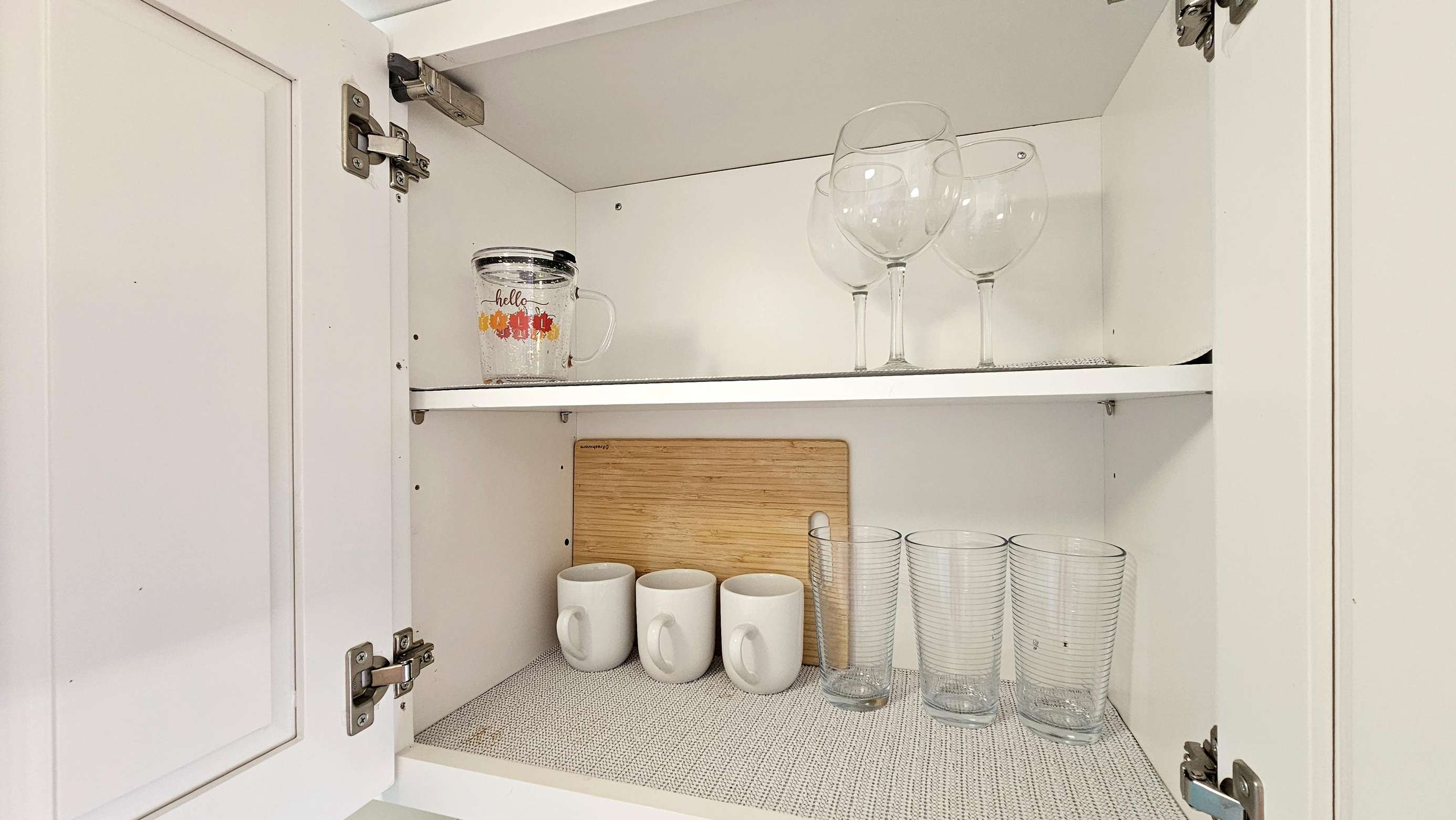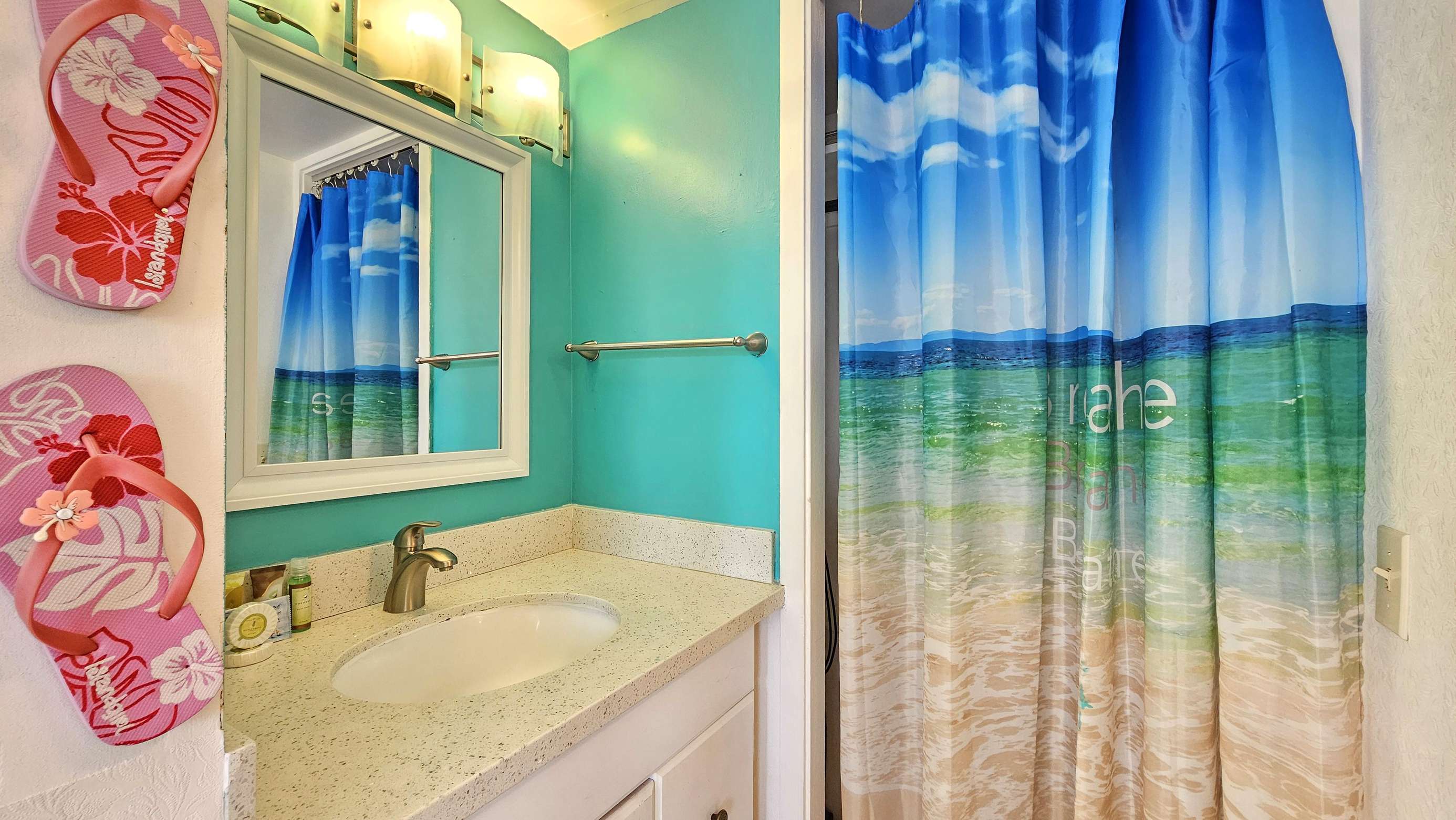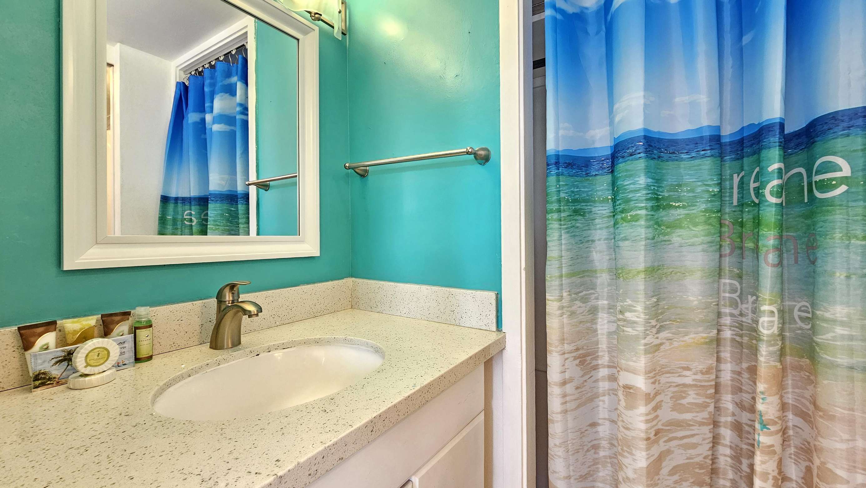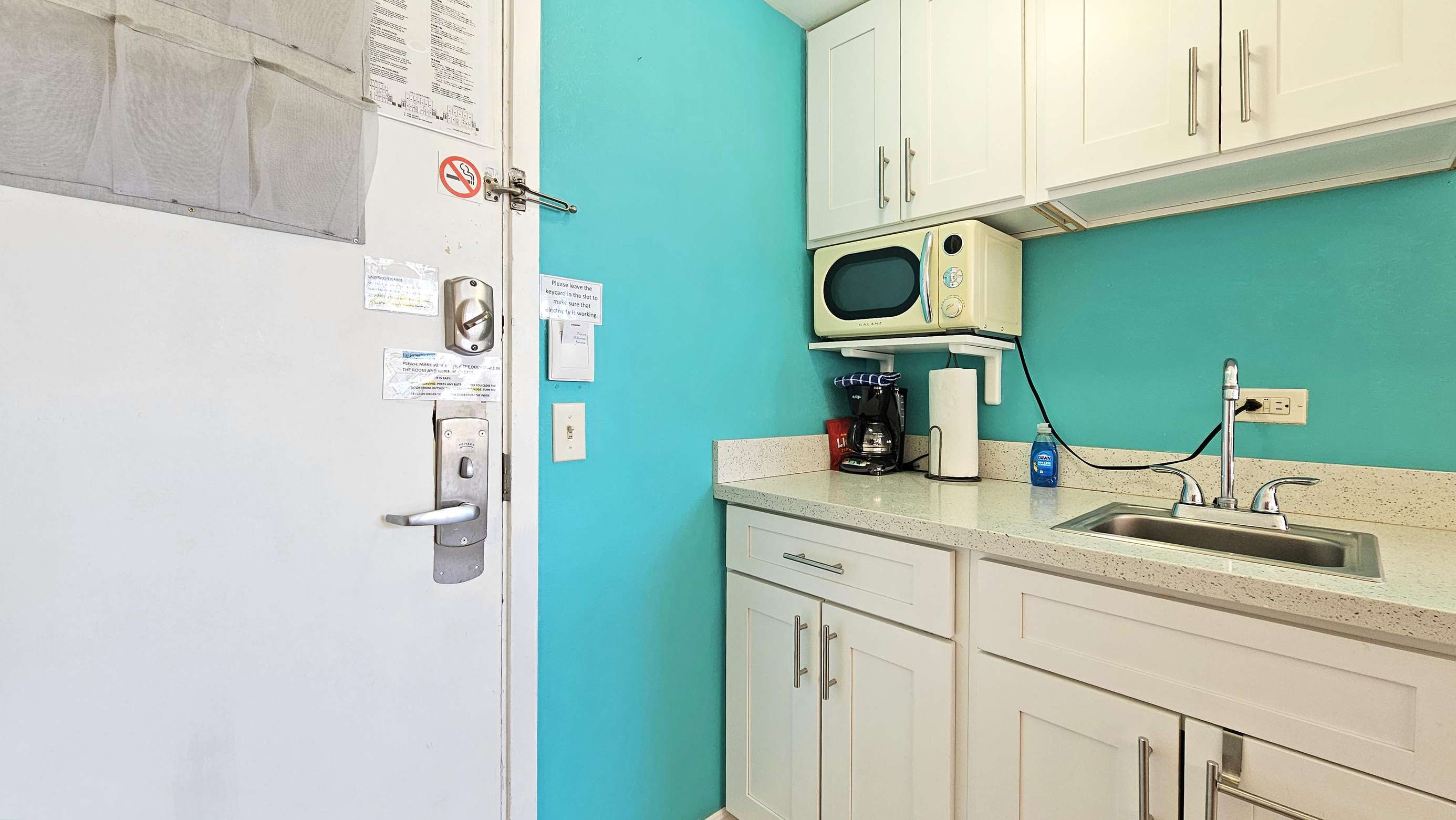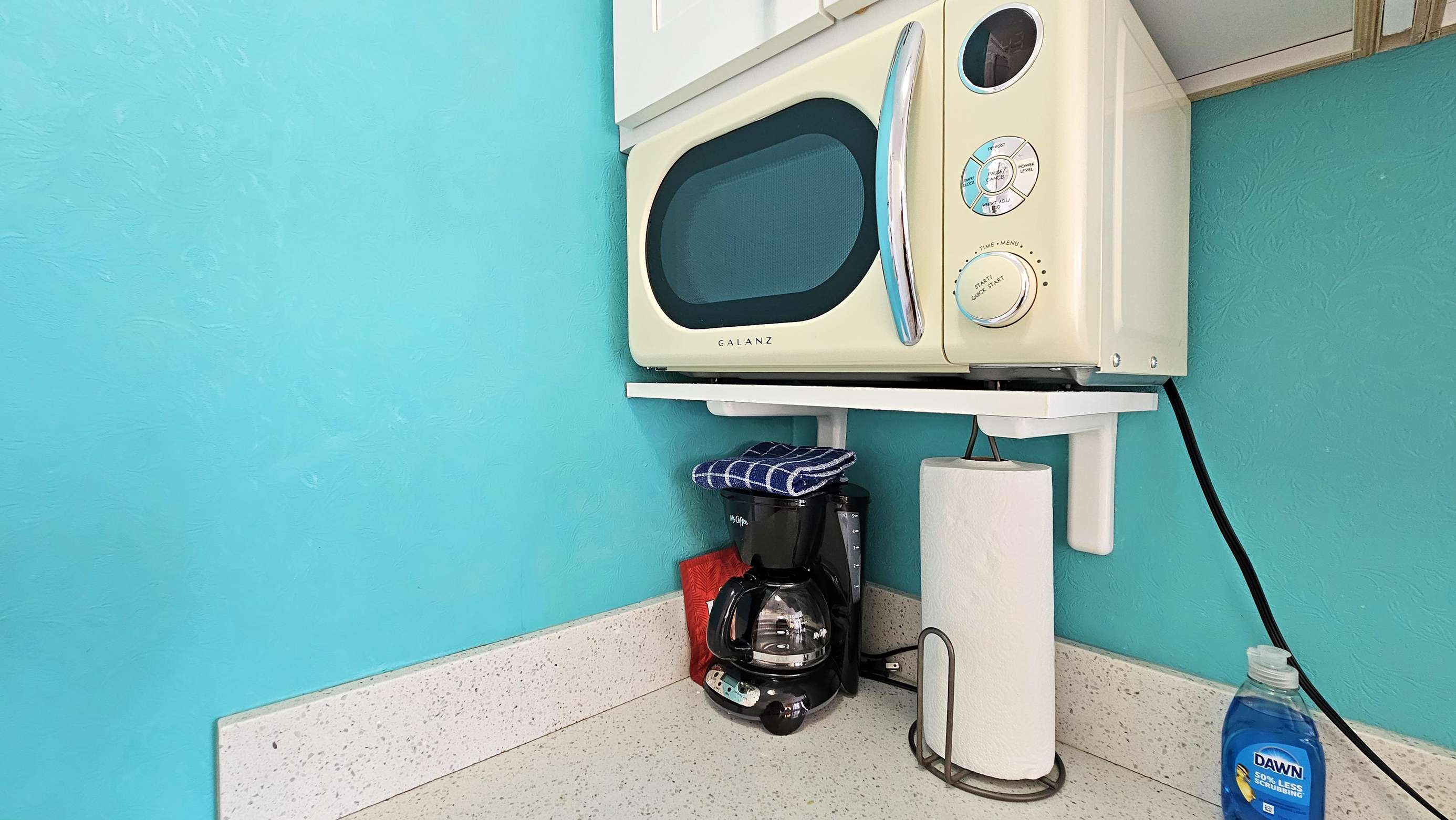 Complete with a 2 burner cook-top, microwave, some kitchen prep tools, a coffeemaker, beach towels, beach chairs..