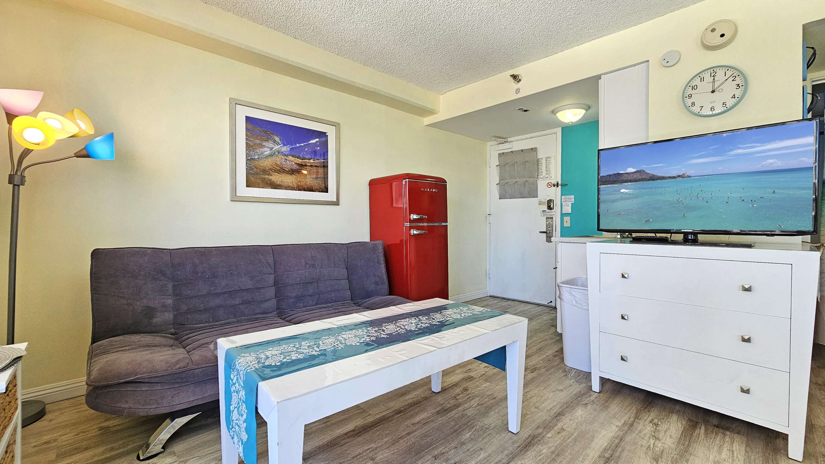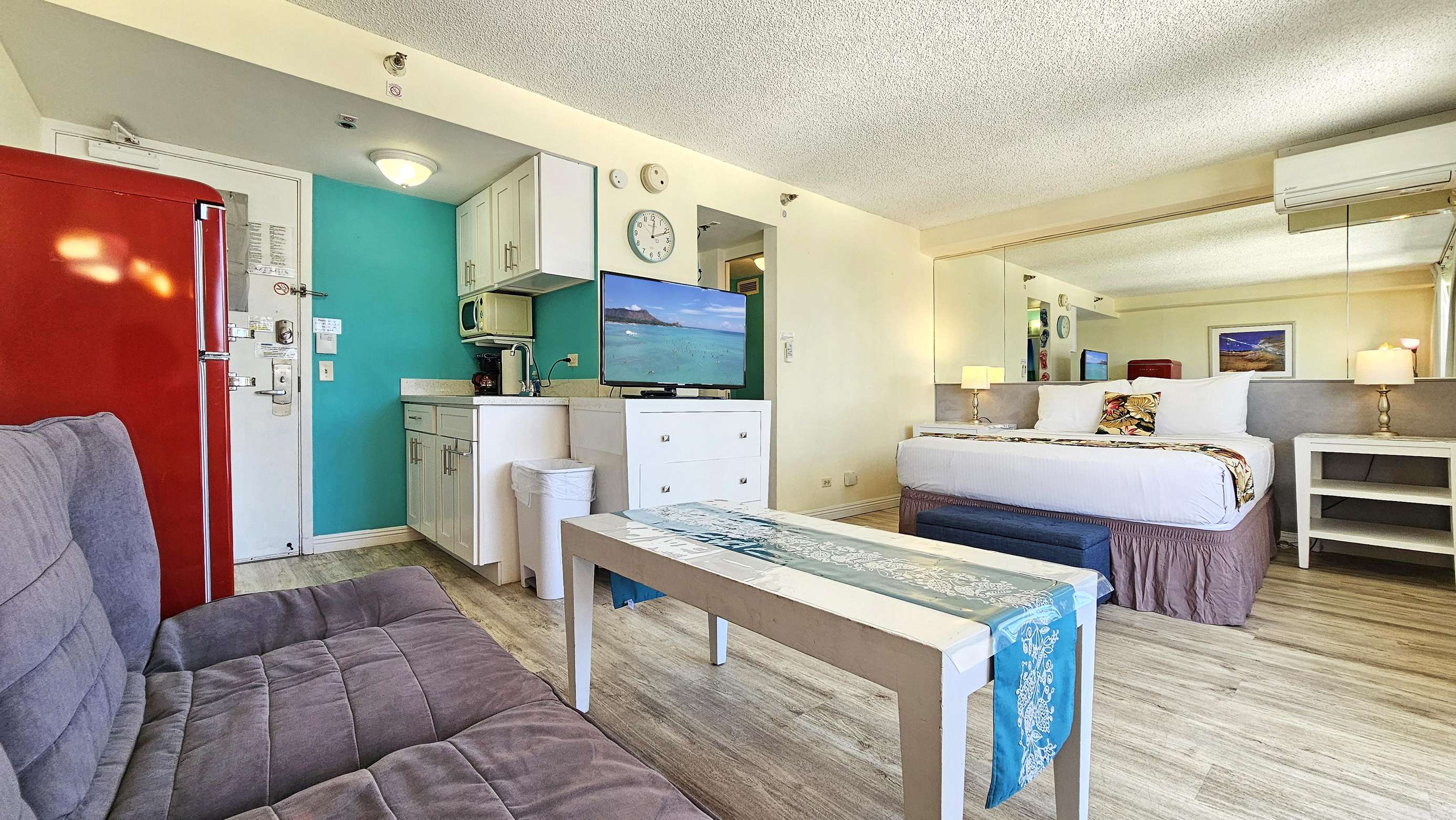 This high floor Studio unit has everything you need for comfortable stay, and all the convenience of a central Waikiki location.