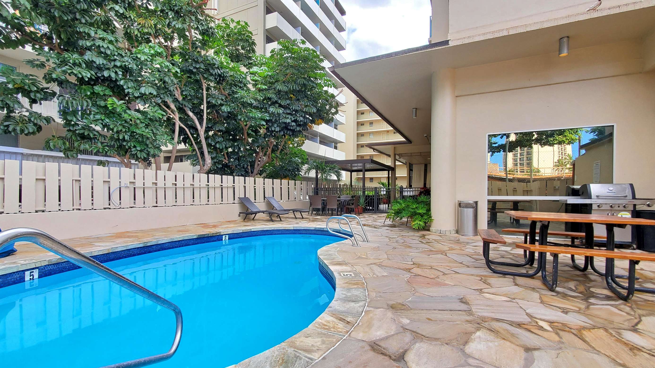 The Aloha Surf Hotel has swimming pool, picnic and barbecue area, exercise area, and great open-air lobby. The condo is located next to the Food Pantry which is the only large grocery store in Waikiki.