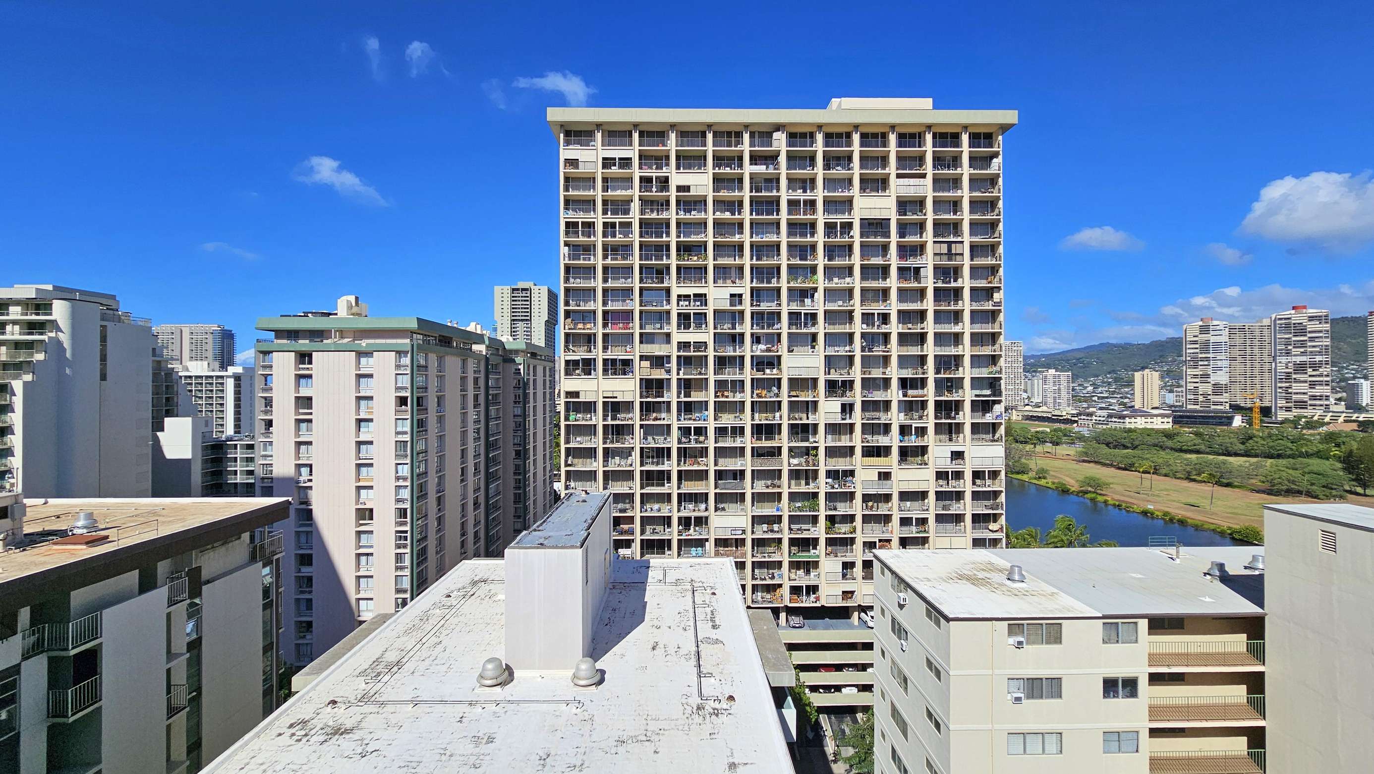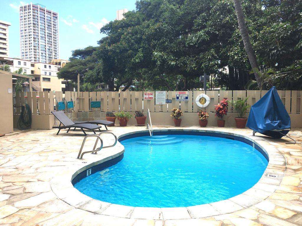 Located on the corner of Kanekapolei and Ala Wai Blvd, you are moments from the Ala Wai canal and green belt for its enjoyable walking and jogging, watching the paddlers, and tropical breezes. And the Ala Wai has the free parking option.