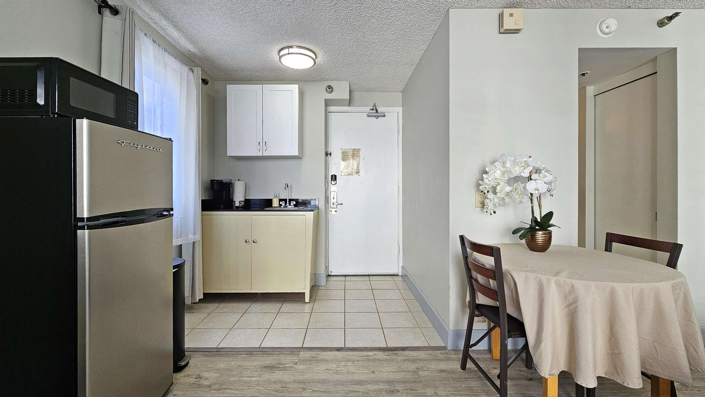 Hotel has swimming pool and great open-air lobby. The condo is located near an awesome deli supermarket (2nd floor on Kuhio) which is the only large grocery store in Waikiki.