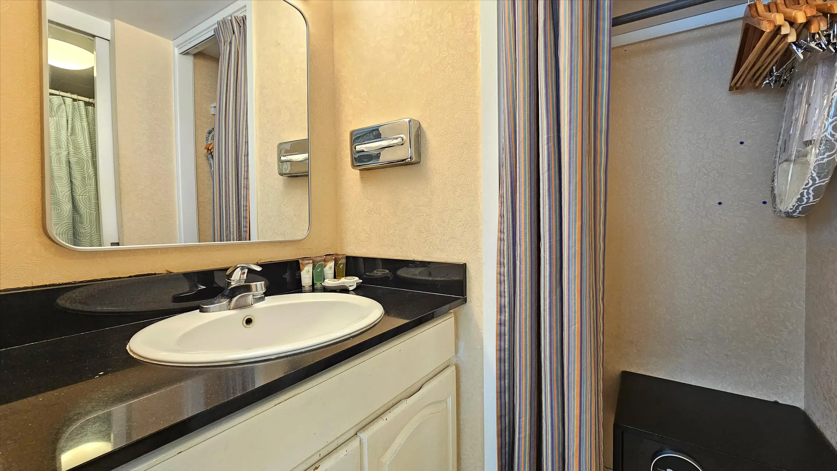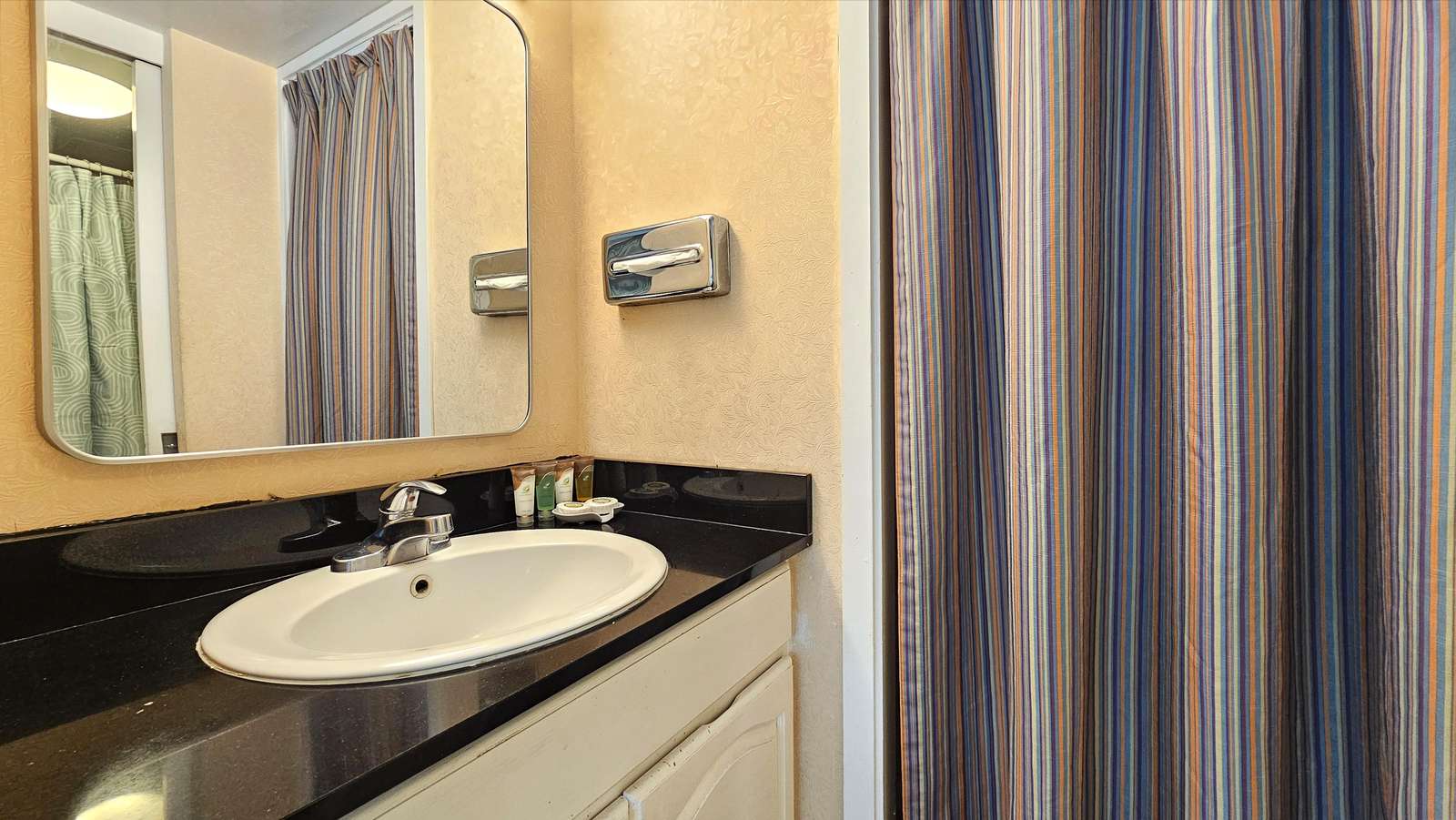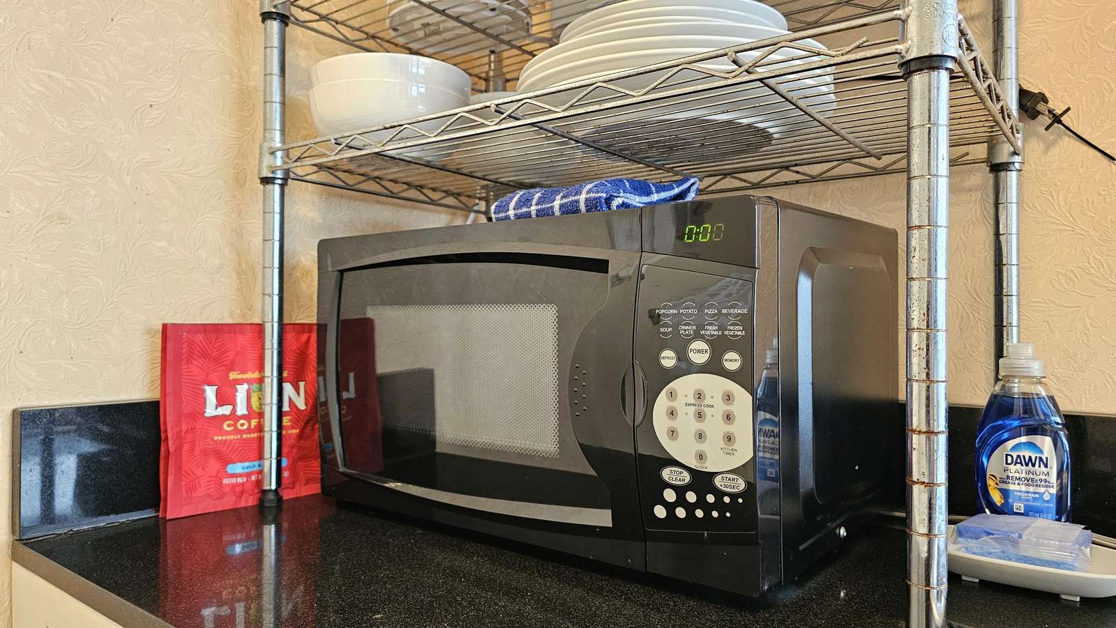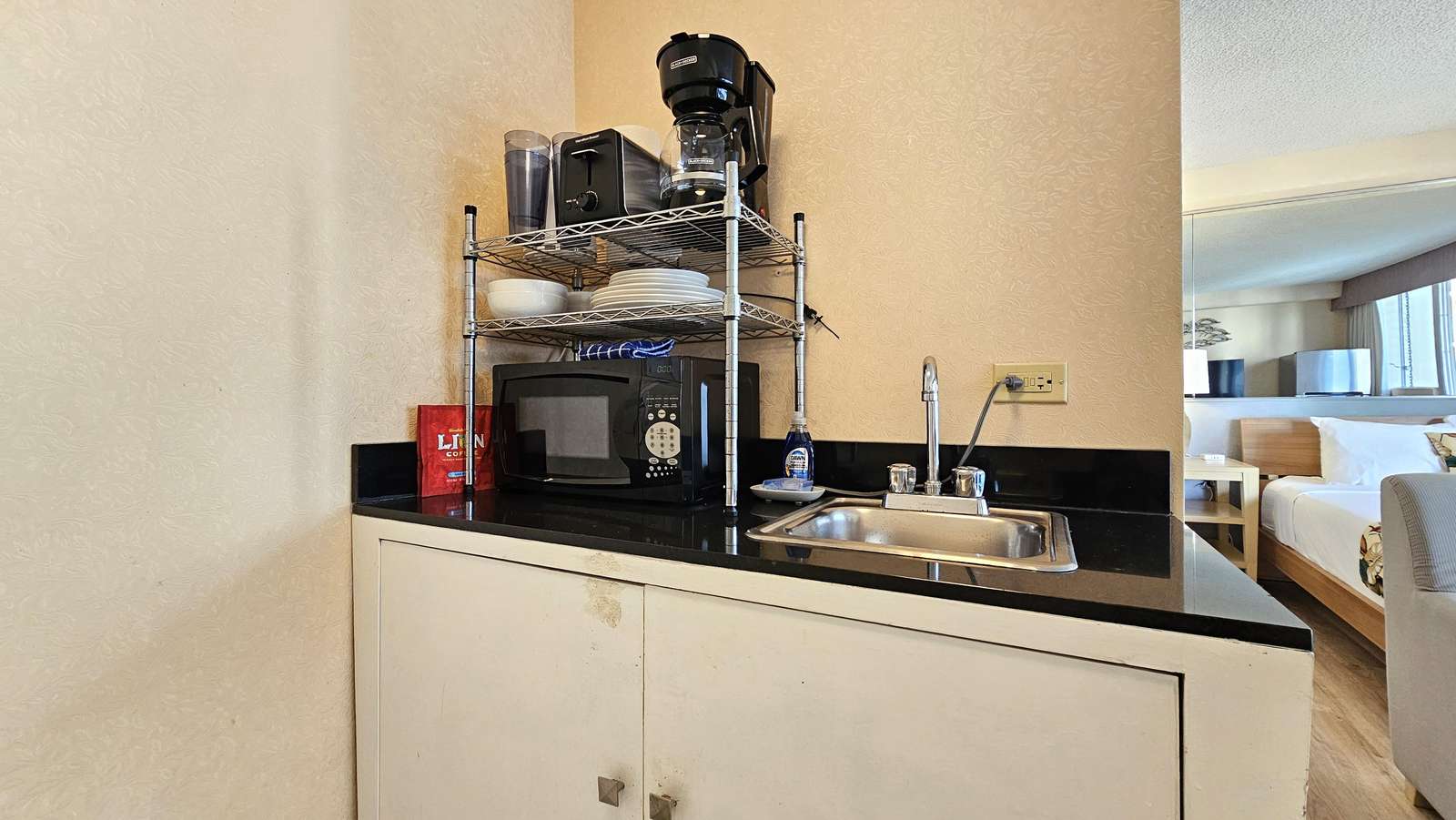 Our studio has a new air-conditioner, kitchenette area with small refrigerator, microwave, coffee-maker, color cable TV, hair dryer, iron/ironing board, and free Internet access.