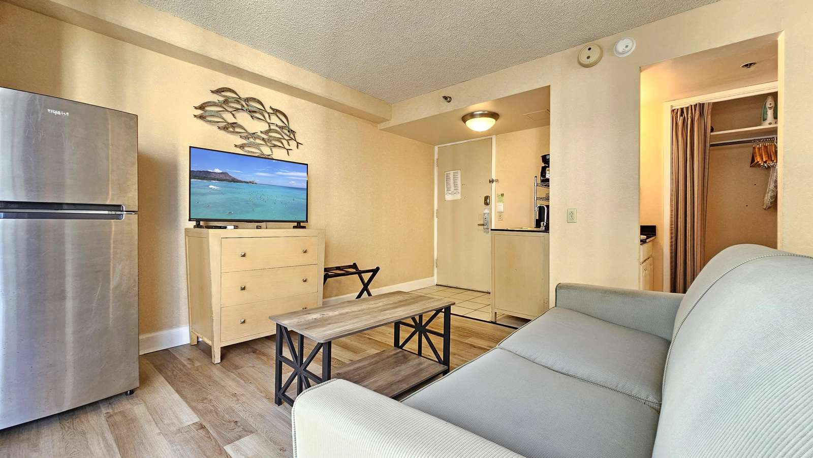 This 7th floor Queen Bed Studio & Sleeper Sofa unit has everything you need for comfortable stay, Sleeps 3 guests and all the convenience of a central Waikiki location.
