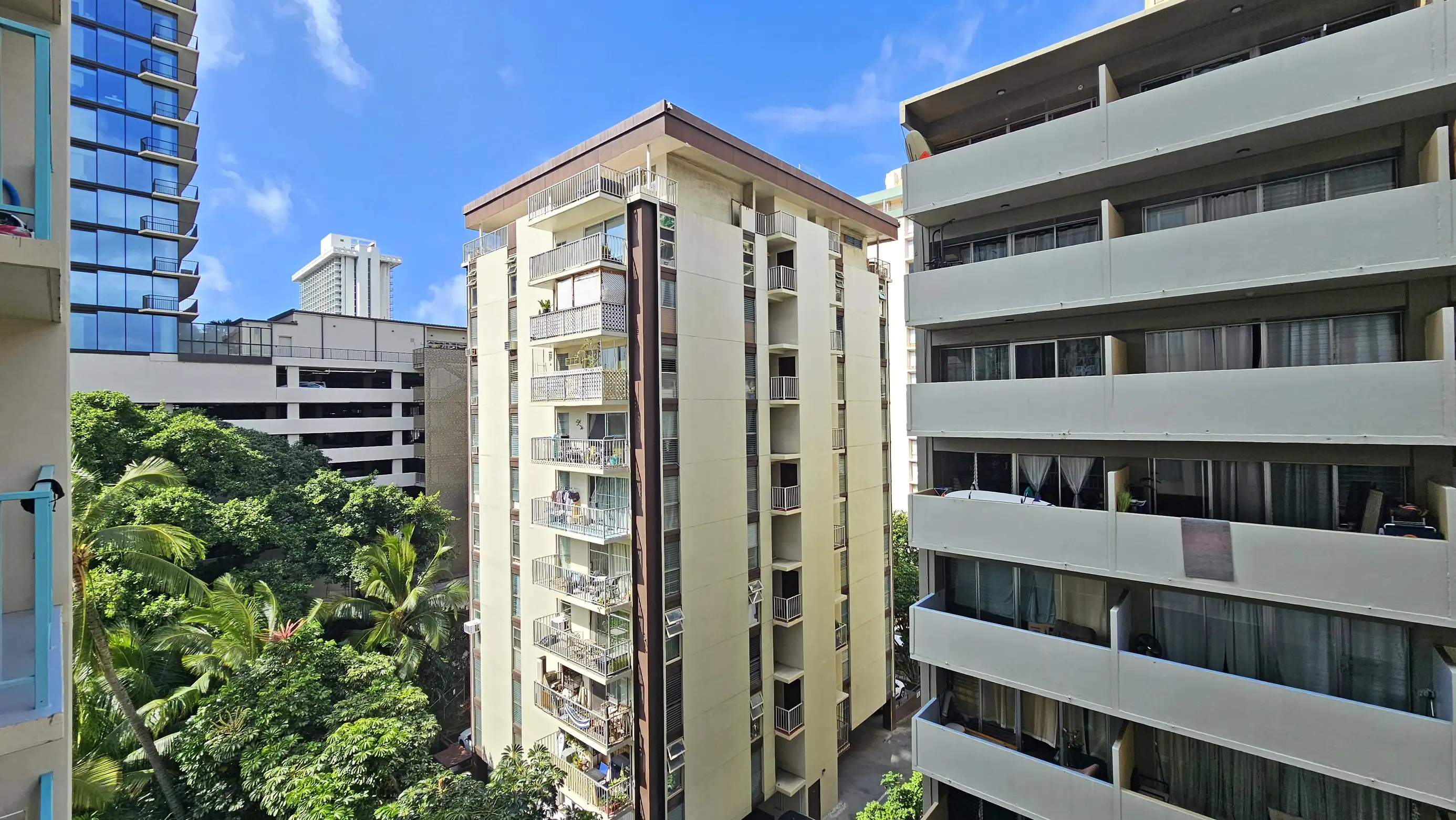 Located on the corner of Kanekapolei and Ala Wai Blvd, you are moments from the Ala Wai canal and green belt for its enjoyable walking and jogging, watching the paddlers, and tropical breezes. And the Ala Wai has the free parking option.