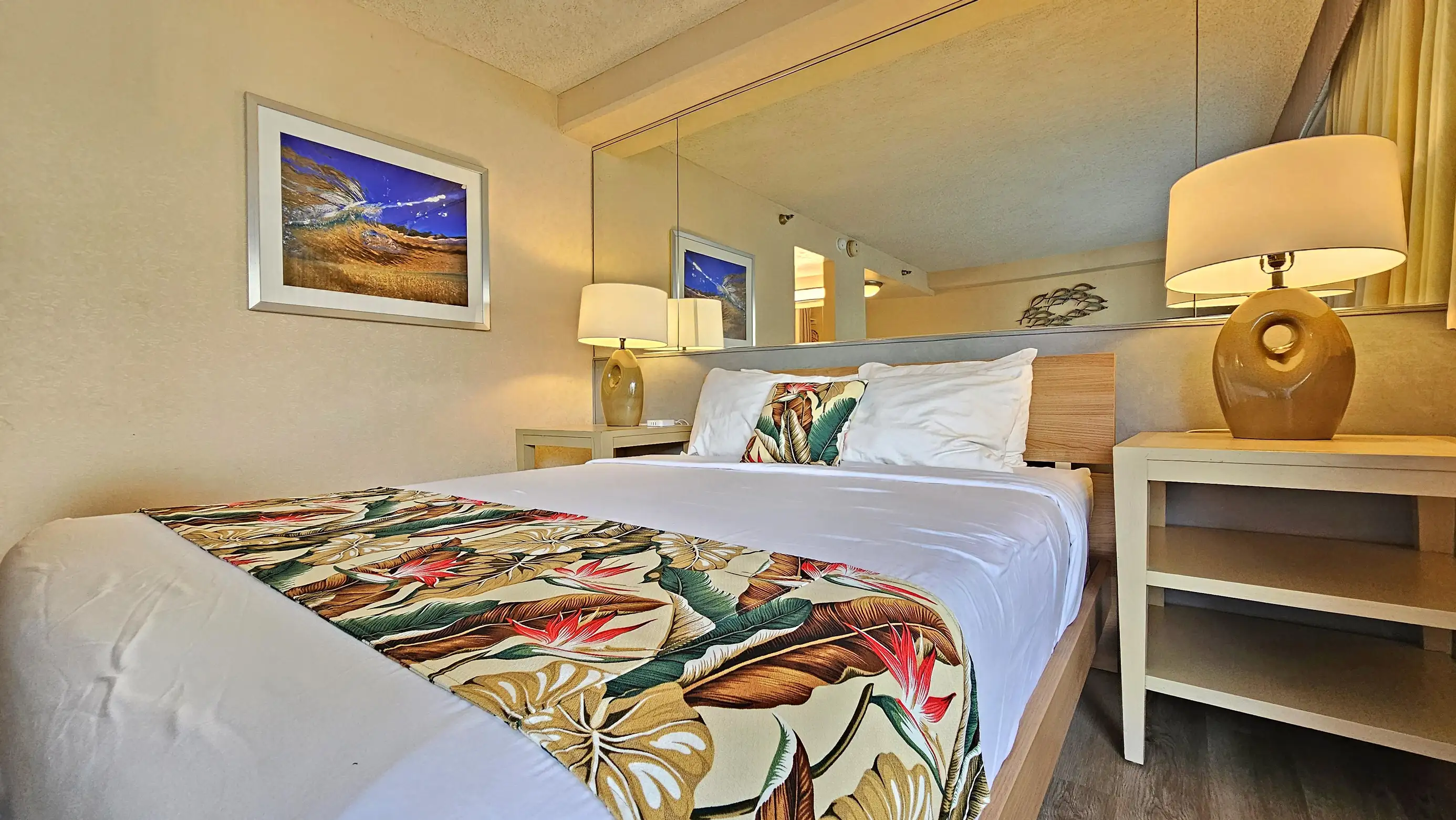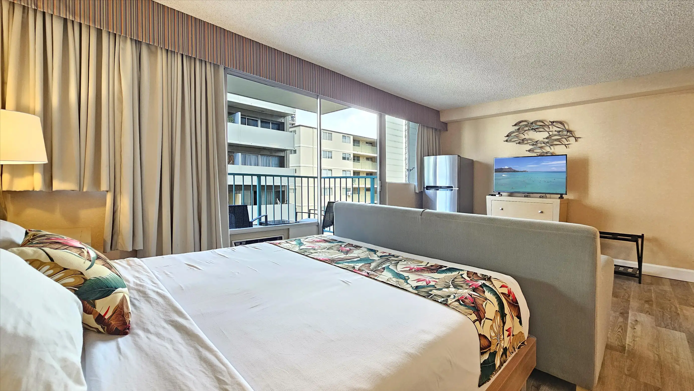 This 7th floor Queen bed Studio has everything you need for comfortable stay, and all the convenience of a central Waikiki location. Enjoy morning coffee and mountain views for the balcony. Featuring a comfy Queen size bed.