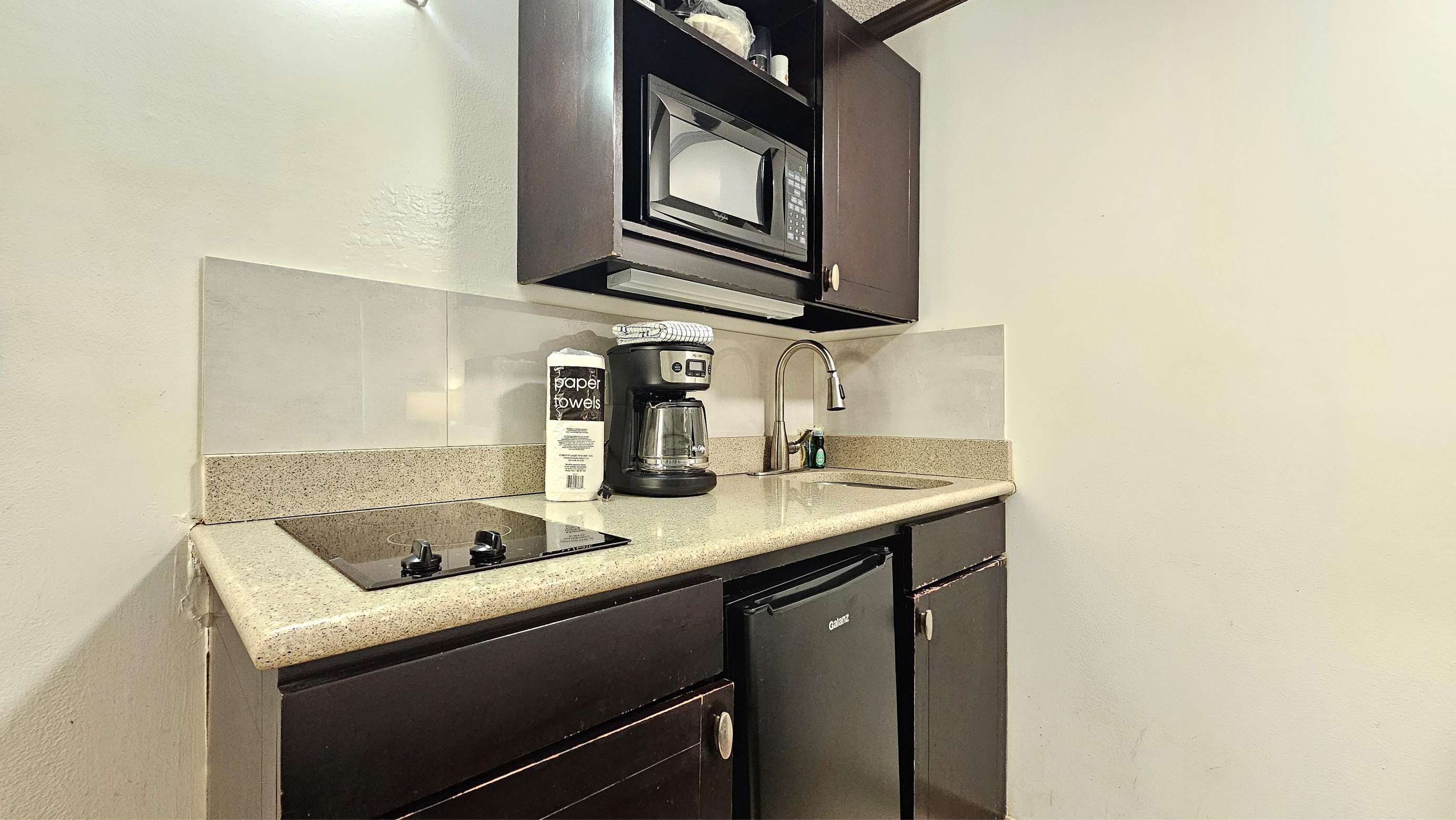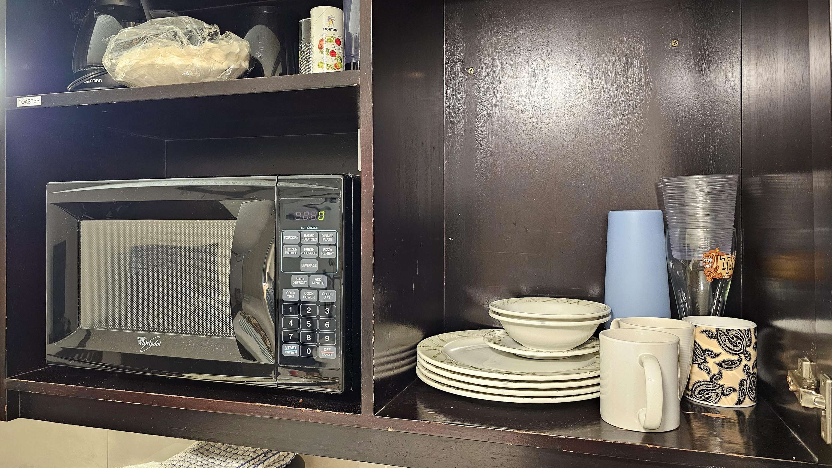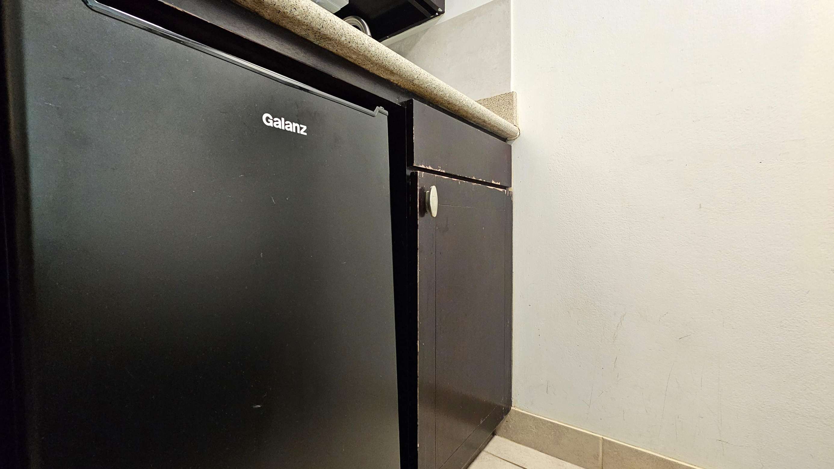 Our studio has a new air-conditioner, kitchen area with two small refrigerators, two burner stove top, microwave, coffeemaker, color cable TV, hair dryer, iron/ironing board, and free Internet access.