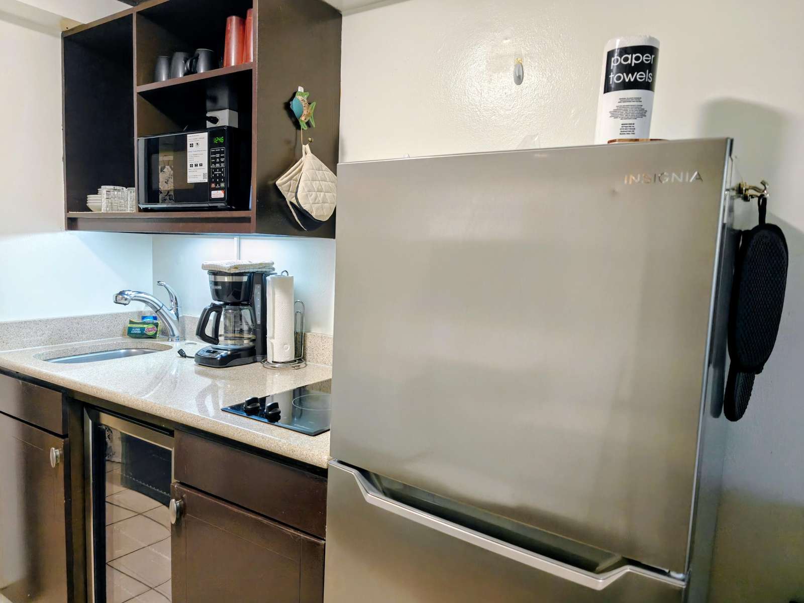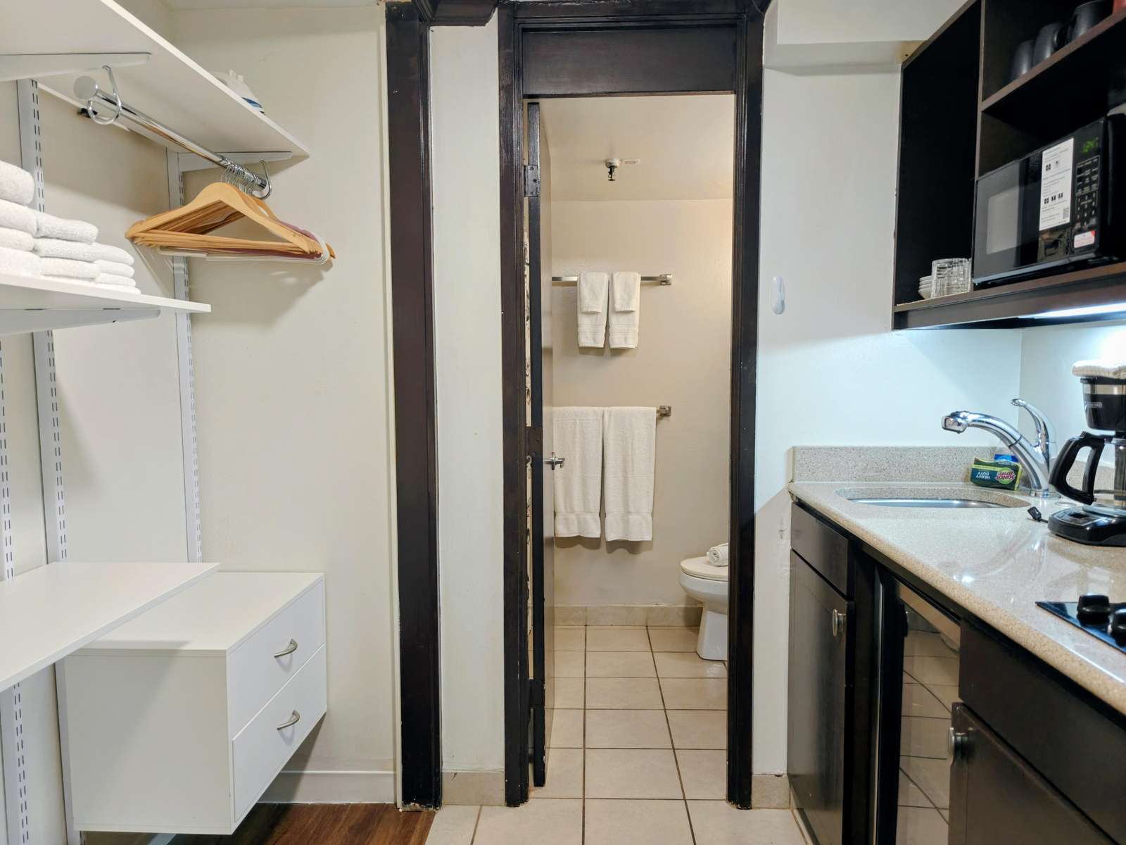 The condo has two Queen beds, kitchenette with a cook top, fridge, coffee pot and toaster. You will be able to have TV and free Wifi in your room. You have a full bath with a tub and shower combination. There is also a closet and a chest for your clothes.