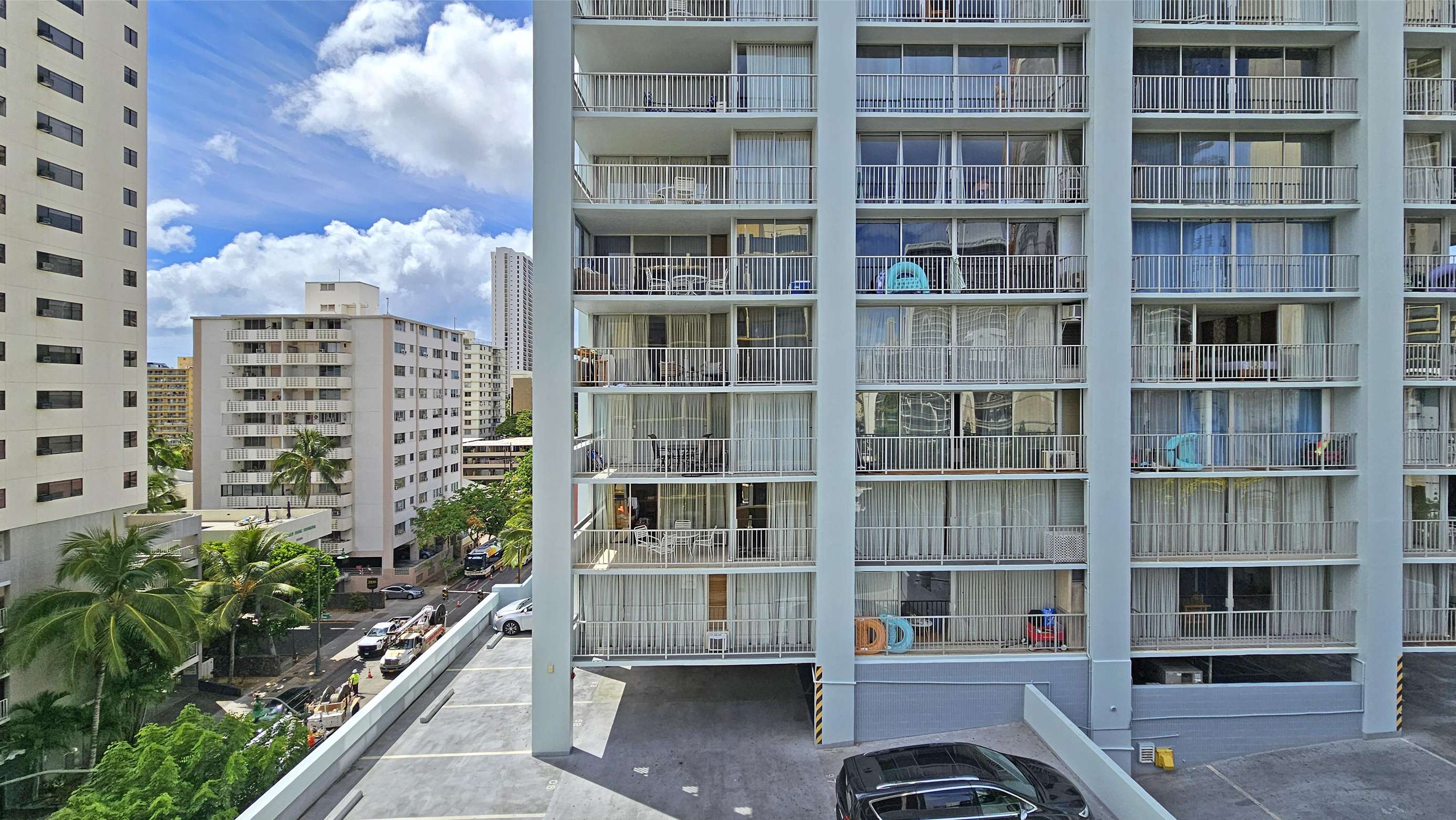 You can walk to the beach and all Waikiki attractions. Parking is available for a daily rate in the garage next door.