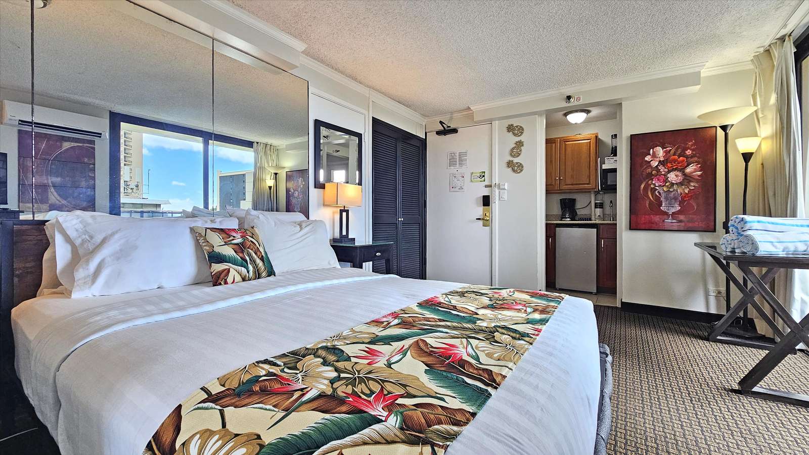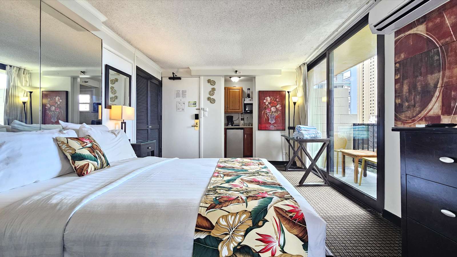 A beautiful 9th floor Queen Studio w/ kitchenette area and Lanai balcony overlooking the pool area located at the Waikiki Bamboo Hotel. 1 block from Waikiki Beach plus the Honolulu Zoo and Queen Kapiolani Park is also close-by.