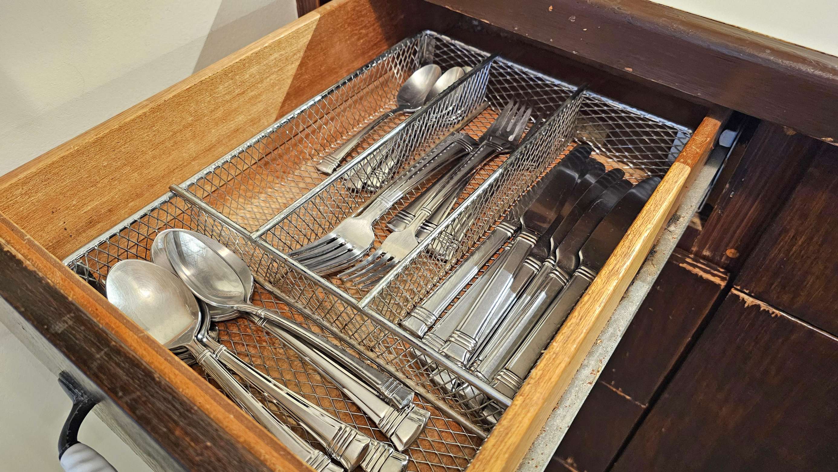 The beautifully furnished, living room includes Indonesian, dark-wood, plantation-style furniture, flat screen TV & dining table for 2.