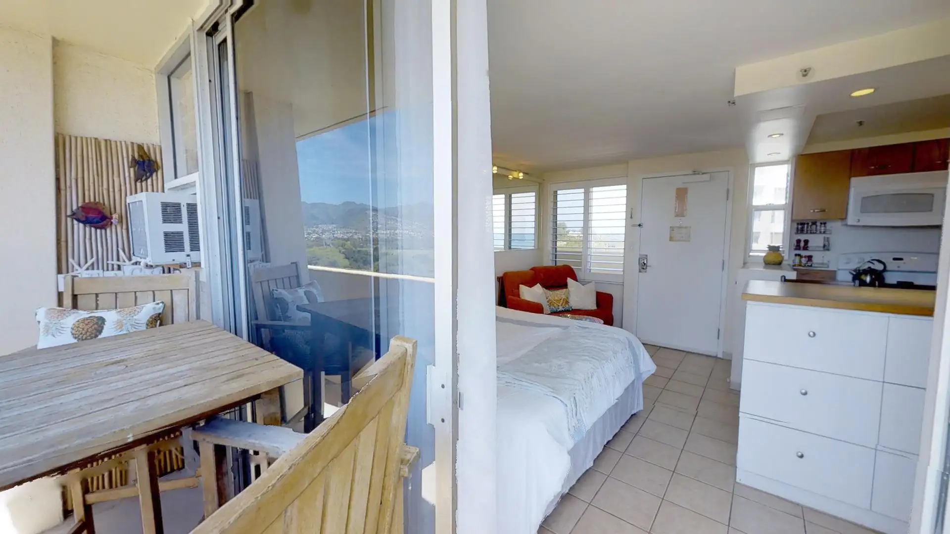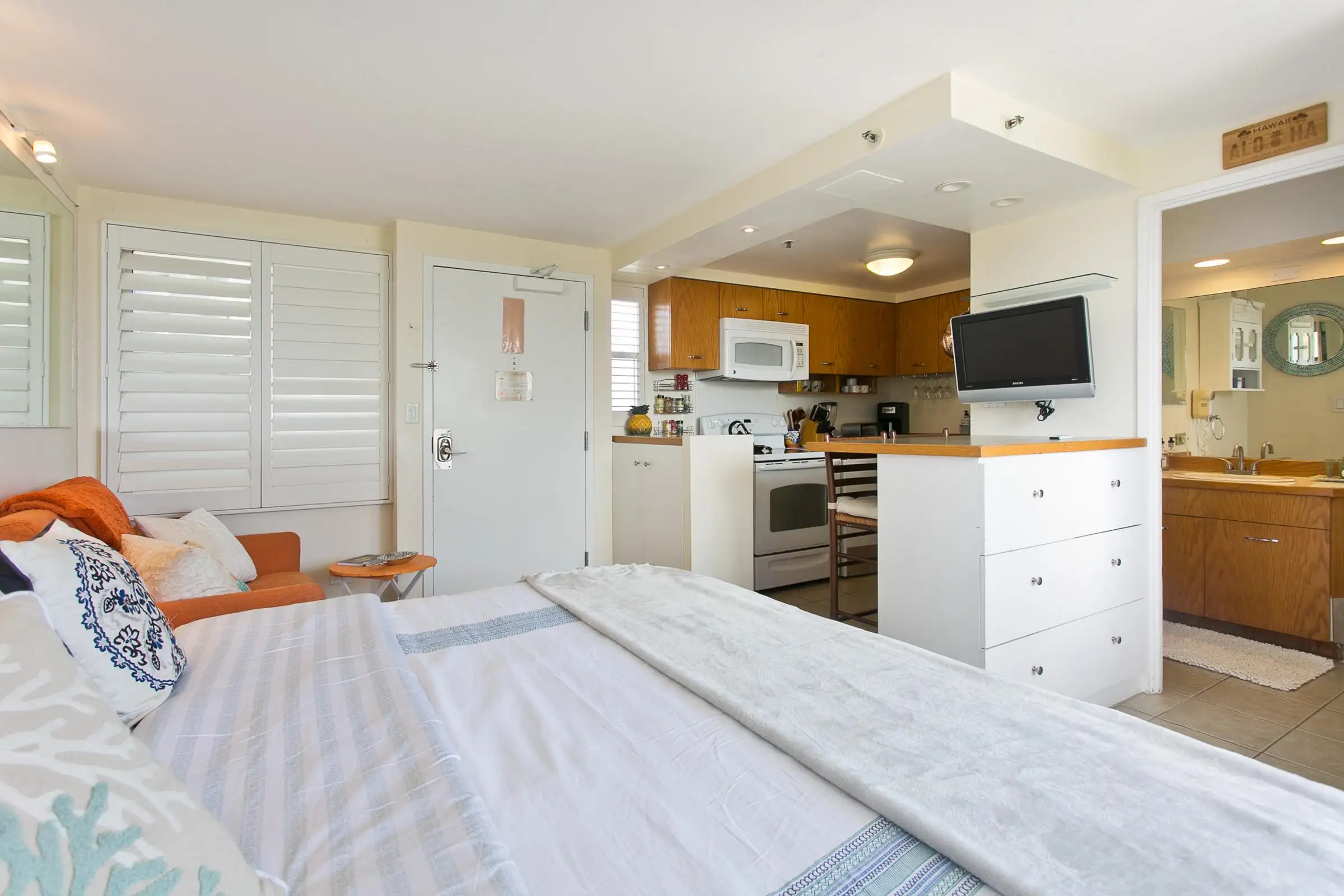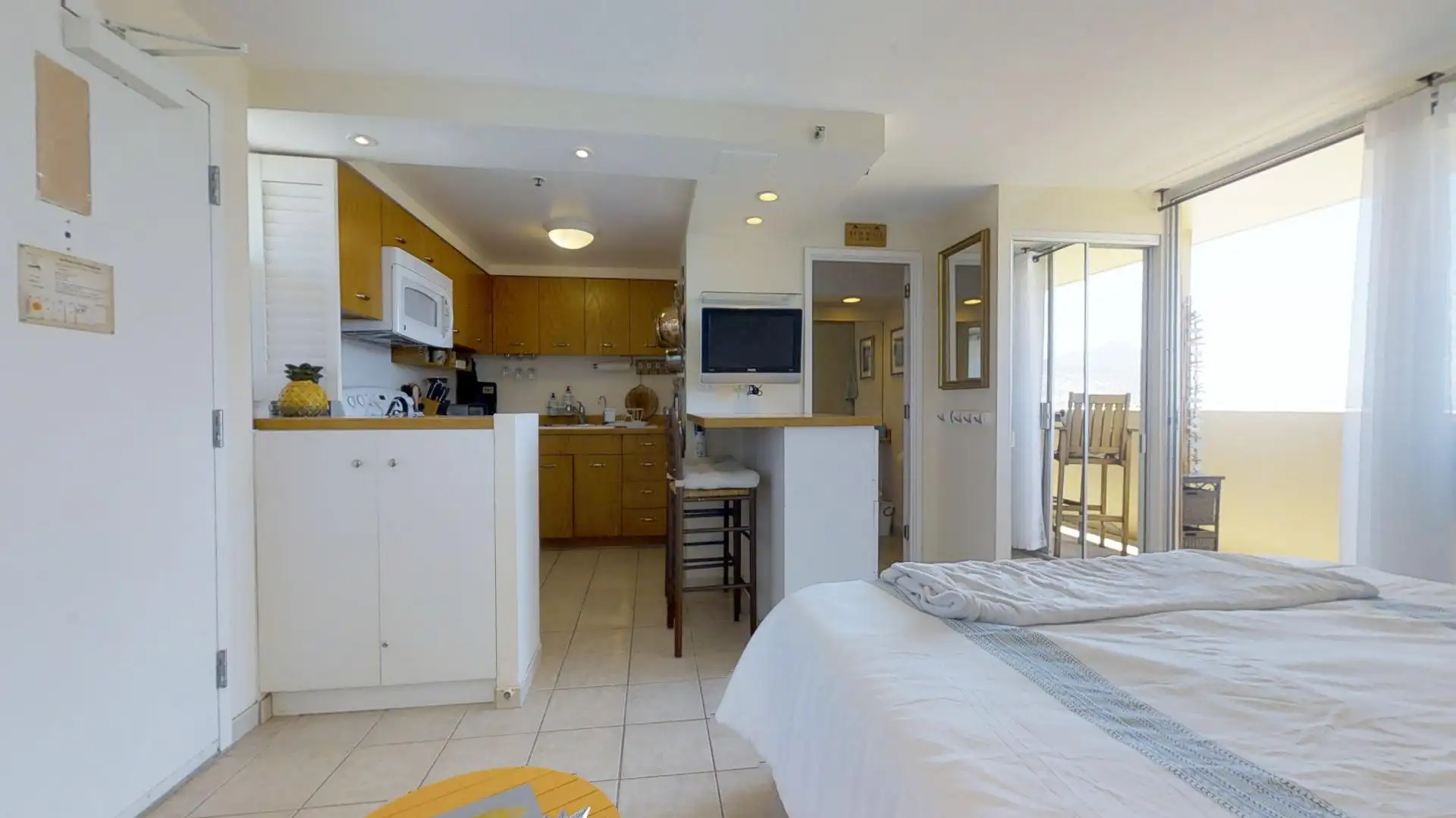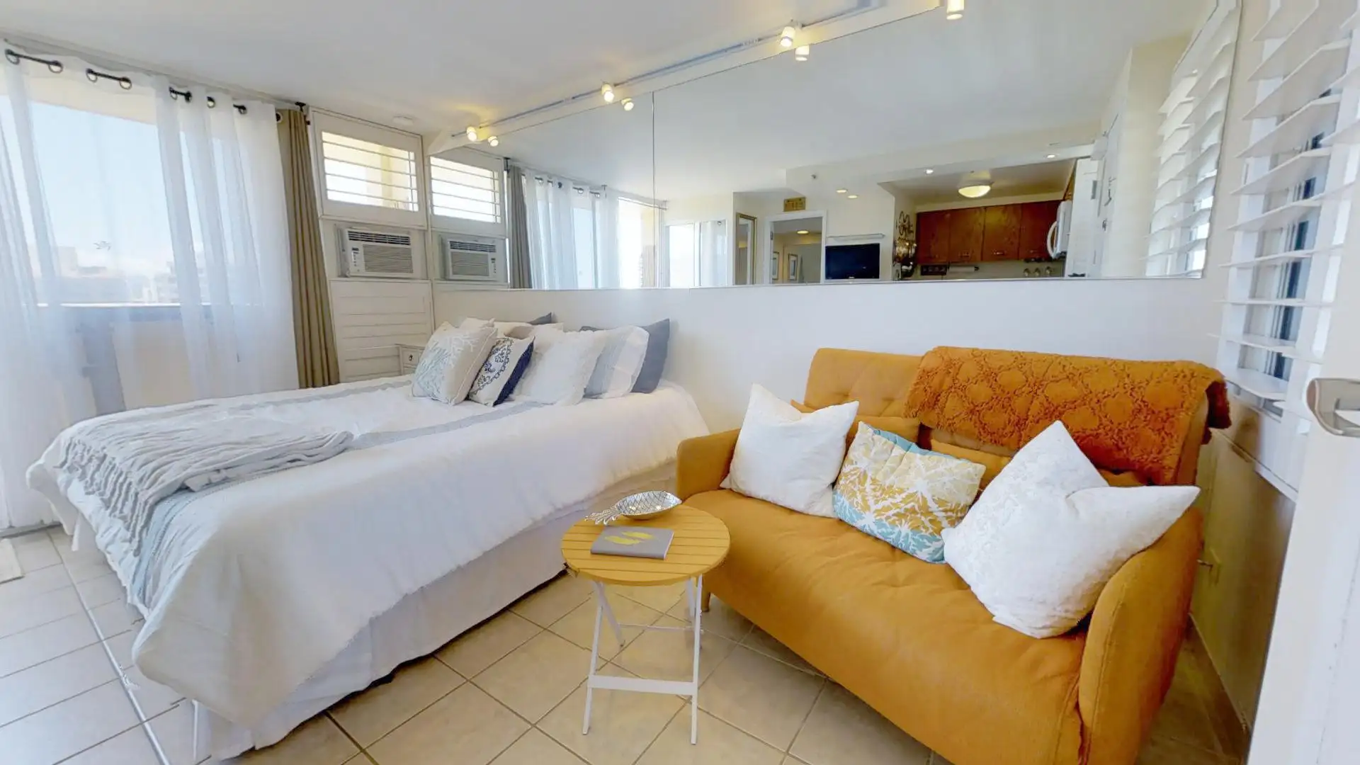 A bright and airy space on the 11th floor of this boutique private hotel. Full kitchen with King bed private lanai and AMAZING views. Everything you'll need whether just for the weekend or a full month stay.