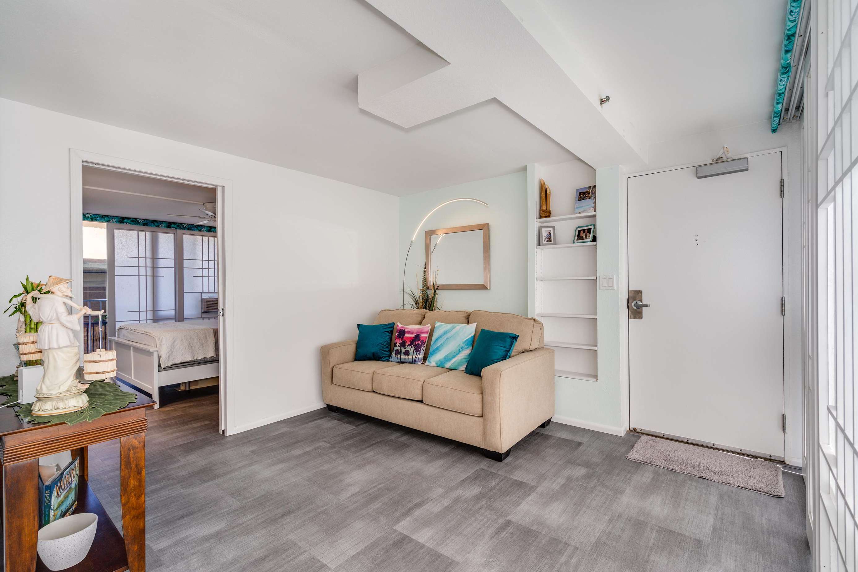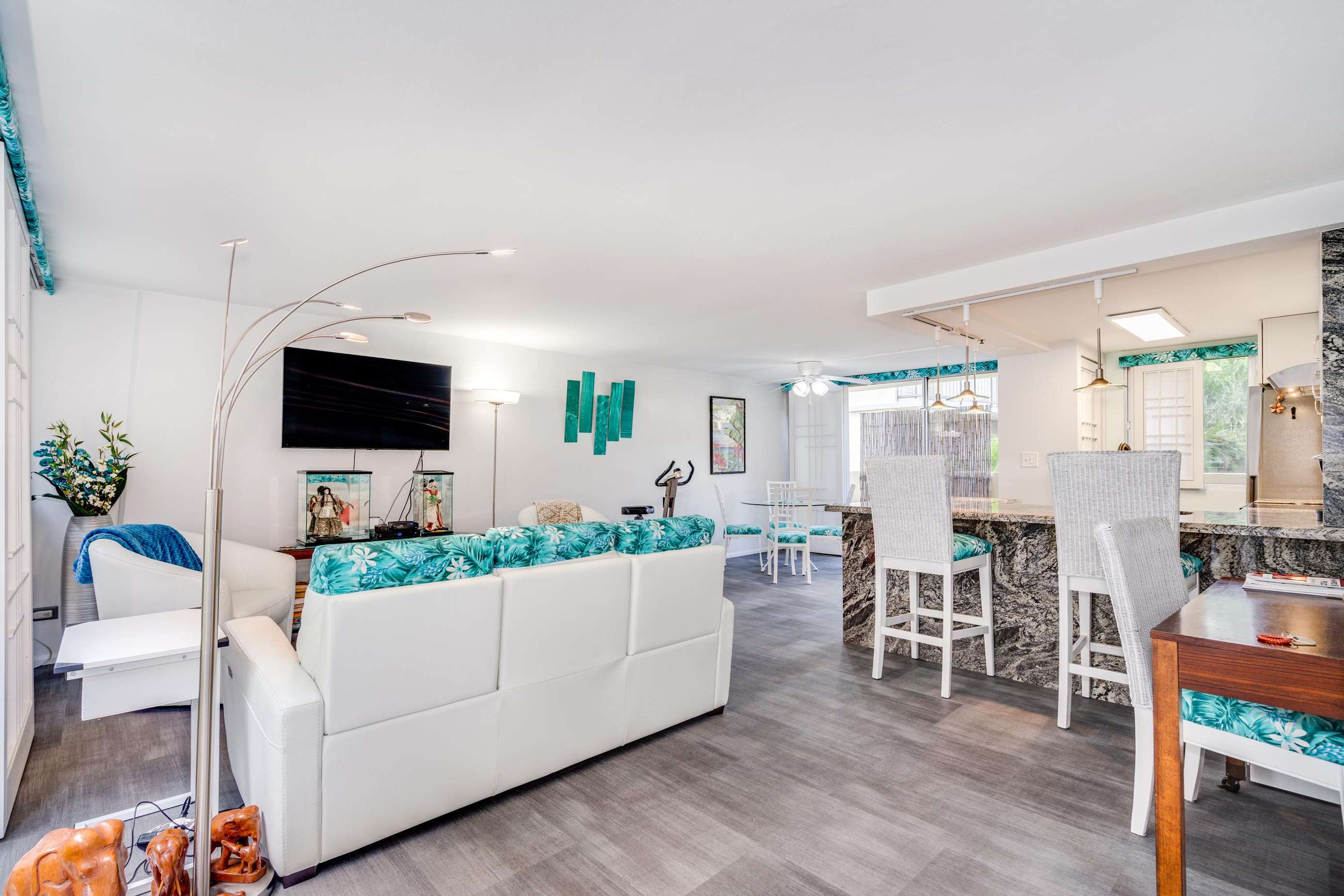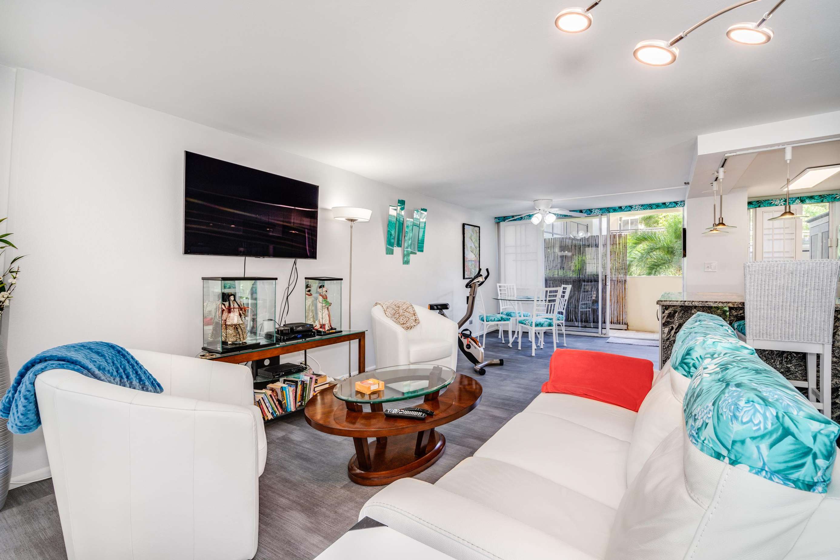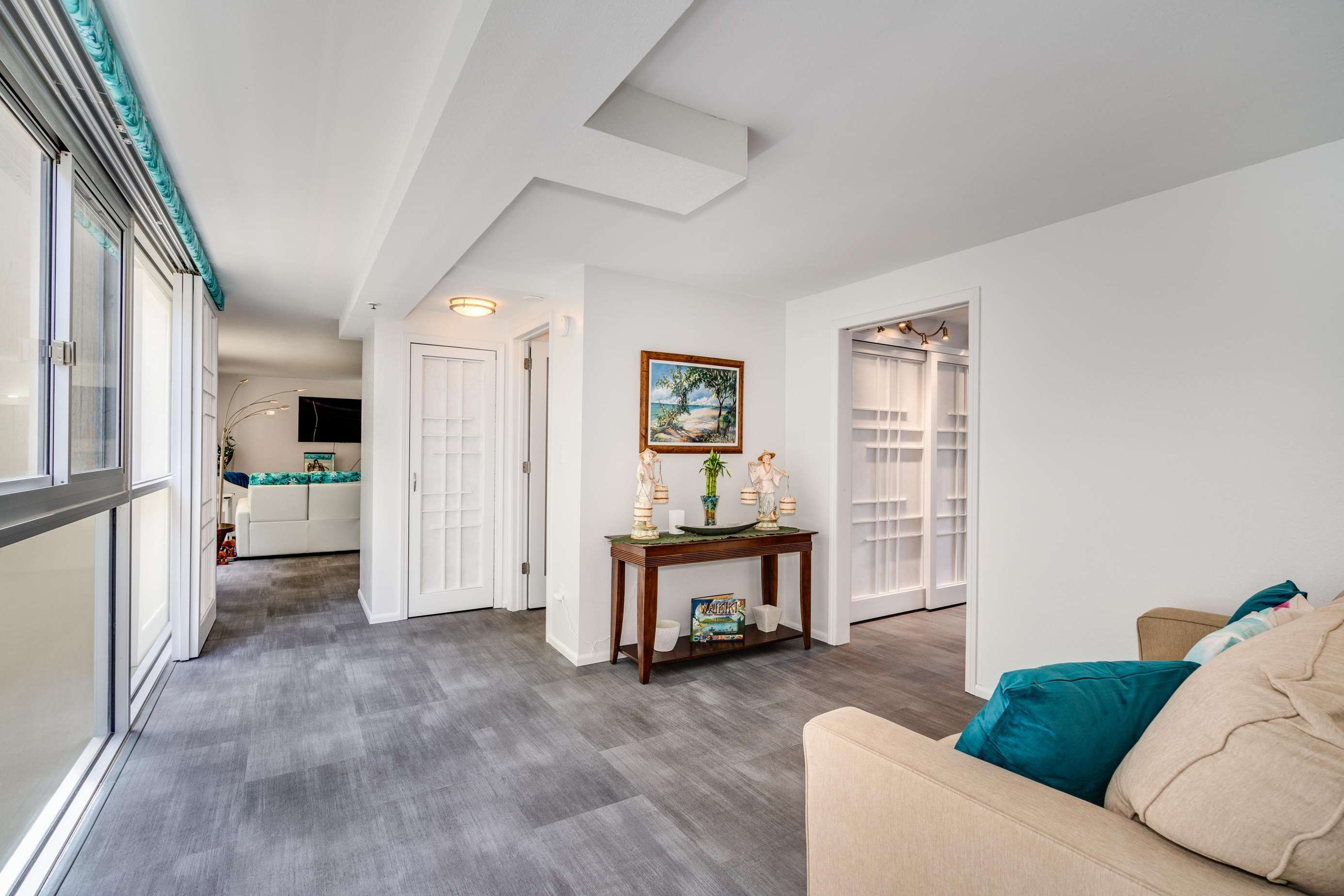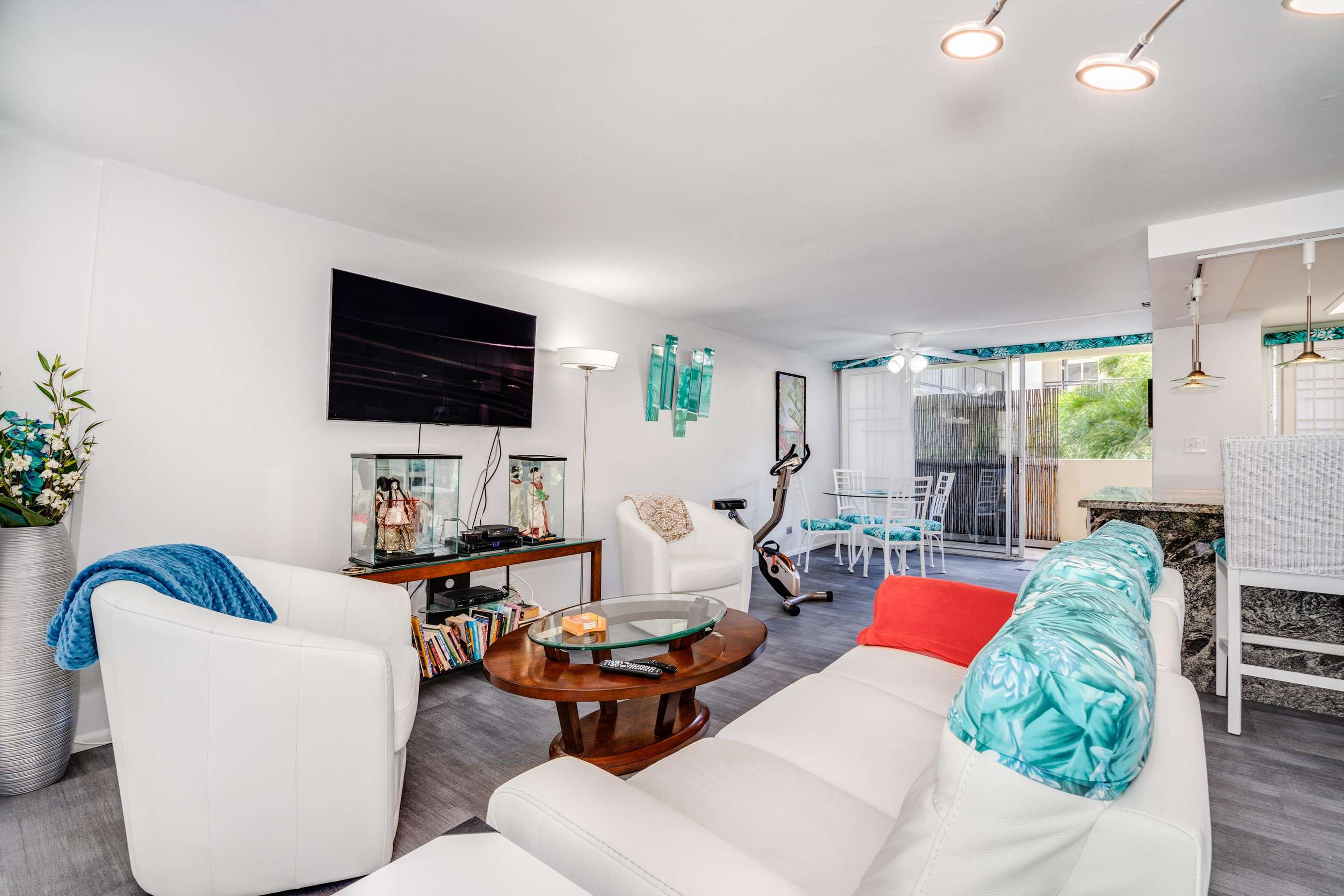 Adjacent to the bedroom is the guest den with its two person sleeper sofa and Asian pacific Zen feel decor. This space is also an ideal location to relax with your favorite book and a glass of wine as others watch TV in the main living room.