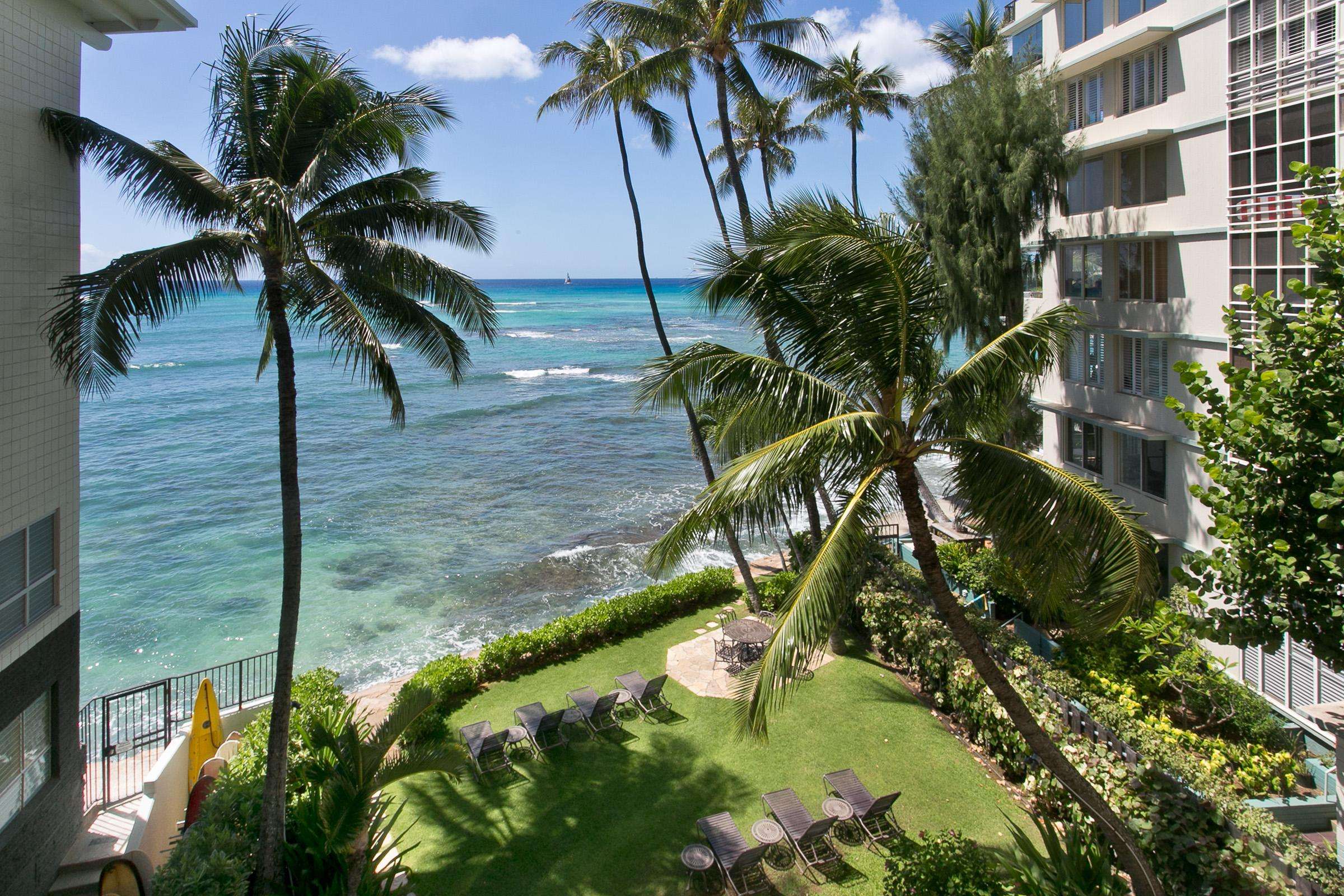Seasonal whale watching is a must or maybe just passing the time counting sailboats as they daily sail out to and from Waikiki and the Ilikai marina.