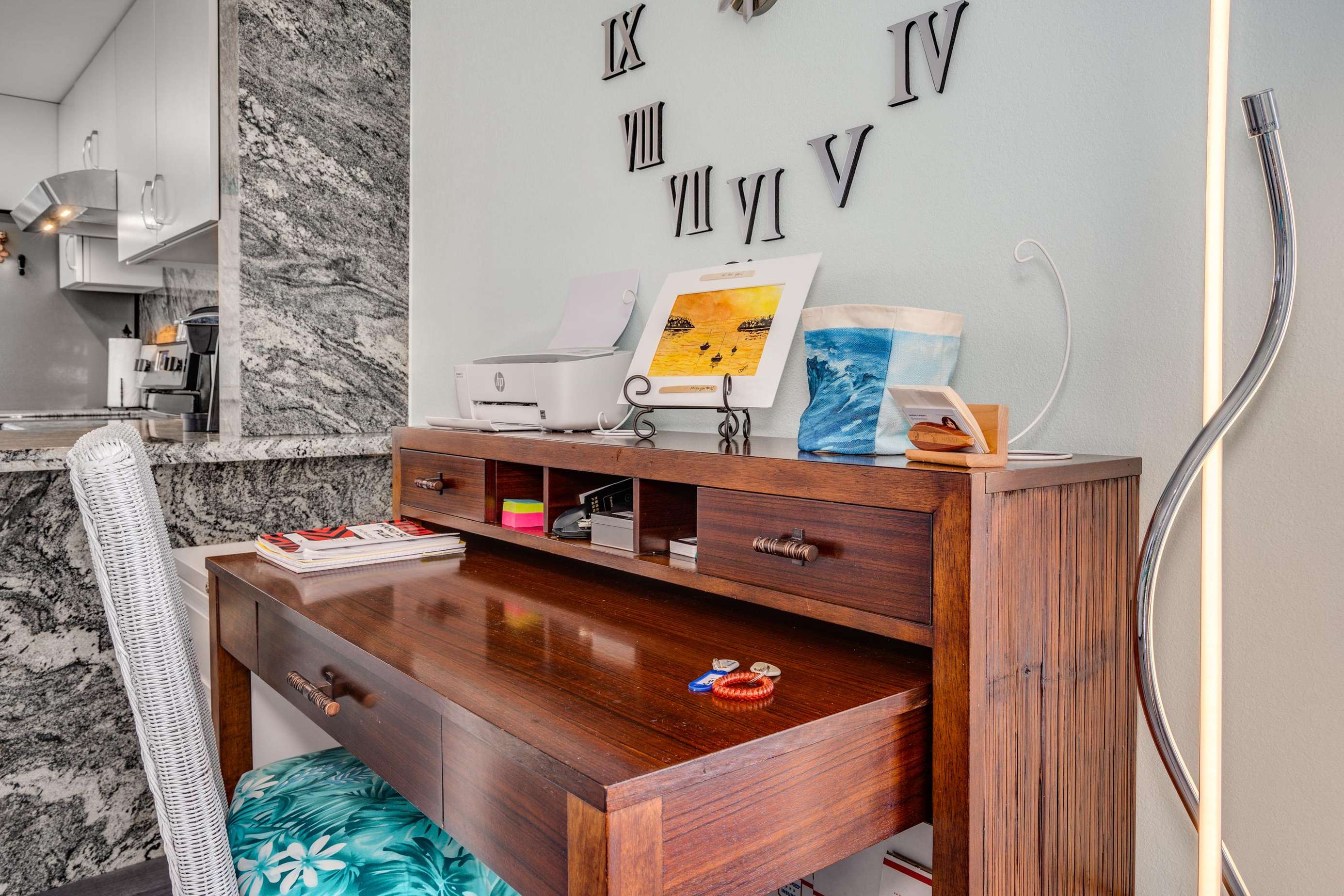 Our writers desk makes the perfect spot to get those postcards written or work on your laptop finishing that project for school or work.