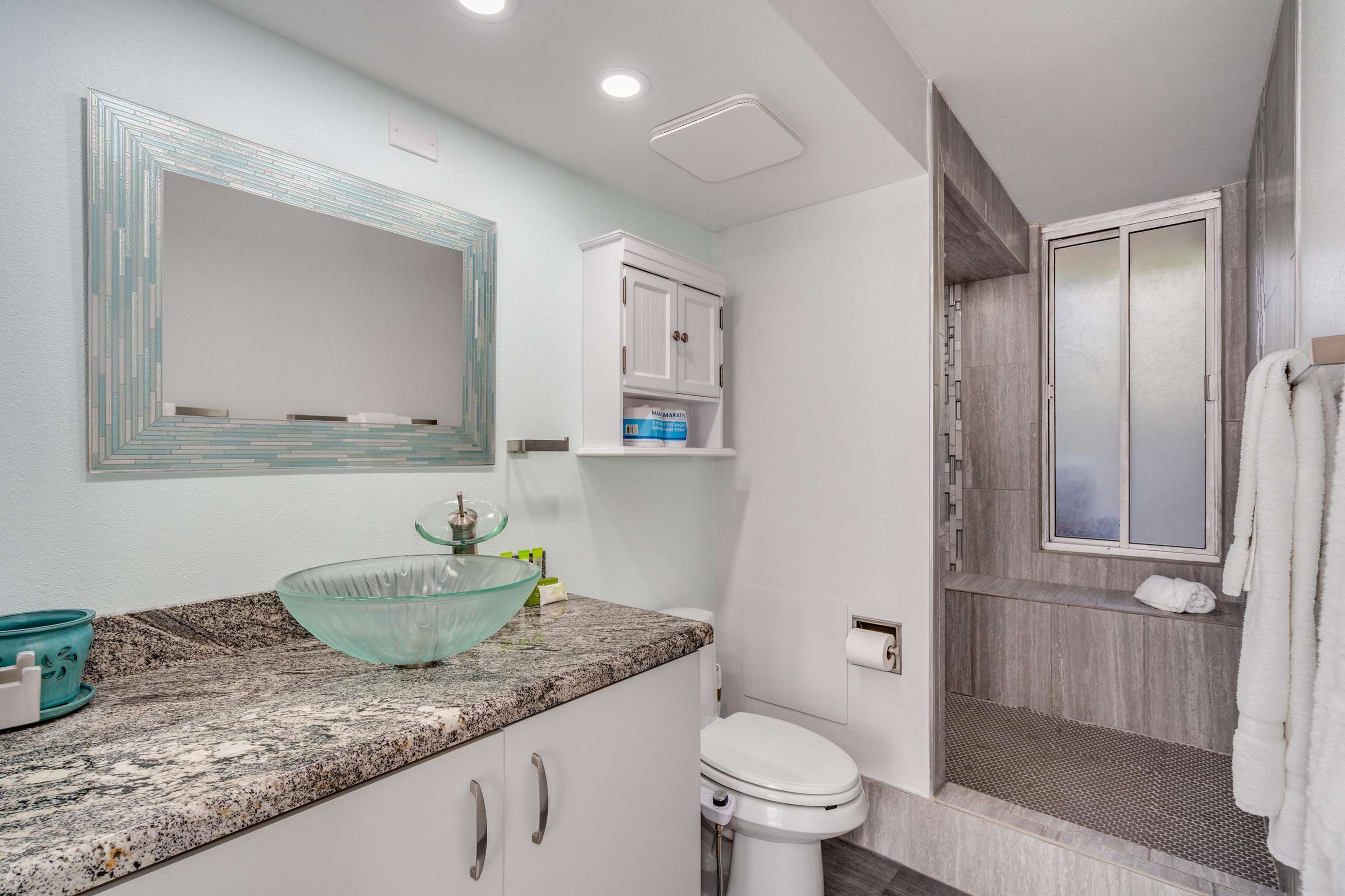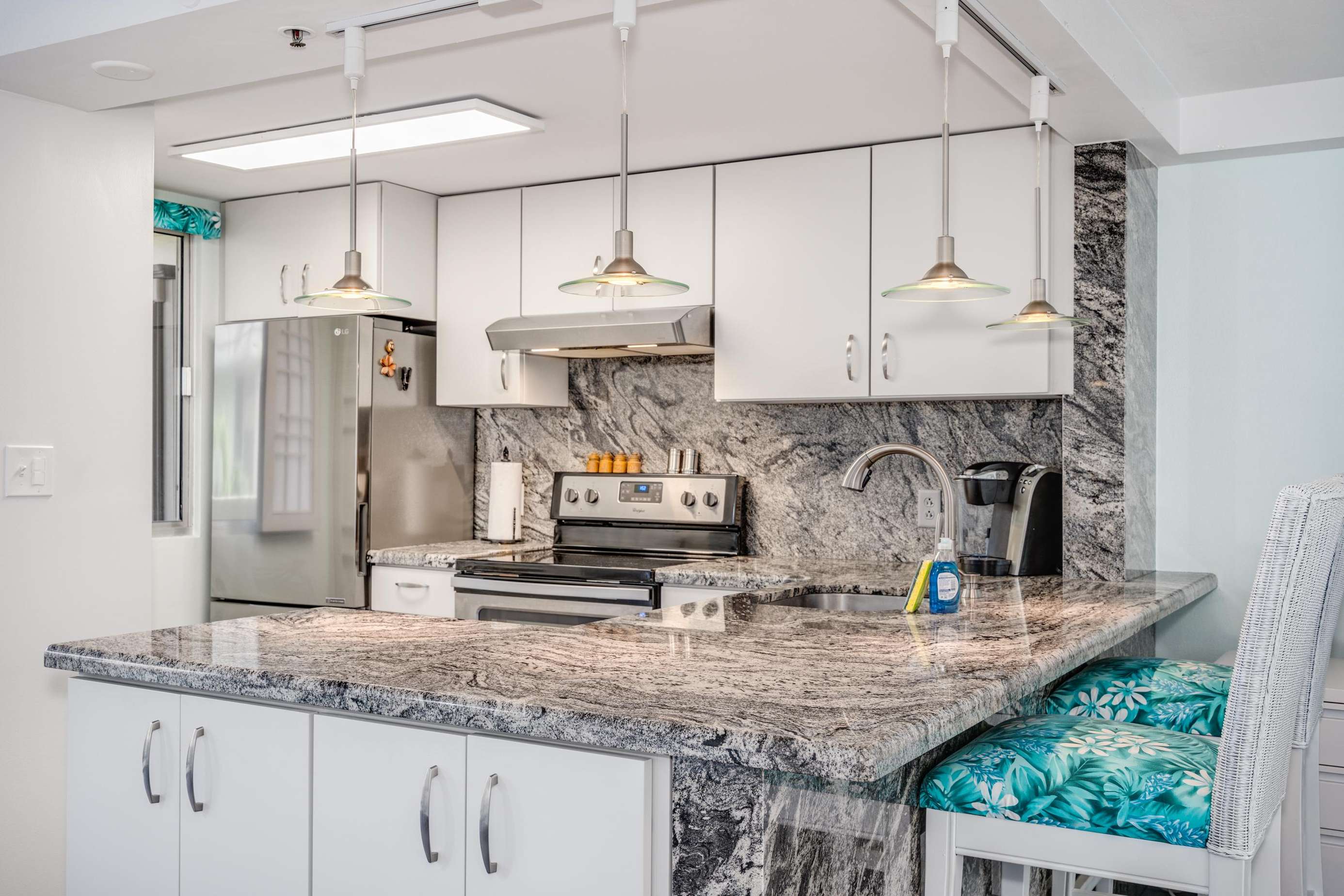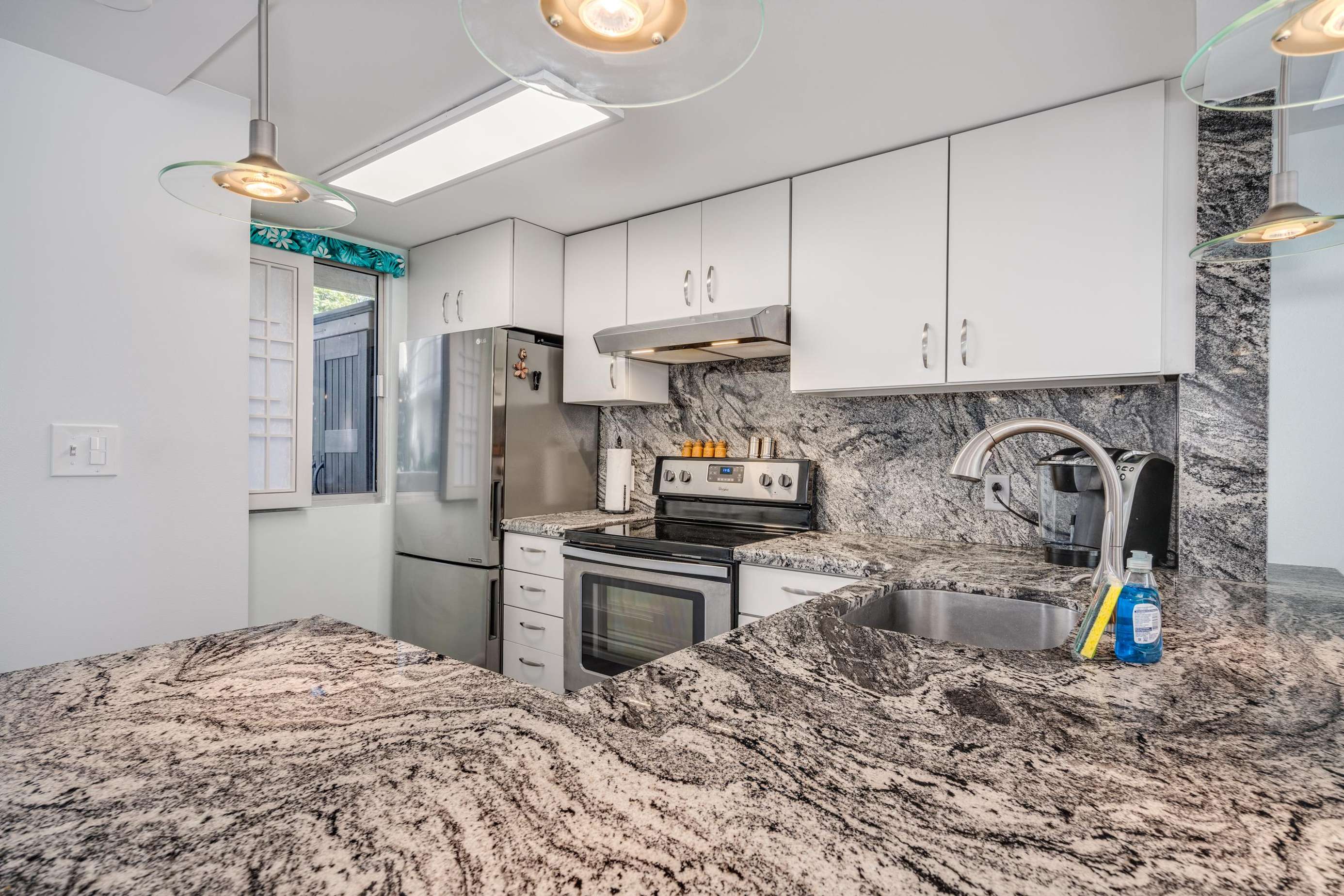 Brand new granite kitchen with modern appliances & a bright bathroom with oversized walk-in shower - comfy living for up to four.