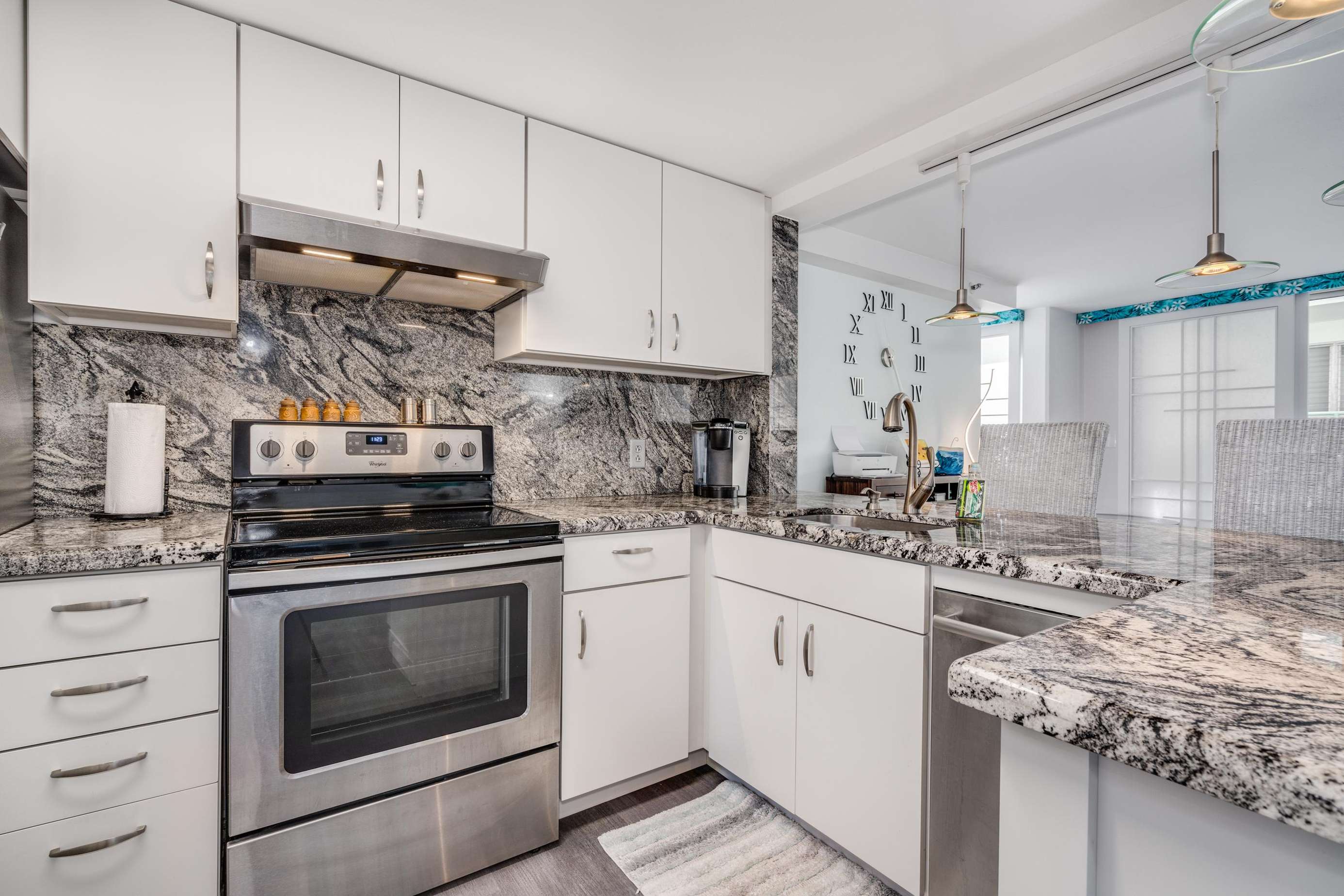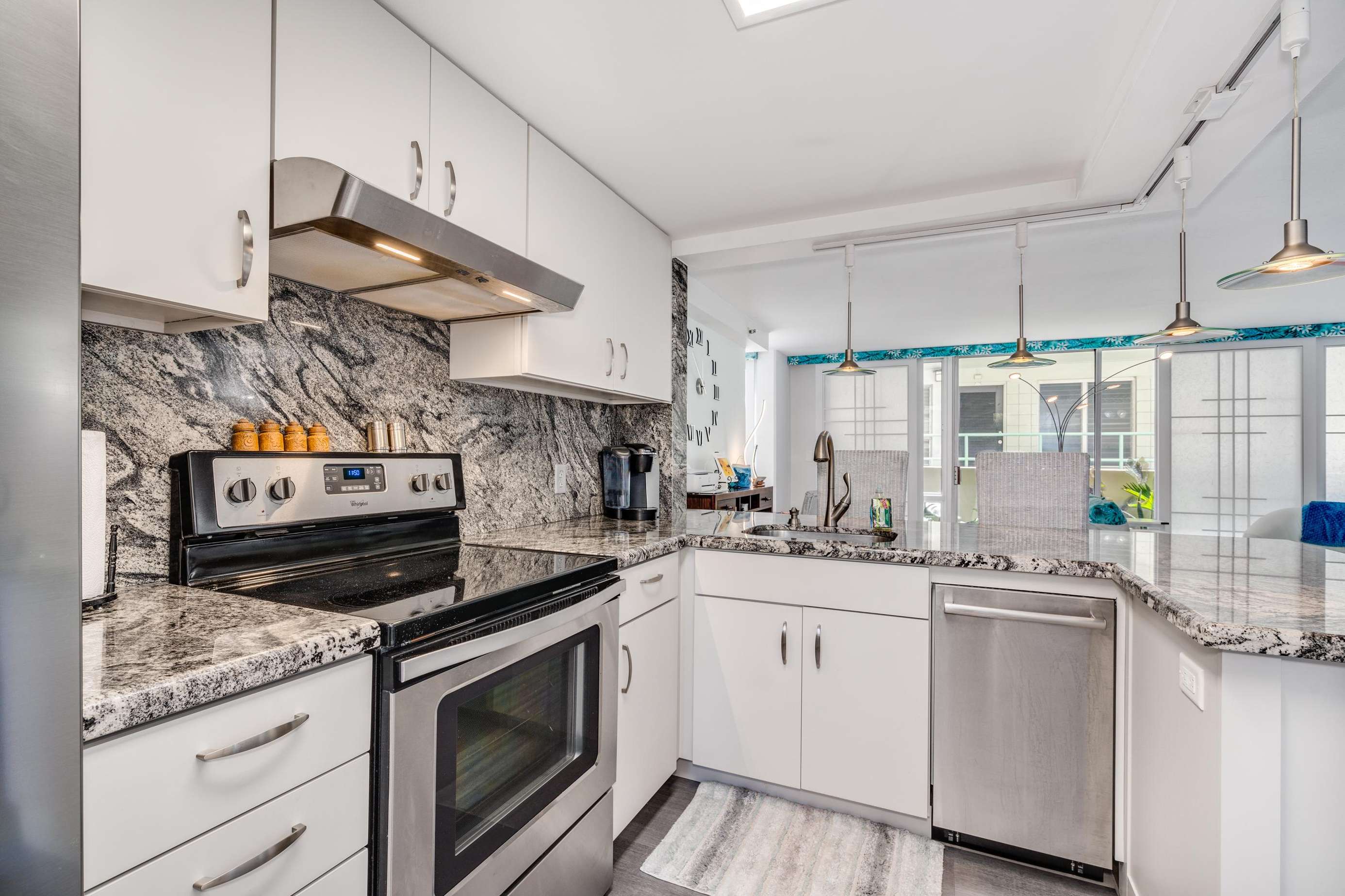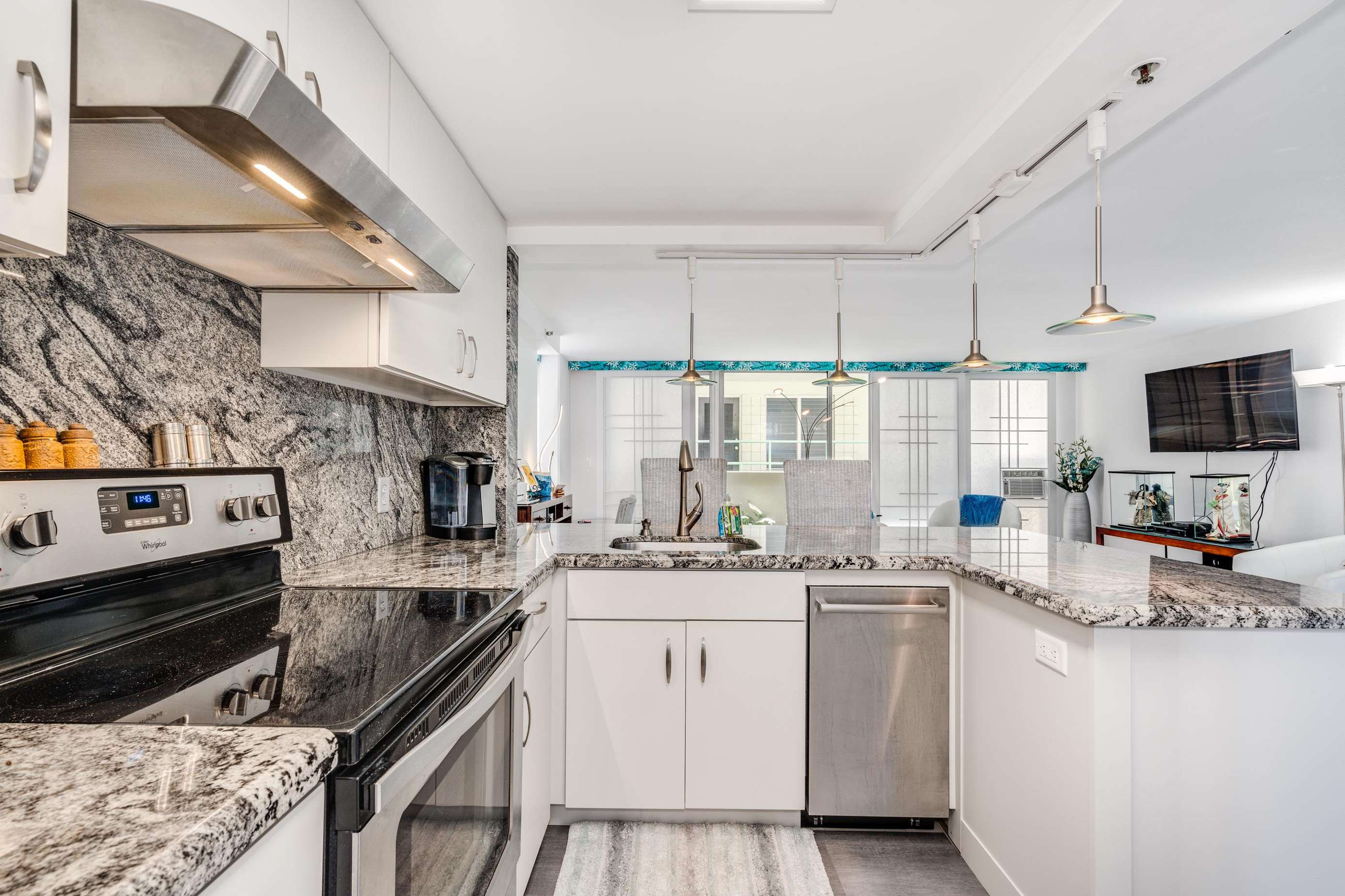 Brand new granite kitchen with modern appliances & a bright bathroom with oversized walk-in shower - comfy living for up to four.