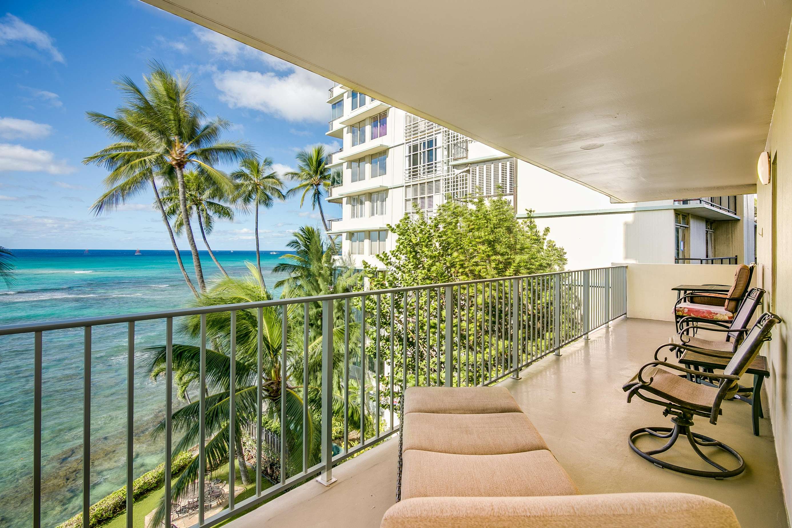 This Large Oceanfront 2 Bedroom Suite is a vacation rental located on the 5th floor of the Diamond Head Beach Hotel in Waikiki. Enjoy stunning views of Waikiki's prestigious Gold Coast, Diamond Head, and the Pacific Ocean. Situated across from lush Kapiolani Park and within close proximity to the Waikiki Aquarium, the Outrigger Canoe Club, the Honolulu Zoo, and Waikiki, this is an amazing treasure in a prime location.