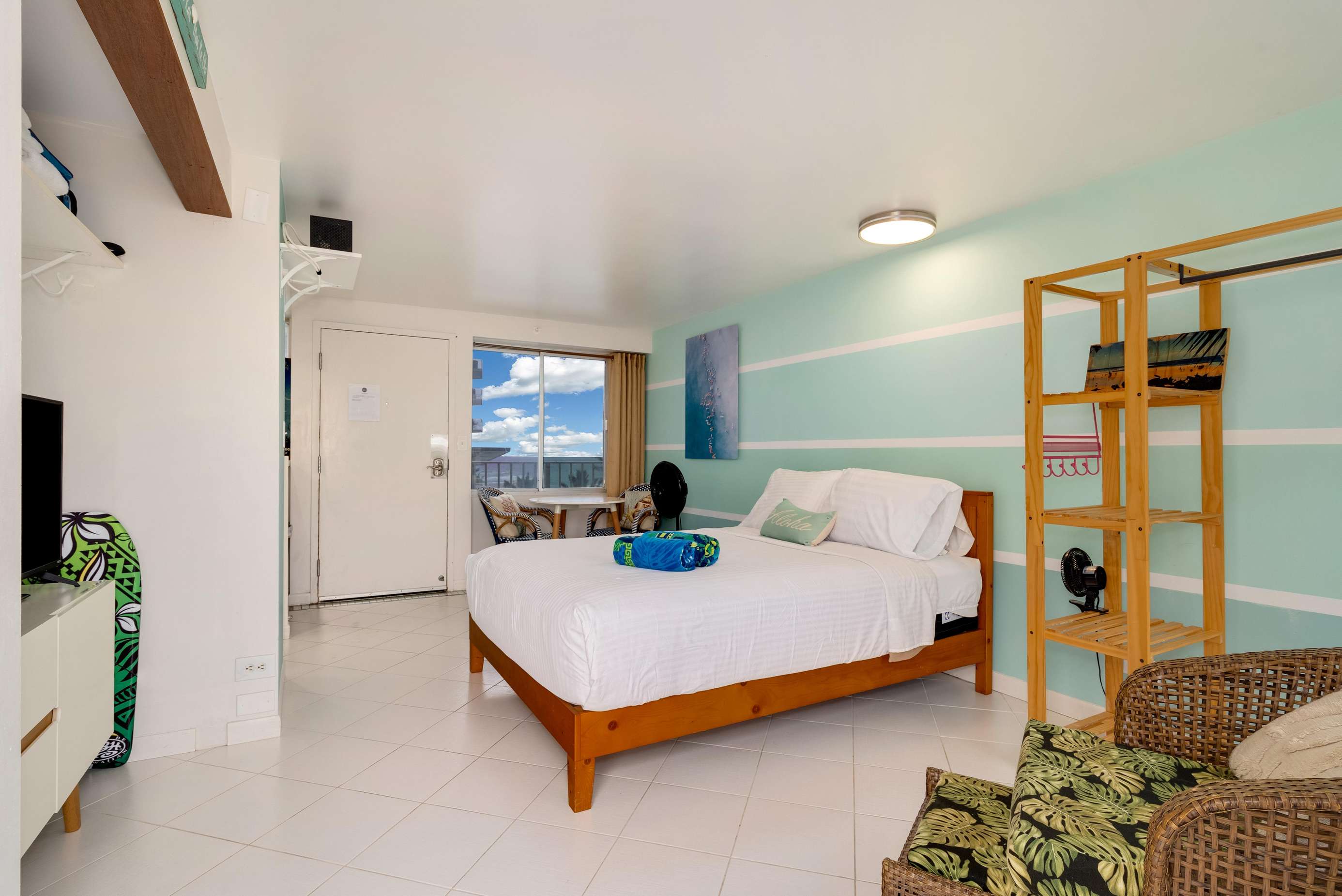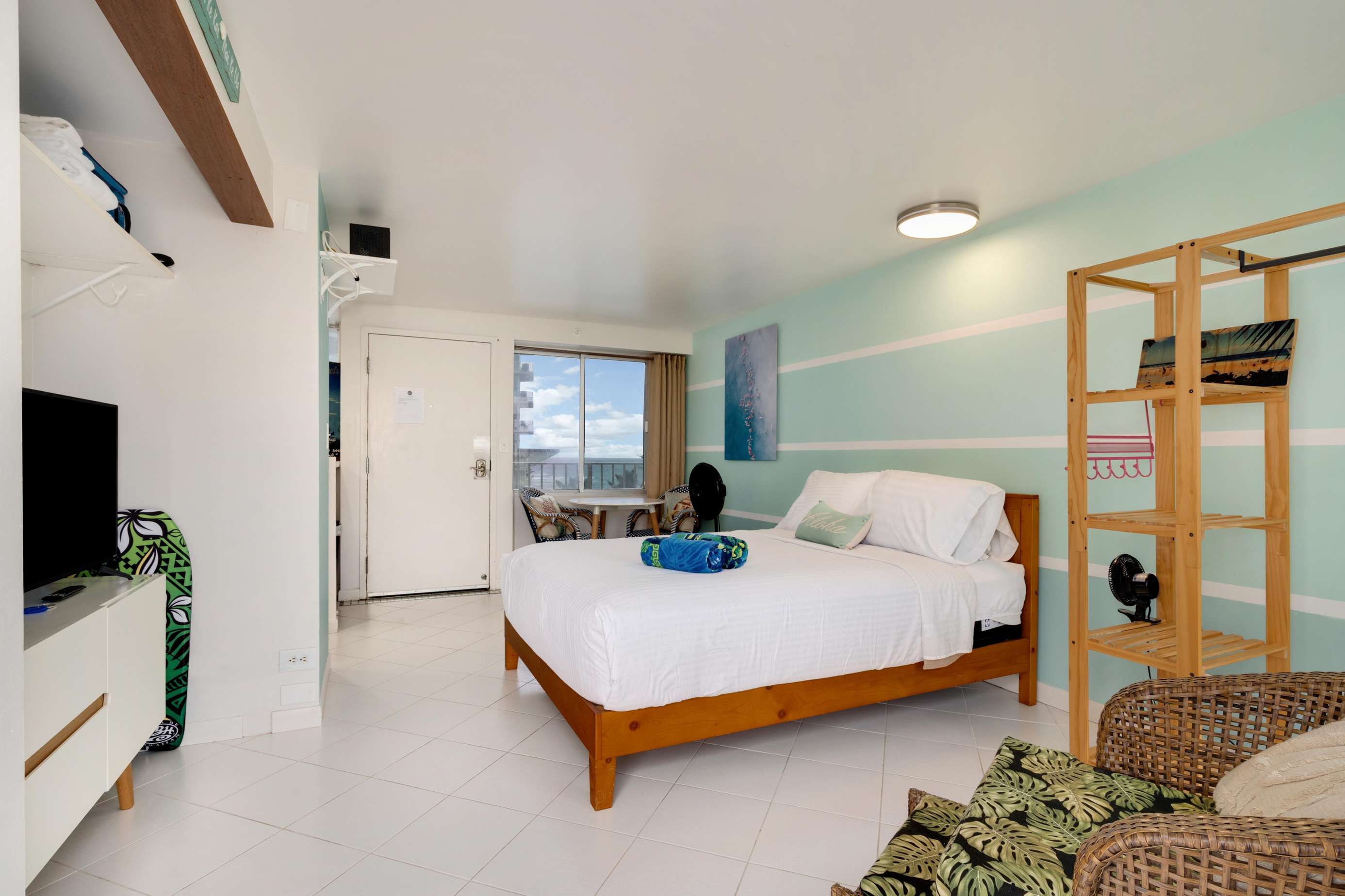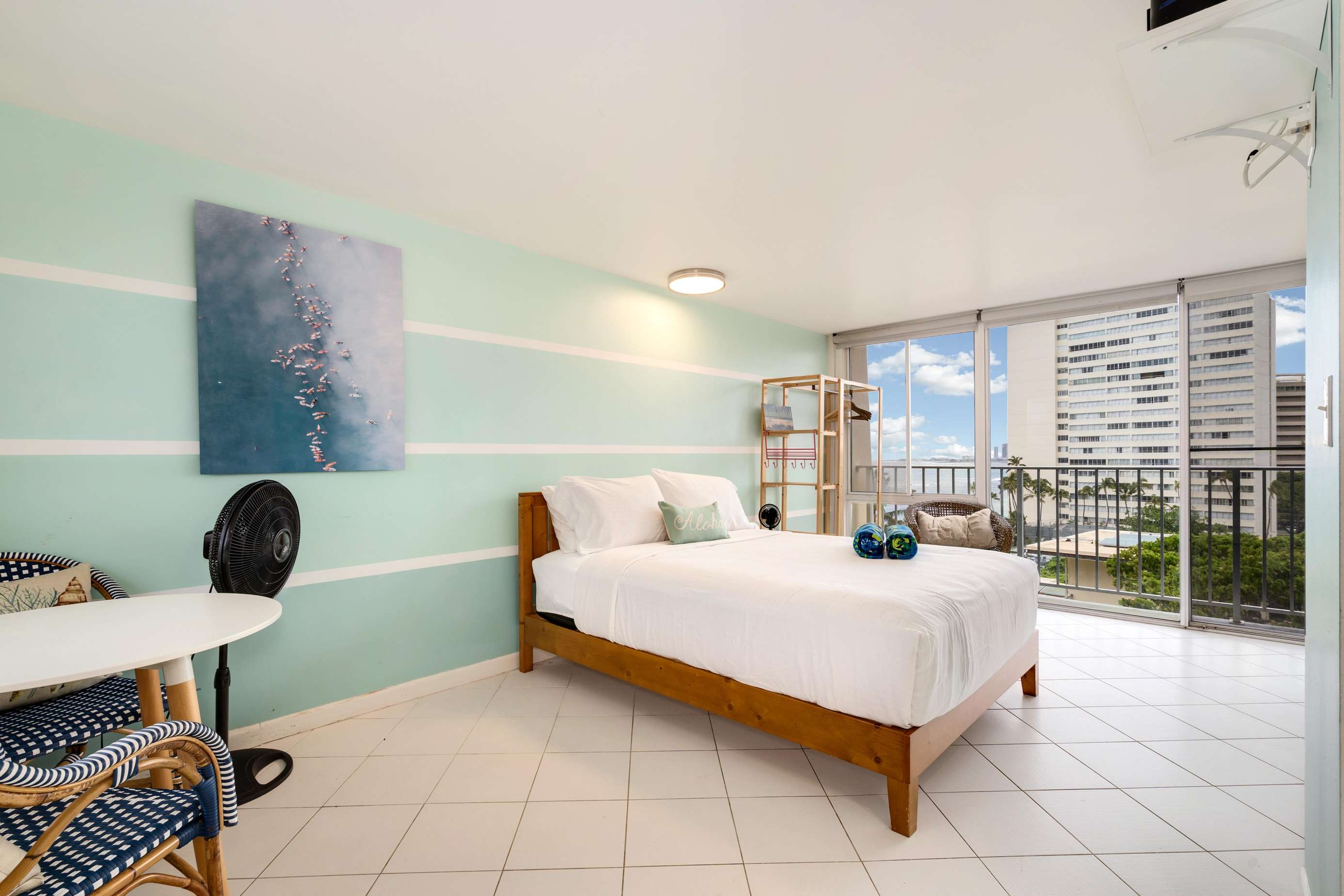 Great scenic views from large slider windows plus you can enjoy the ocean trade winds from bed or private lanai while you relax your cares away!