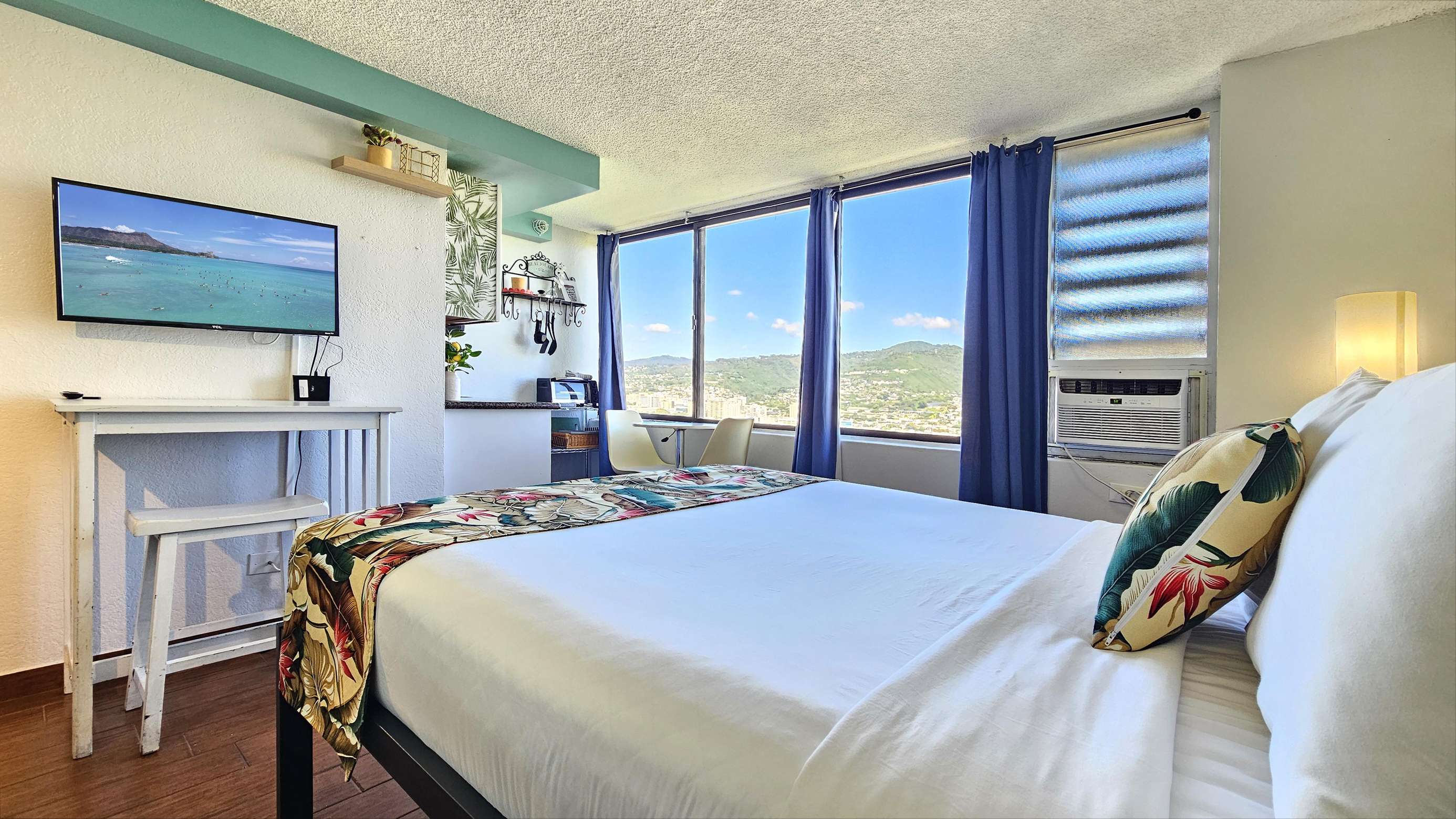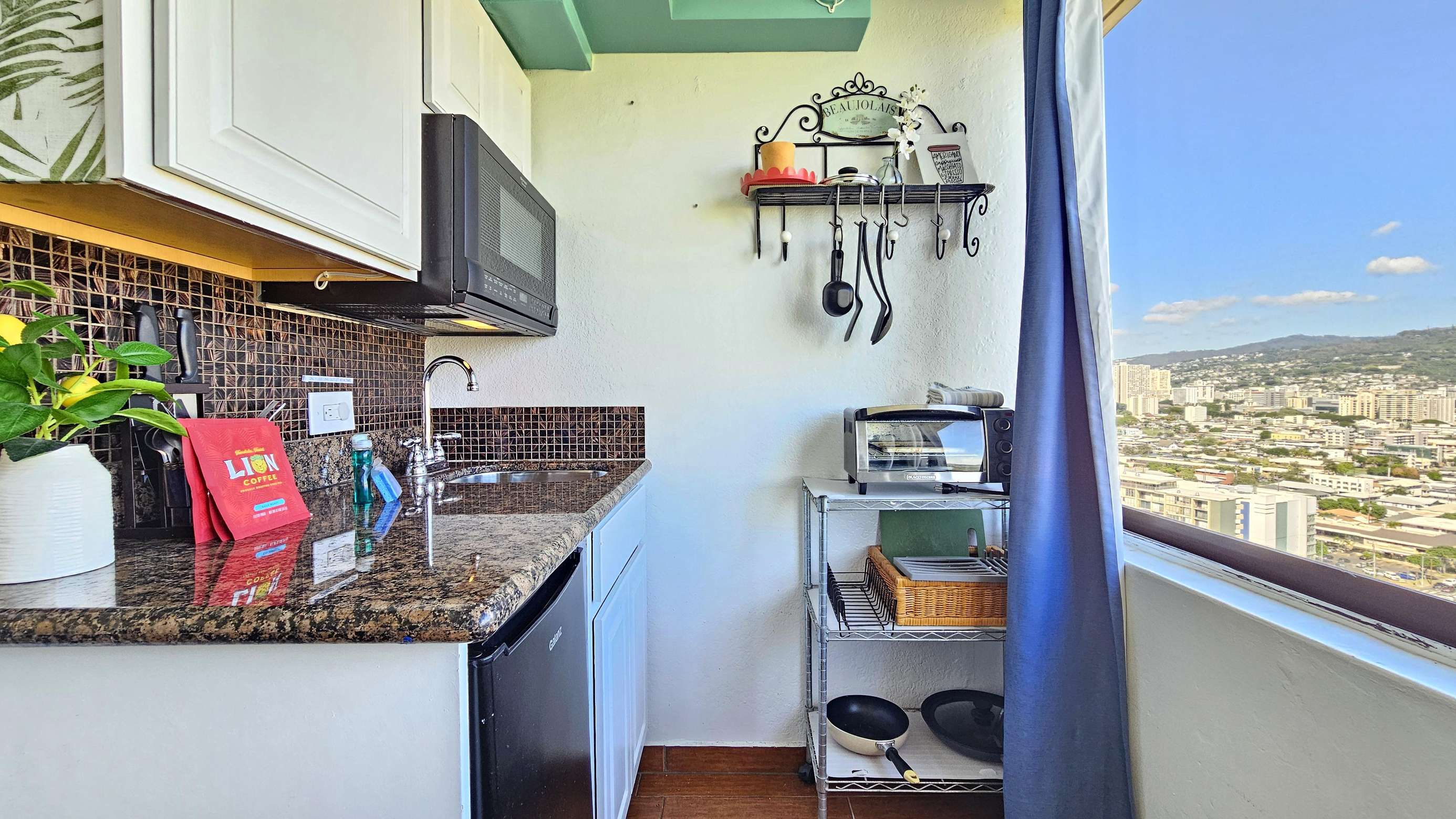 This cozy studio, 1-bath rental in vibrant Honolulu offers 223 sq ft of thoughtfully designed living space, w/ double bed and futon, perfect for up to three guests. Enjoy modern comforts including air conditioning, high-speed WiFi, and a fully equipped kitchenette with a coffee maker, microwave, toaster, and refrigerator. The unit features fresh linens, towels, and essential amenities like a hair dryer and iron. Step outside to relax by the communal pool or stay active in the on-site fitness room. Located at 444 Niu St, you’re just minutes from Waikiki Beach, world-class dining, and shopping. With elevator access and convenient check-in at 4 PM, this rental blends comfort and prime location for an unforgettable Hawaiian getaway.