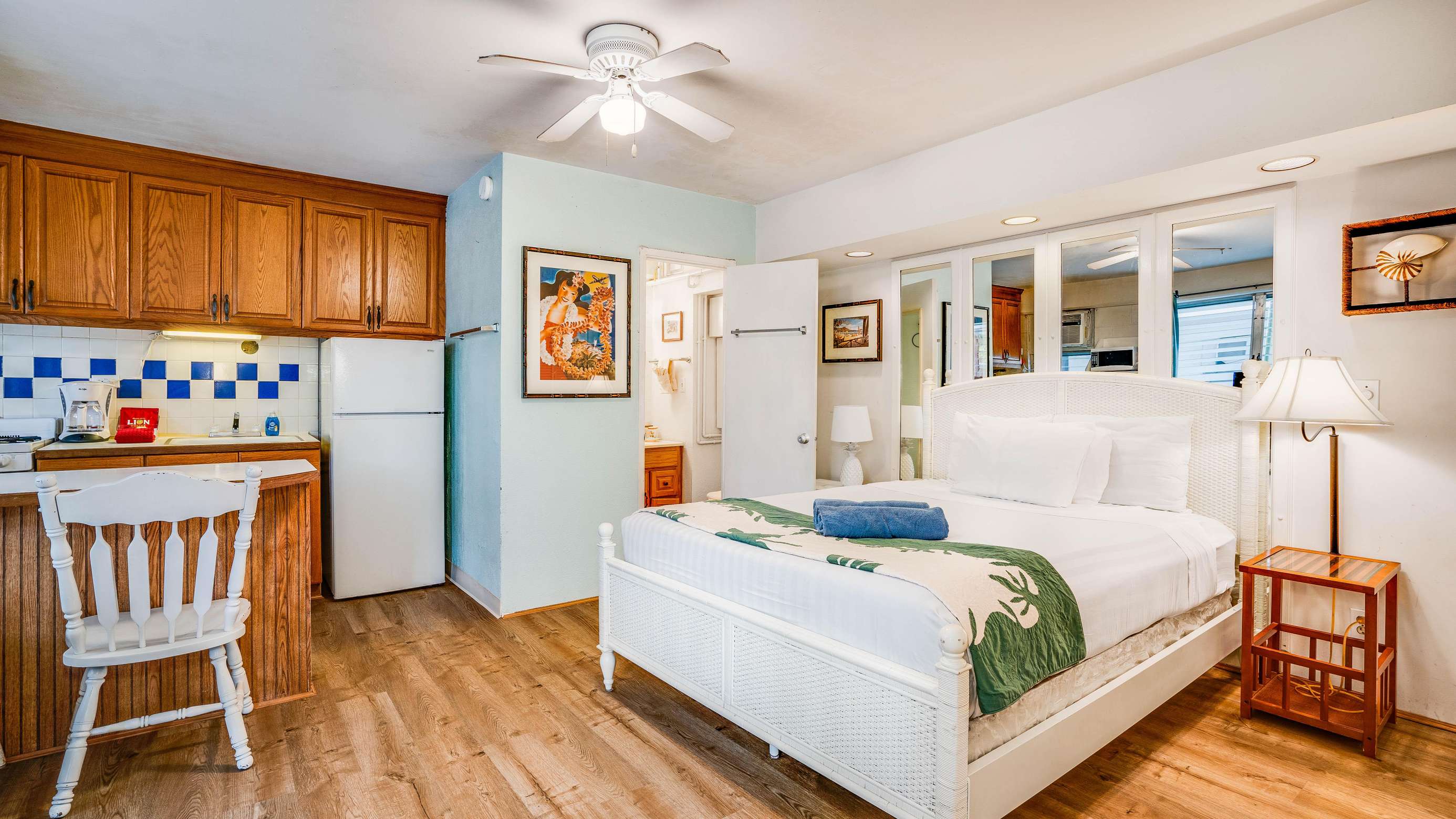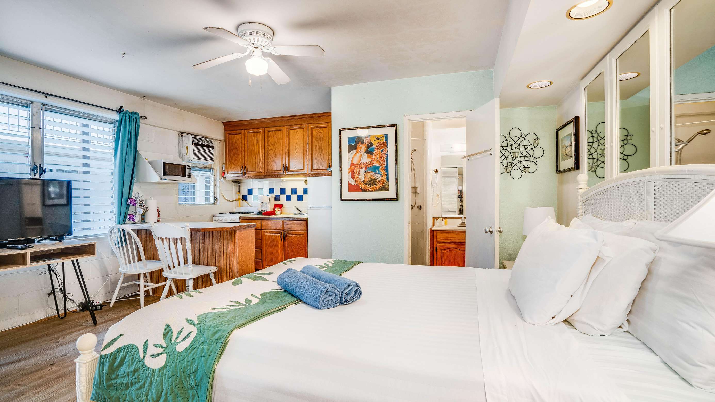 Located in the center of Waikiki this newly remodeled, simple queen bed studio with full kitchen is just 4 mins walk to Waikiki Beach & delivers great value for money. Plus has a great Pool and sundeck.