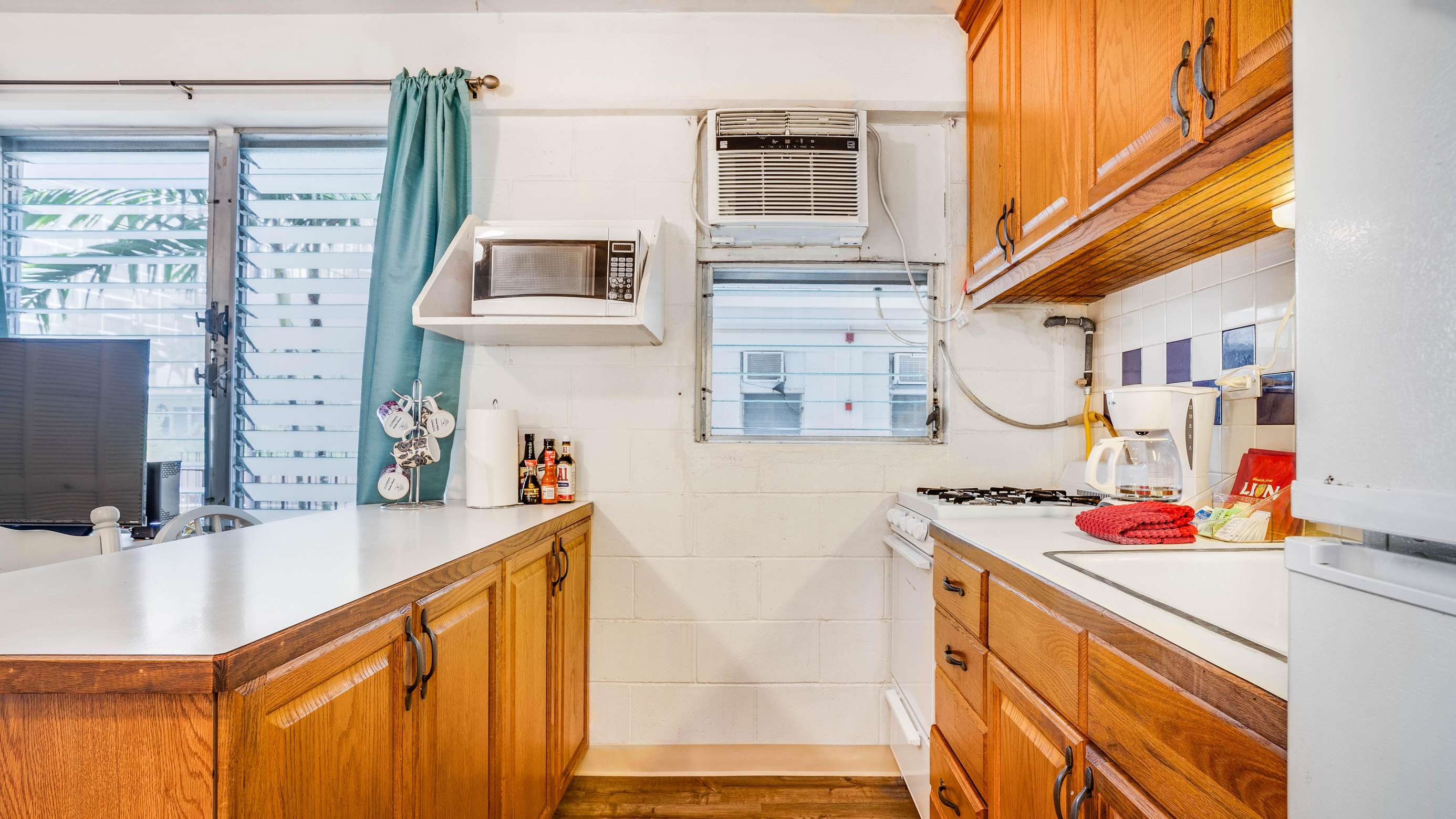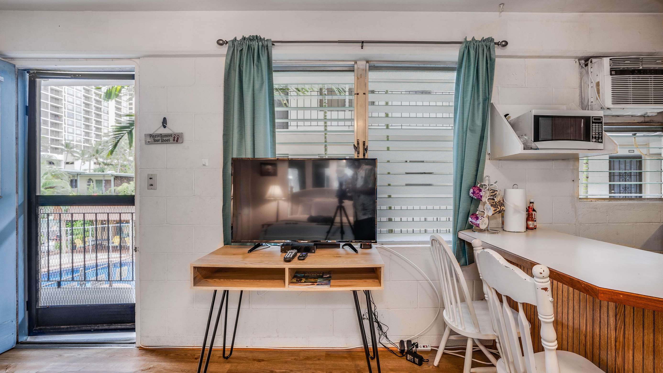 1 block from Waikiki beach, fully stocked amenities and kitchenware, prime location close to Kapiolani Park, Honolulu Zoo, and major bus lines.