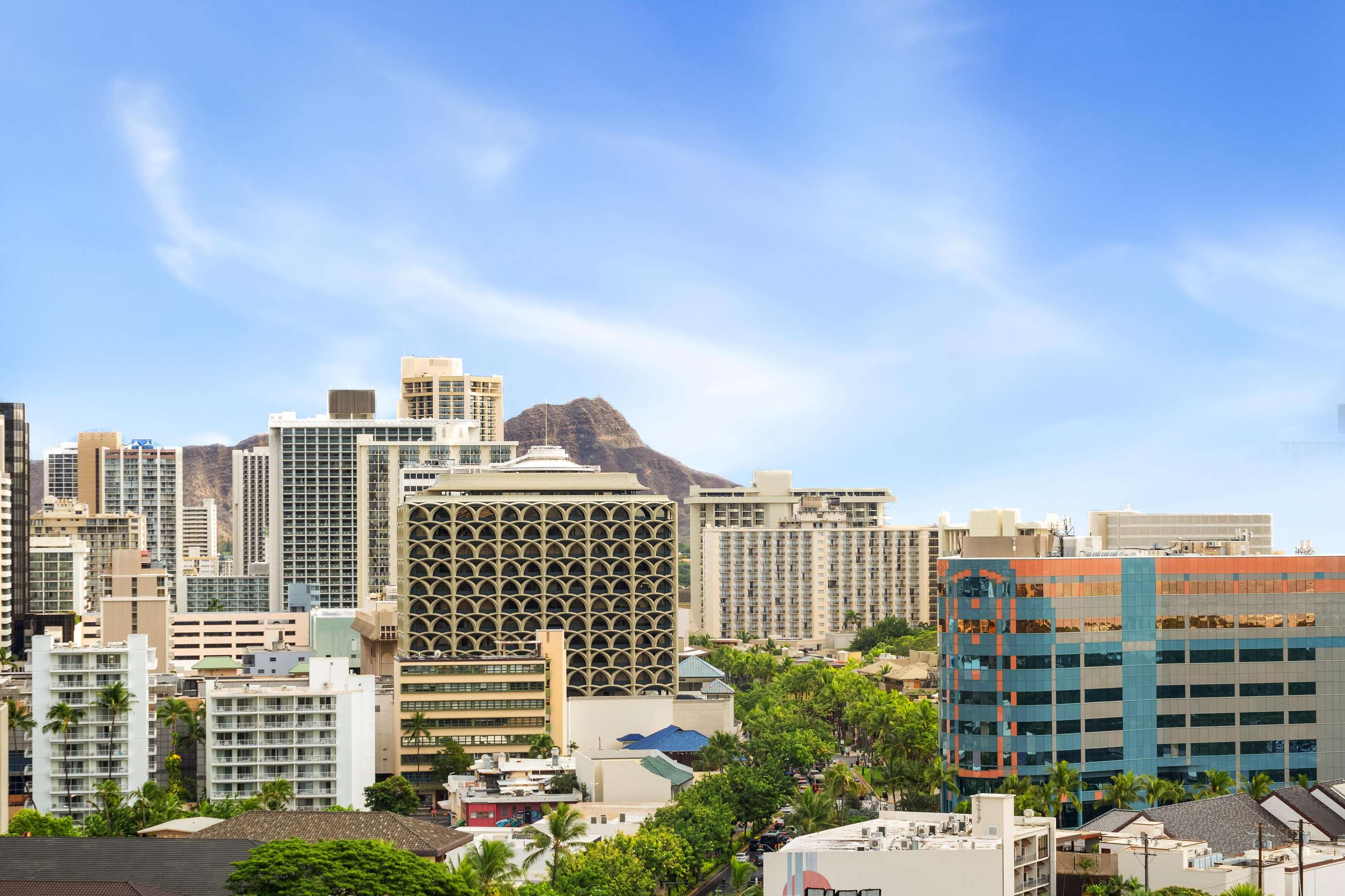 The Luana Waikiki Hotel is one of the premier hotels buildings in the Fort DeRussy area. This hotel was built in 2014 and was designed by the architectural firm Gensler. The hotel features modern, Hawaiian-inspired décor and offers guests a variety of amenities, including a rooftop pool, fitness center.