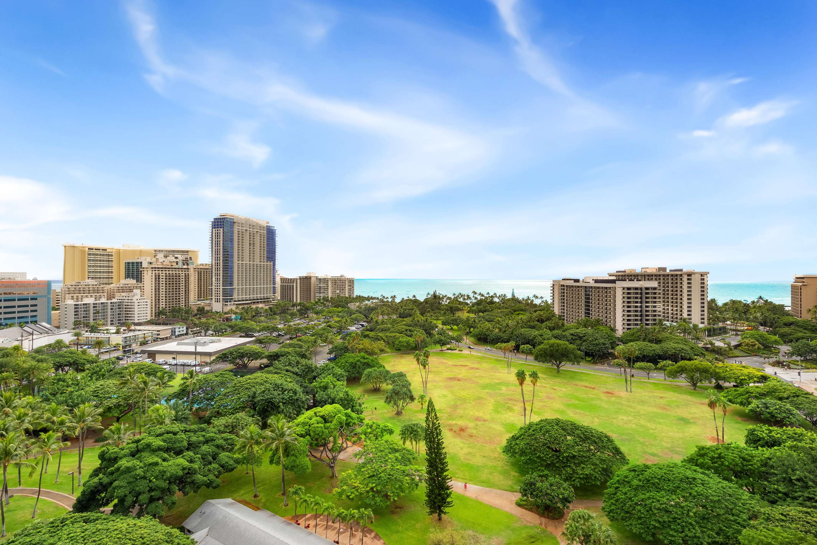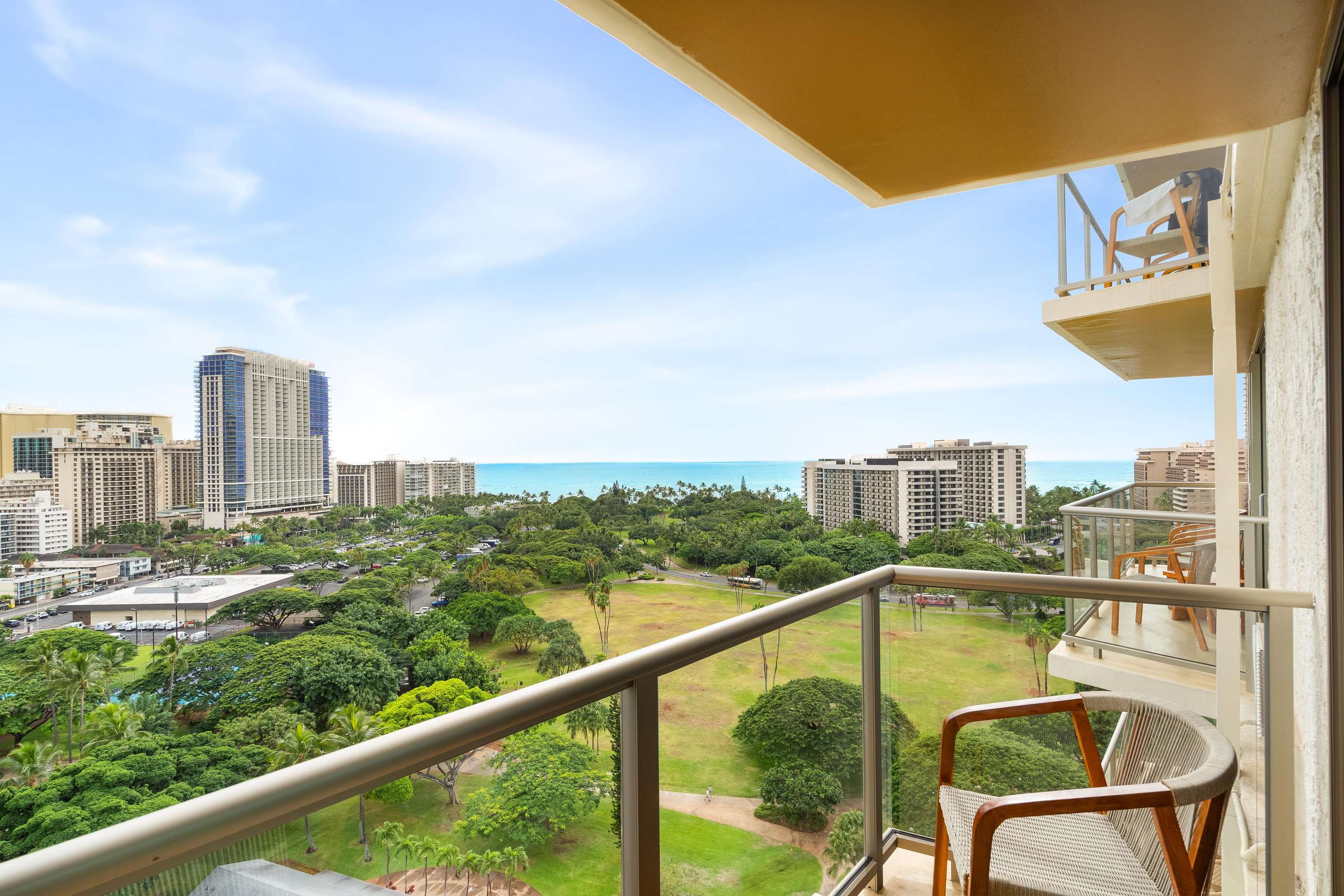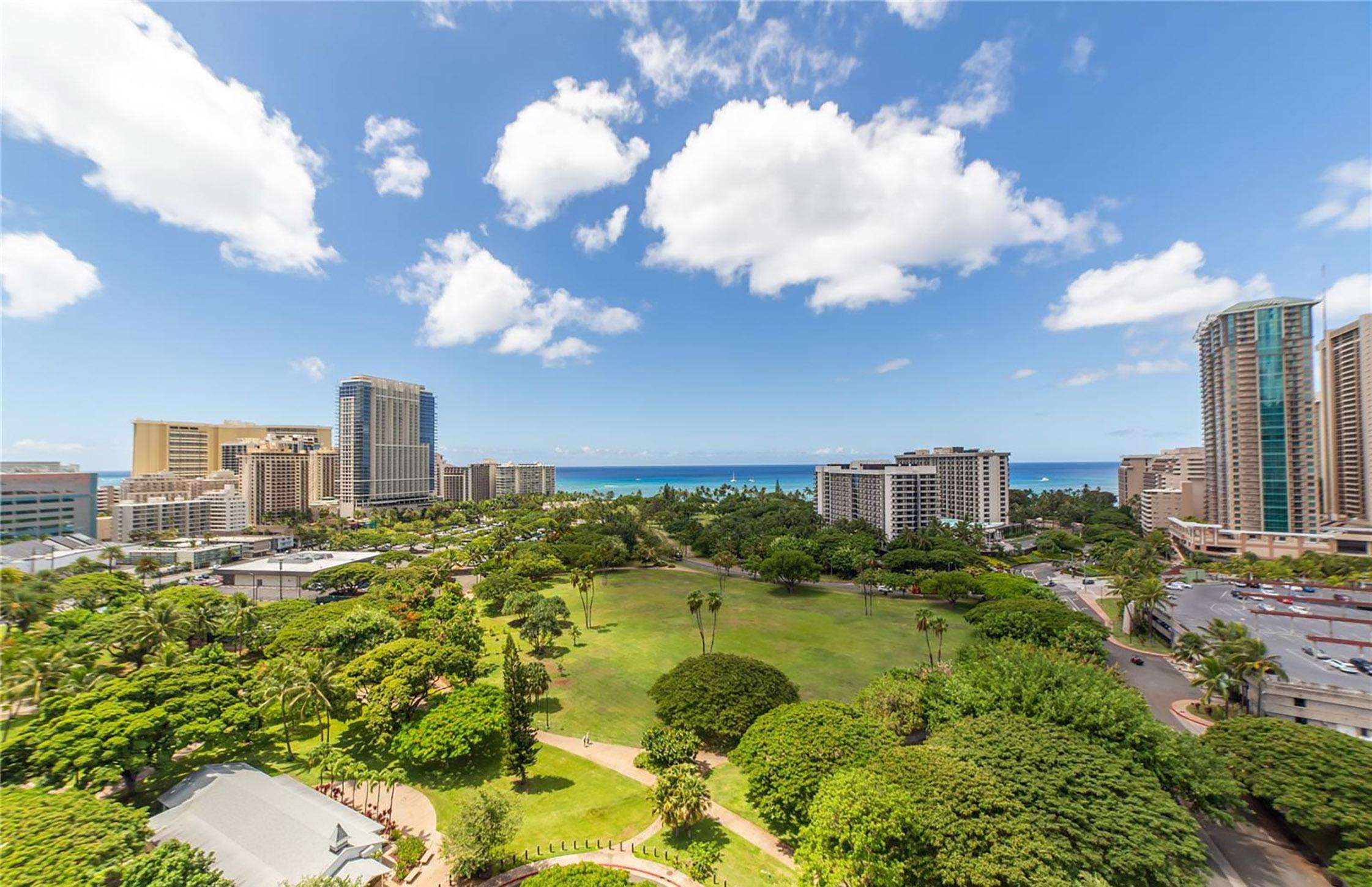 The amazing unobstructed ocean, park and city views from the windows and large lanai in this condo on the 15th floor make this an exceptional find in Waikiki! The condo sleeps up to 4 guests comfortably.
