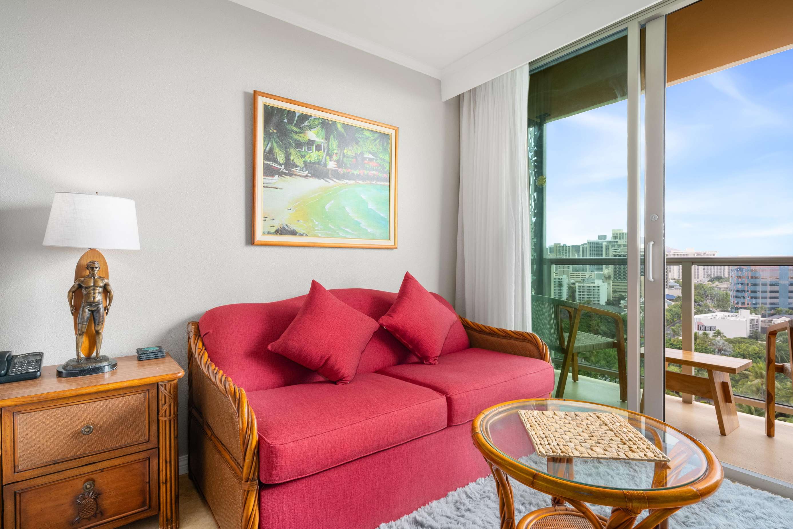 Comfortable modern living area with new Hawaiian style furniture