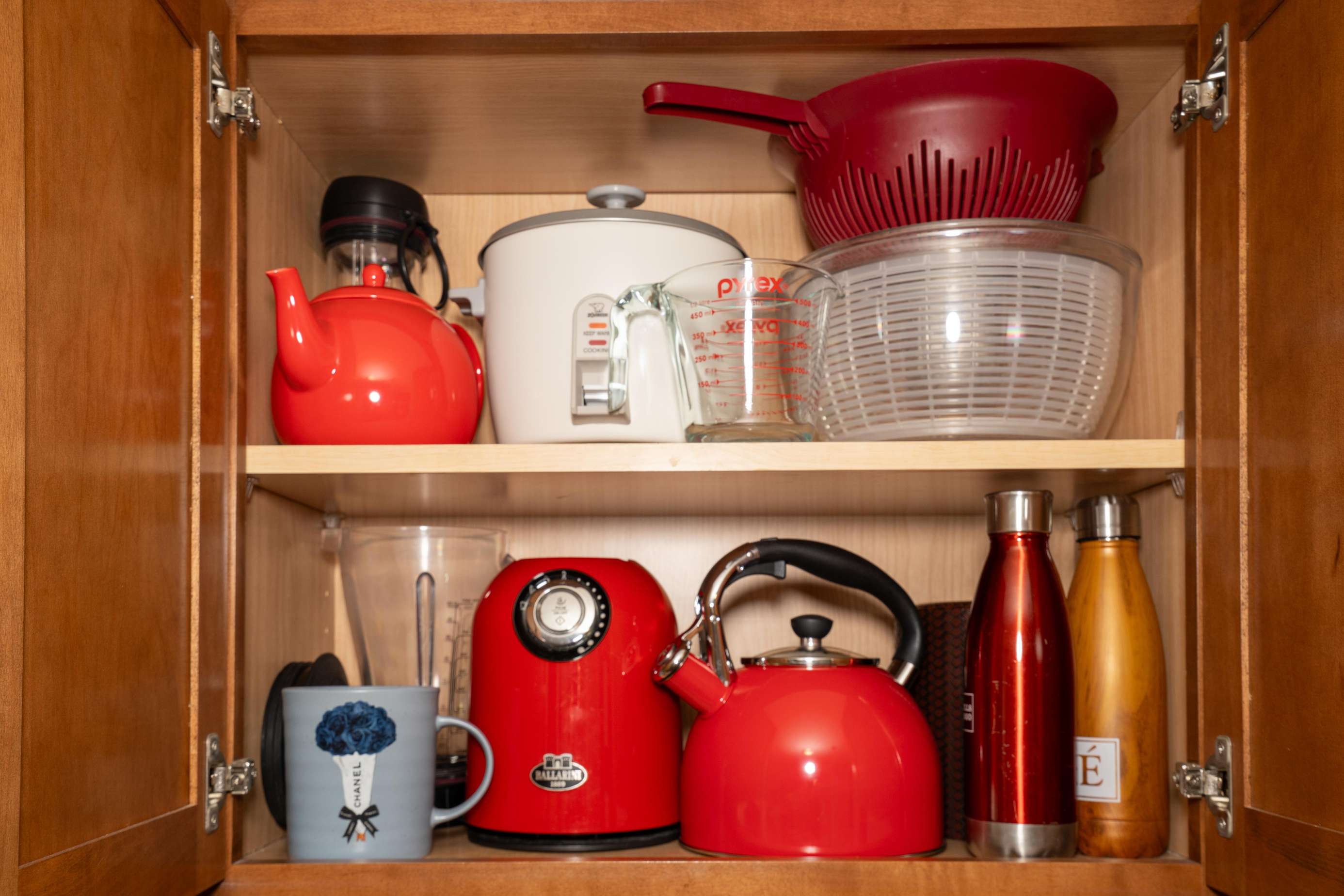 Coffee maker, electric hot water kettle, blender, toaster, rice cooker, dishes, cookware