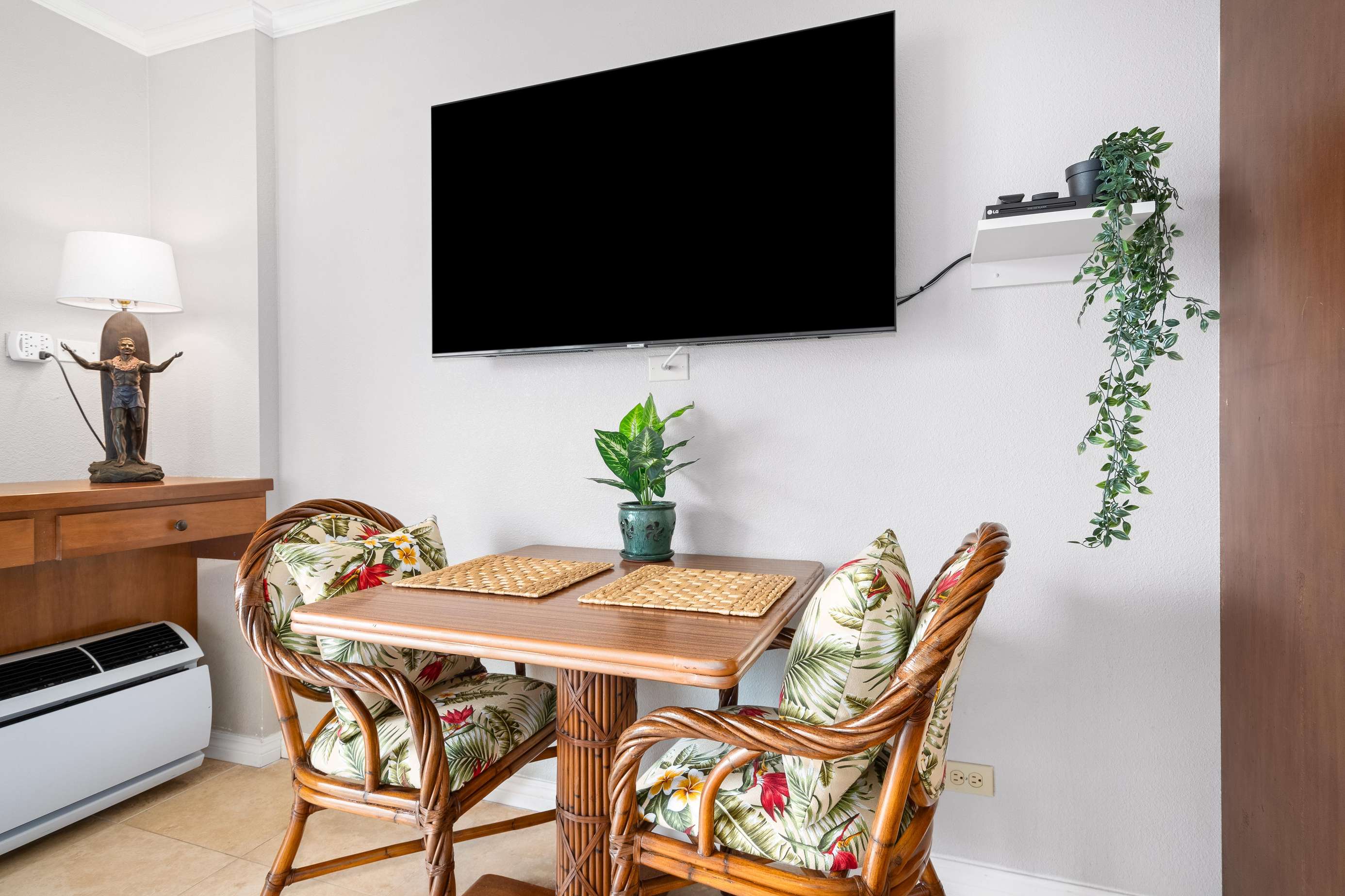 A large wall mounted Smart TV means tuning into your own Netflix or other streaming service is a breeze.