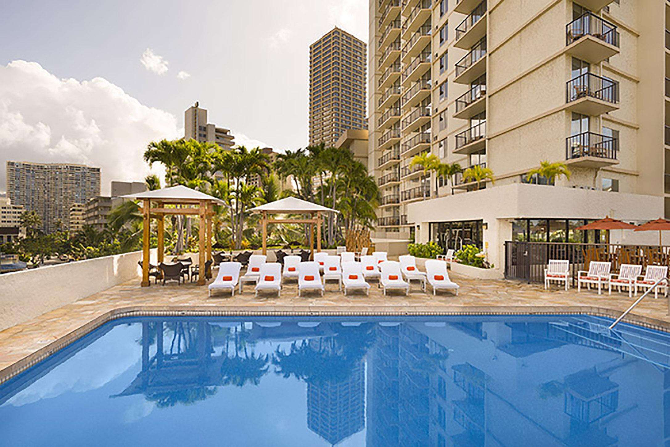 The Luana Waikiki is a stylish boutique hotel in Honolulu, perfectly situated along Kalakaua Avenue, just a short stroll from Waikiki Beach. Overlooking Fort DeRussy Park, the property offers a serene escape with lush greenery and ocean views, while being close to the vibrant shopping, dining, and entertainment options of Waikiki. Guests can enjoy the modern Hawaiian decor, comfortable accommodations a variety of amenities, including a relaxing pool deck and fitness center. With its blend of convenience, comfort, and tropical charm, the Luana Waikiki is an ideal destination for both leisure and business travelers seeking a memorable Hawaiian experience.