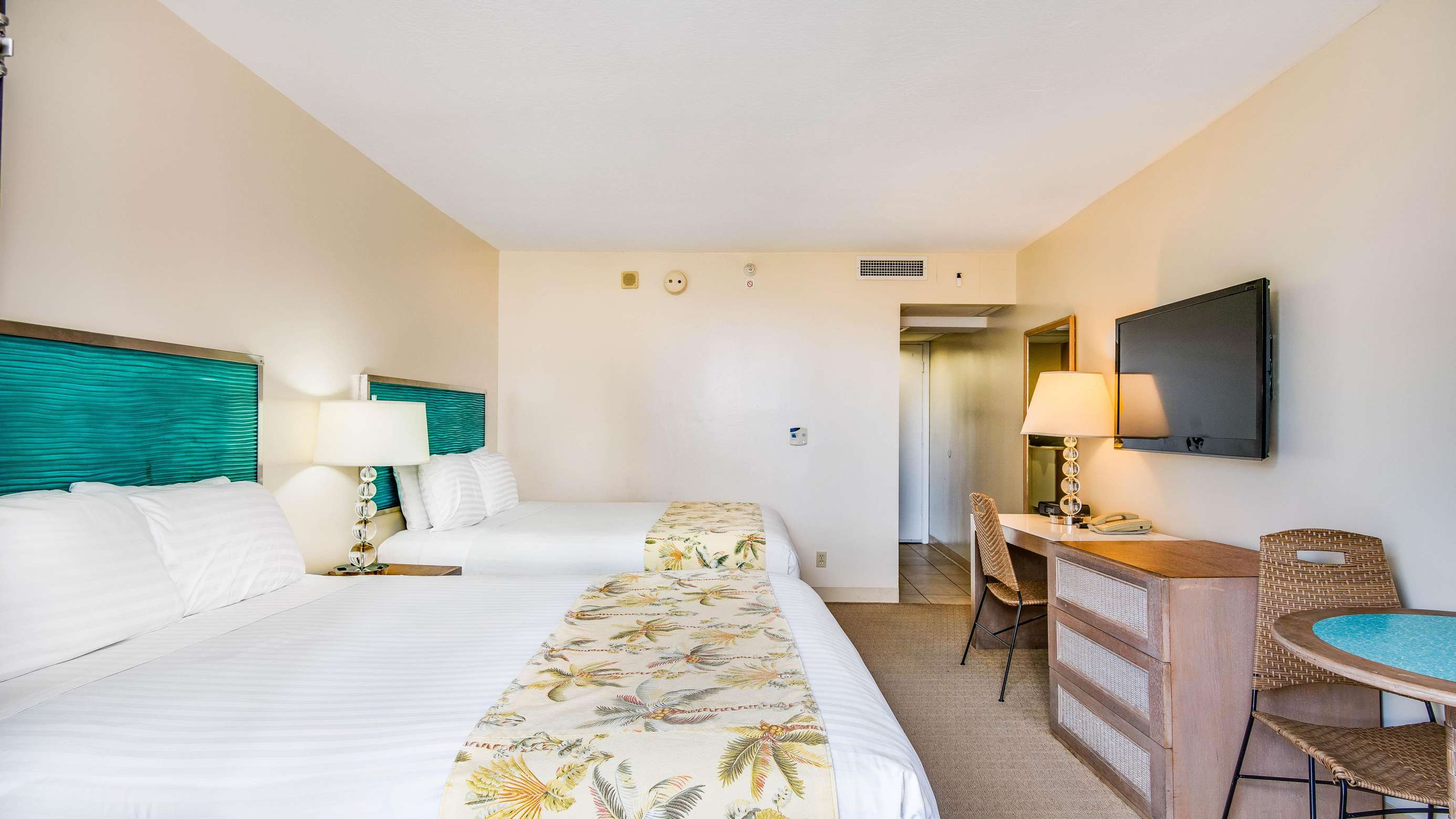 This unit comfortably accommodates four persons with all new furnishings. Two queen beds, cable TV, FREE WIFI, air conditioner, private balcony, kitchenette with microwave, coffee maker, mini-fridge, hair dryer, iron and board, full bathroom. All linens with bath and beach towels are included as well as bath amenities.