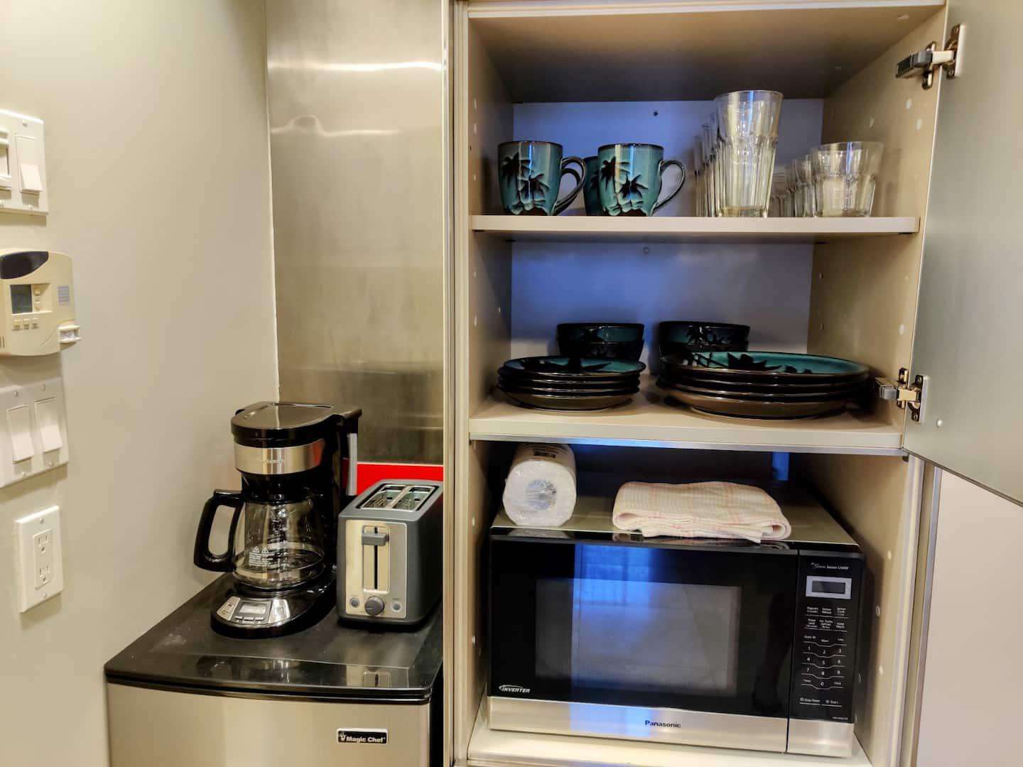 This unit comfortably accommodates four guests with all new furnishings. Two queen beds, cable TV, FREE WIFI, air conditioner, kitchenette with microwave, coffee maker, mini-fridge, hair dryer, iron and board, full bathroom. All linens with bath and beach towels are included as well as bath amenities.