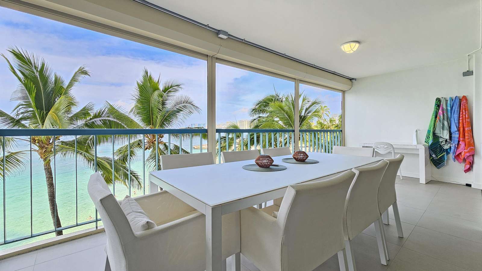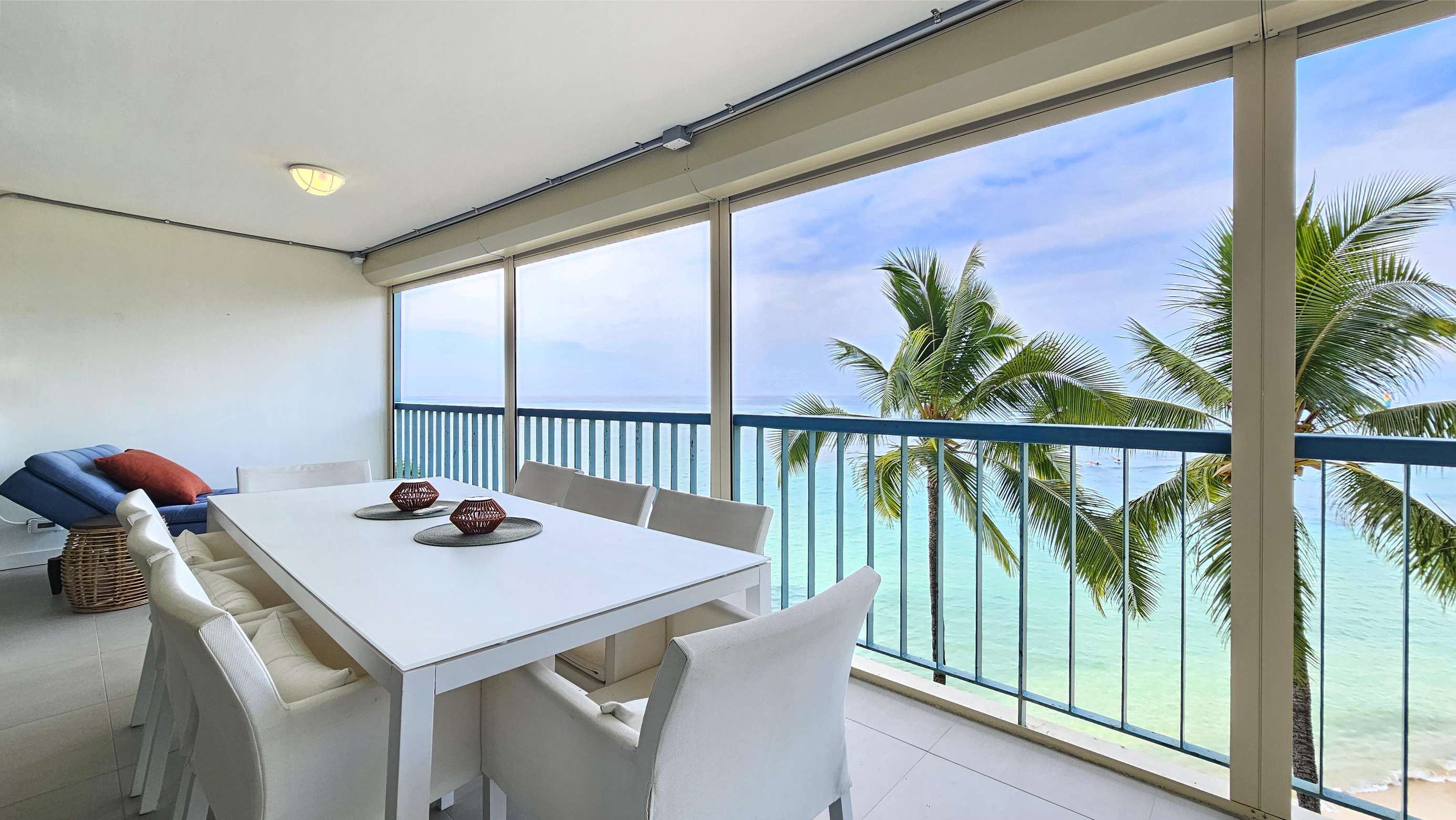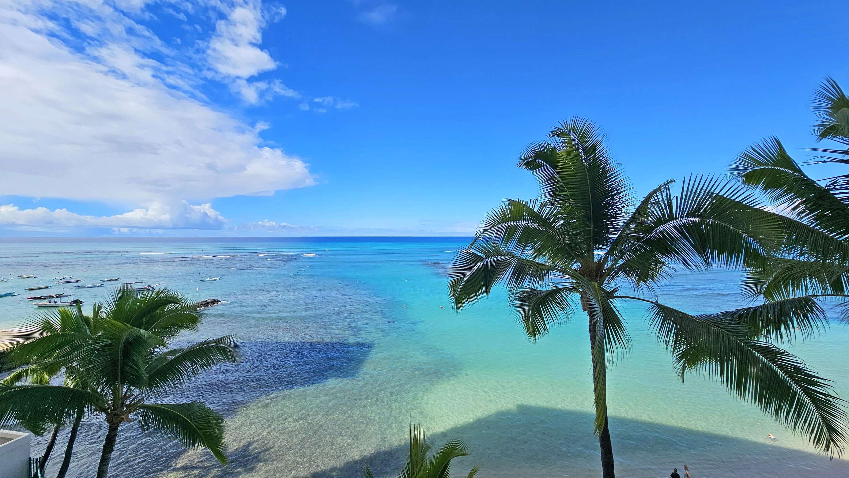 Stunning, Bright and Breezy 3rd floor Sans Souci One Bedroom Apartment with covered private lanai overlooking Kaimana beach, Honolulu Bay & aqua marine Pacific ocean.