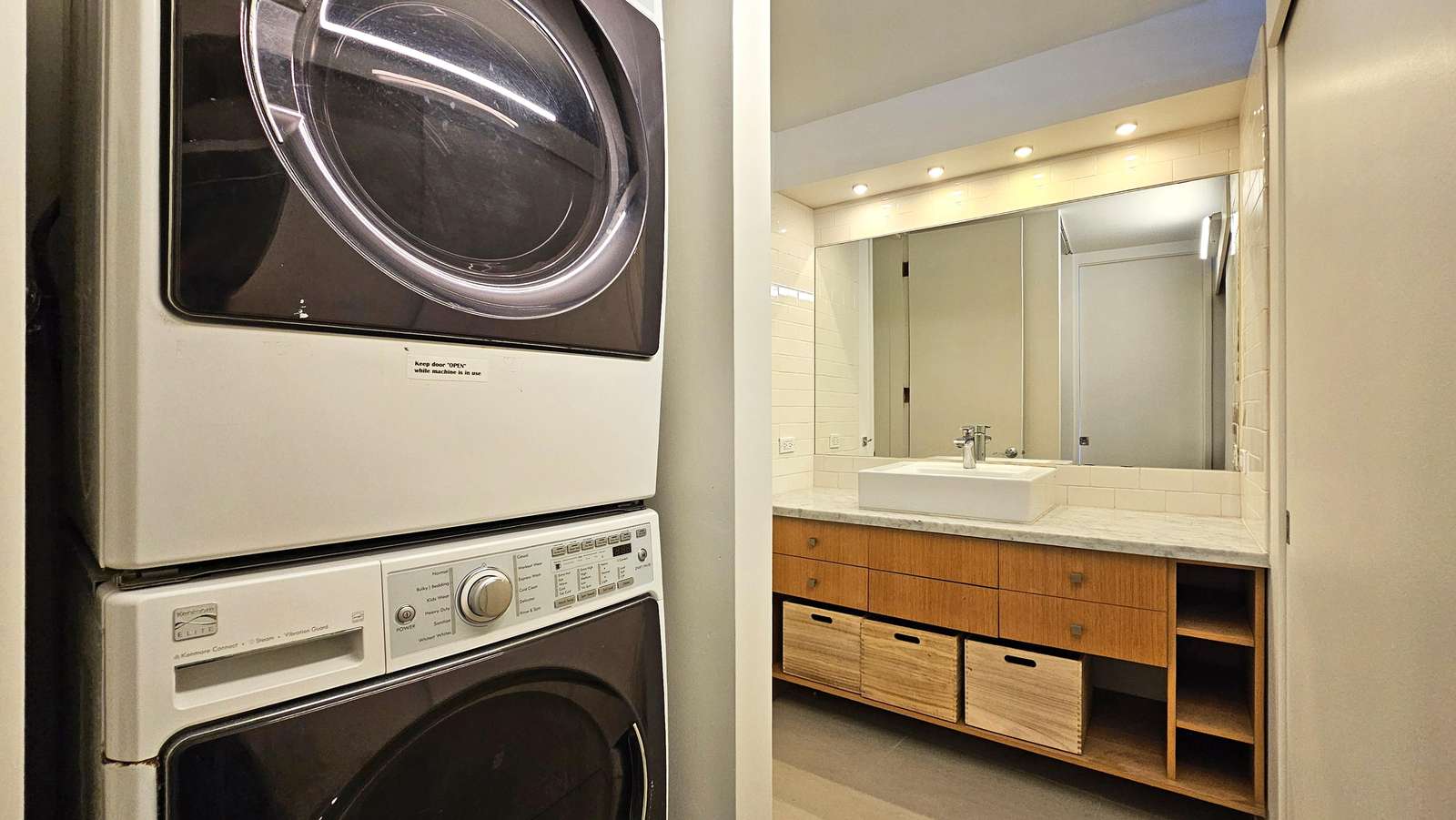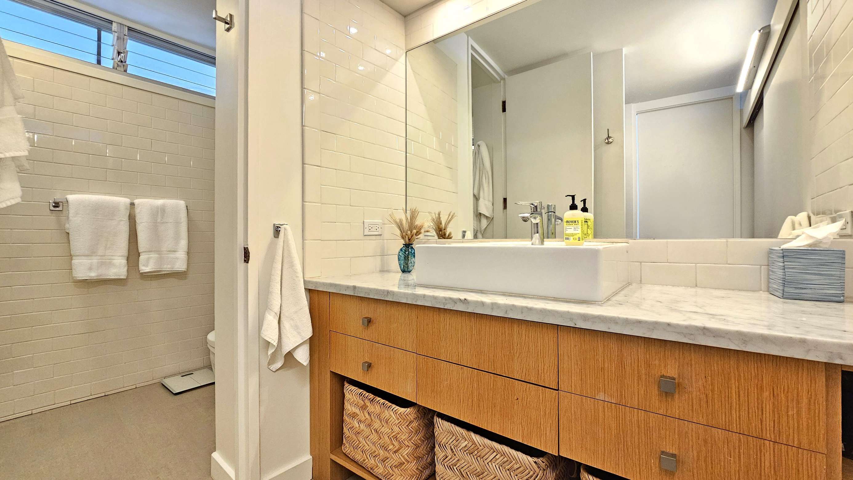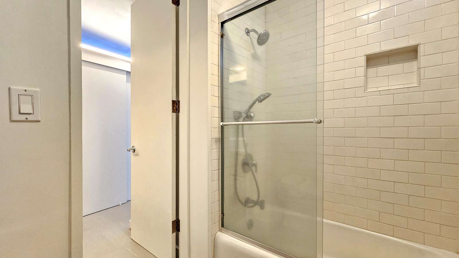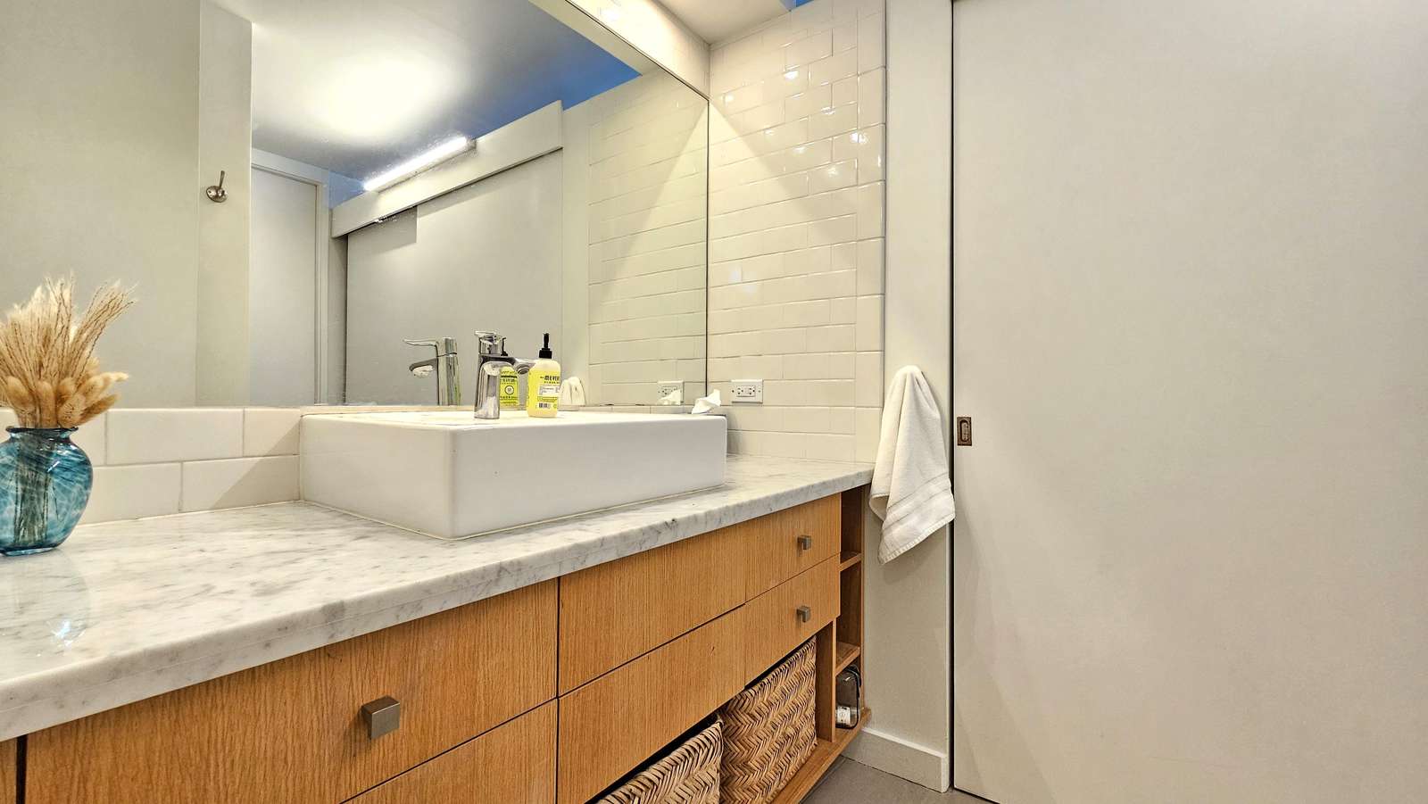 Full Bathroom with Shower/tub combination and spacious well lit modern vanity