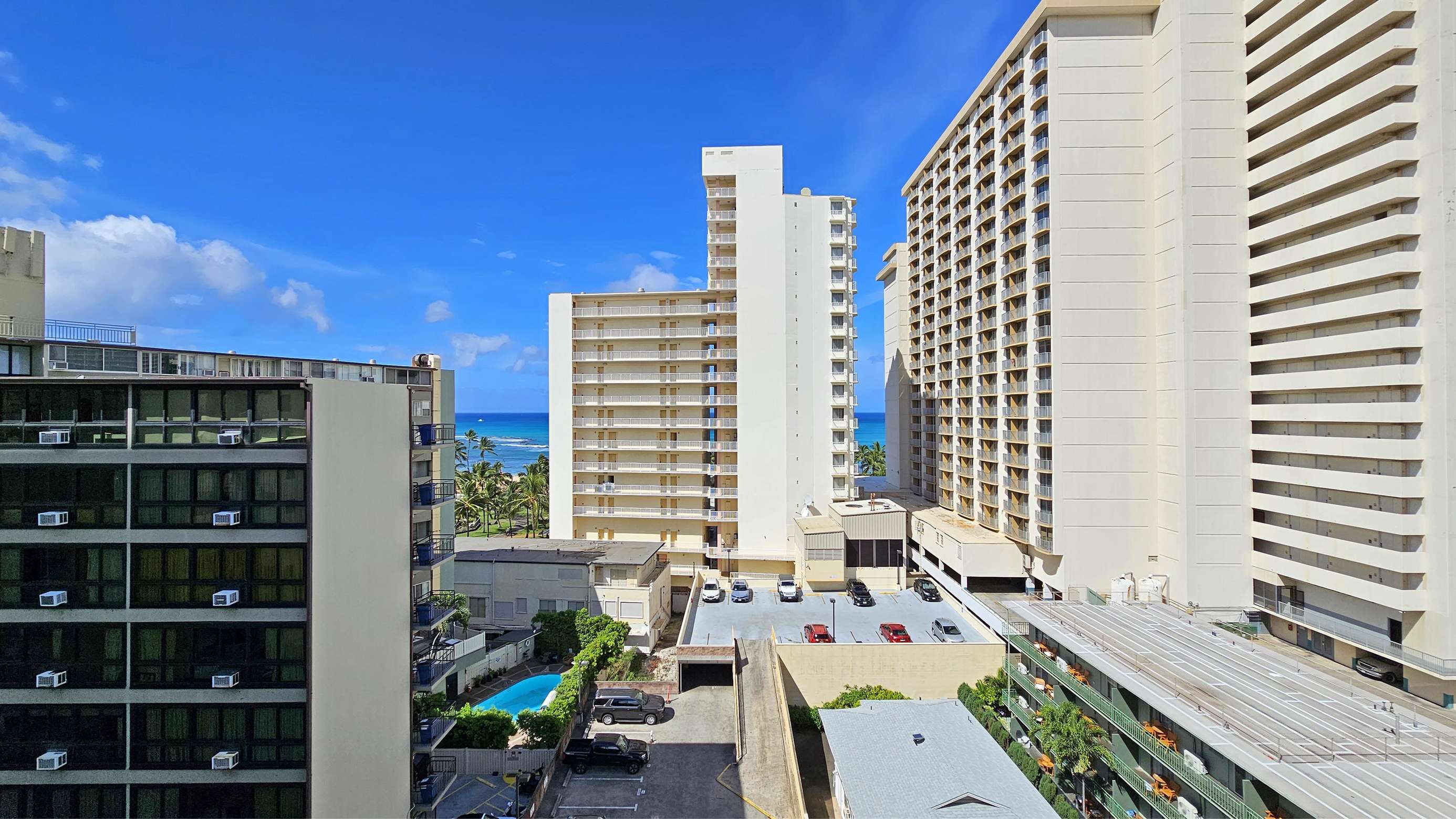 This great 10th floor bachelor pad—a king bed studio with a kitchenette—is the perfect home for an annual Honolulu vacation. Parking included!