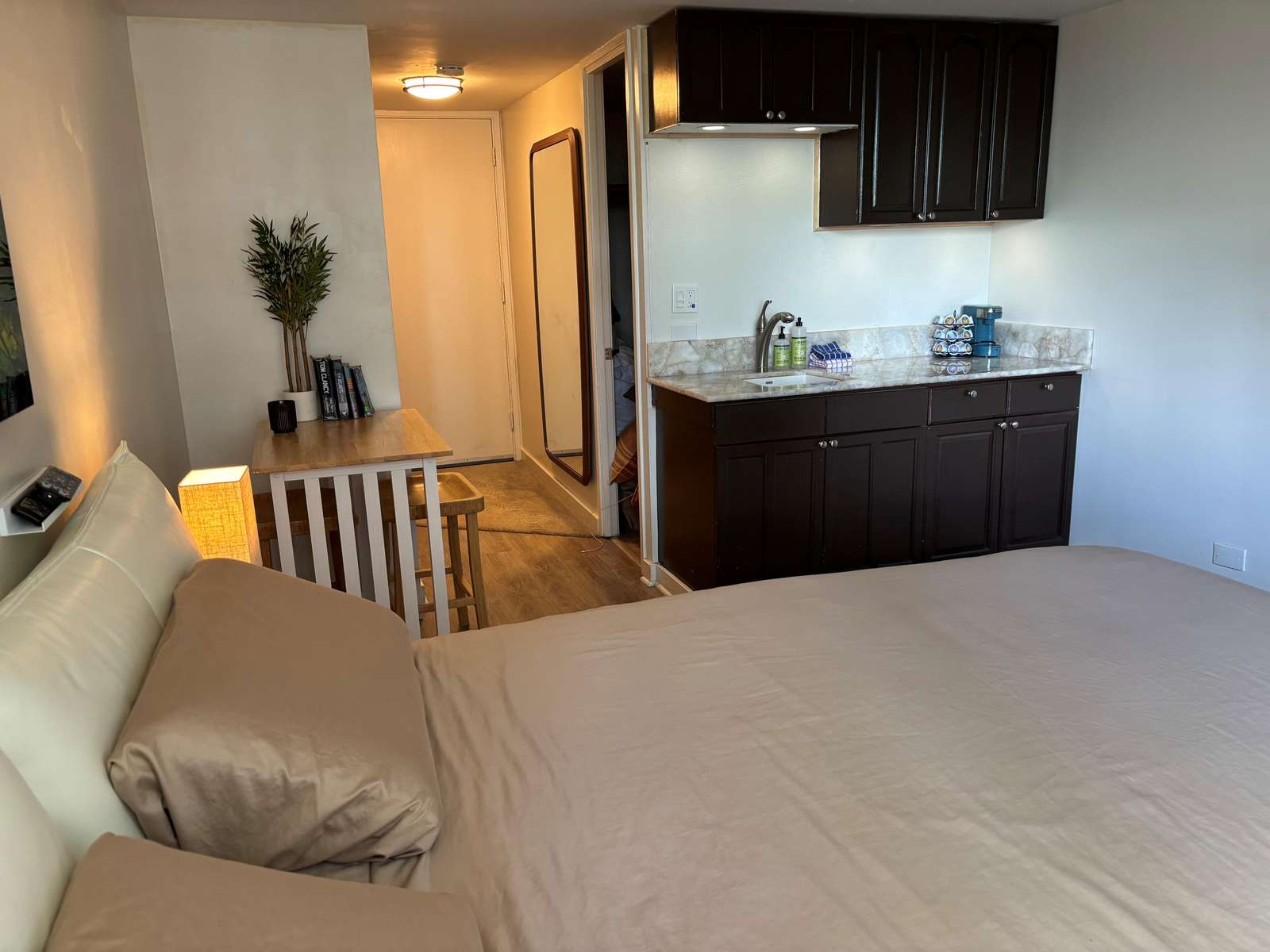 Enjoy a king bed, spacious lounge, large HD TV, and free WiFi after a day at the beach. Free parking saves you up to $50 daily. The property sleeps two in comfort. The bright bathroom has a shower/tub combo and bidet. Beach towels, chairs, and coin-operated laundry are available. Secure elevator access to the 10th floor. Book on Airbnb: https://www.airbnb.com/rooms/929152995465700740 or VRBO: https://www.vrbo.com/3494569?dateless=true. Owners Tax ID: TA-175-217-6640-01. Rental address: 2572 Lemon Rd #1005. City Registration: TBA.