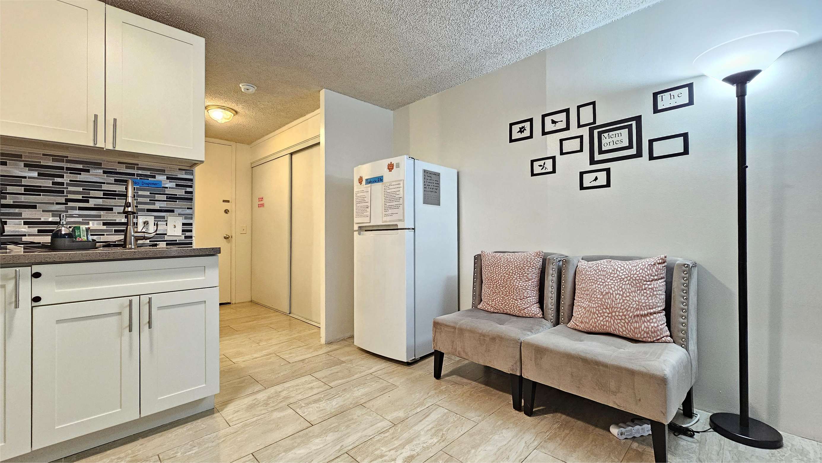 The kitchen is simple, refrigerator, microwave, mini ovens, electric kettles.