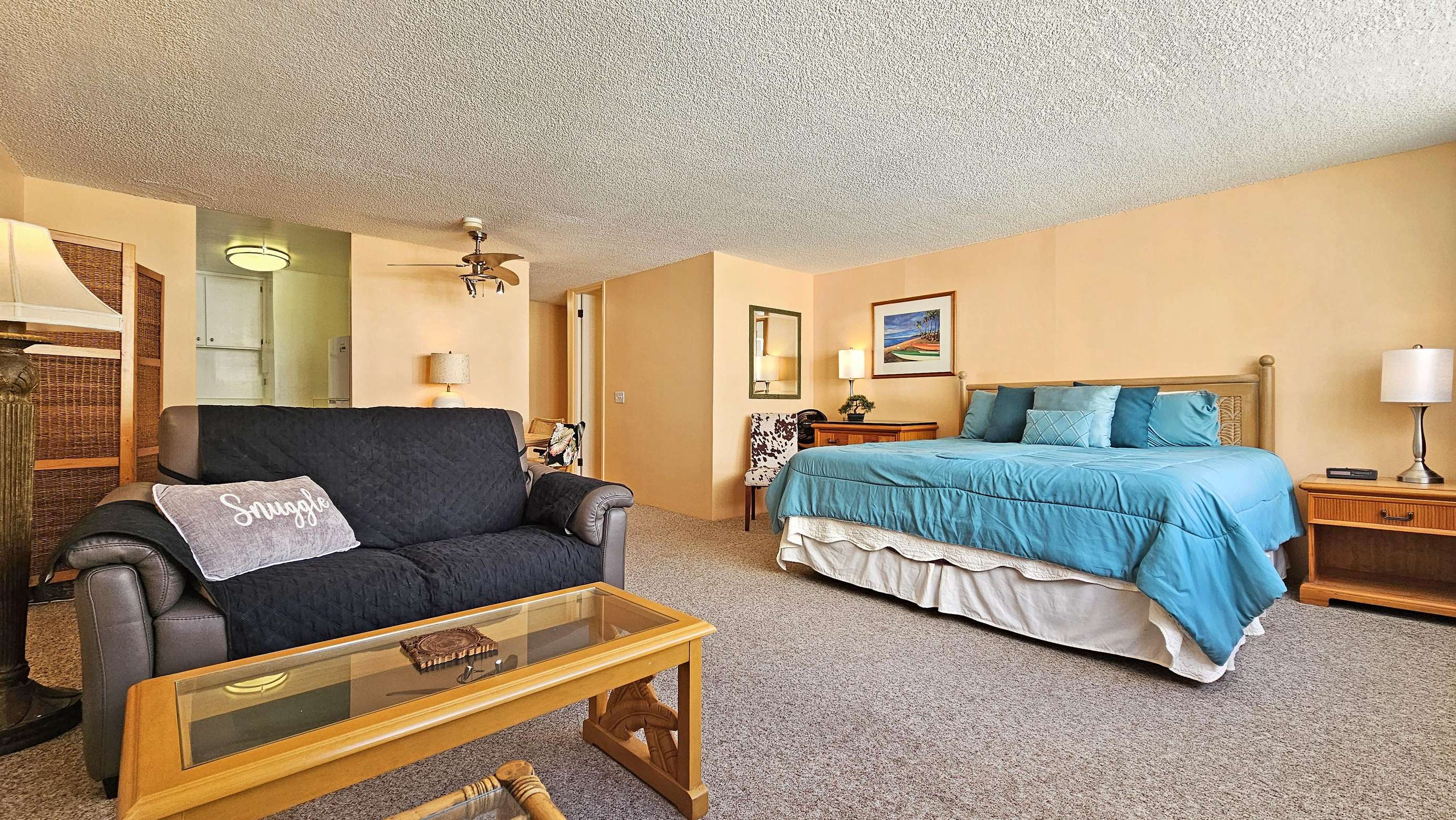 Our 1 bedroom apartment offers a Queen bed in the bedroom. Unit sleeps 2 adults total. Bathroom with Shower/Tub combo.