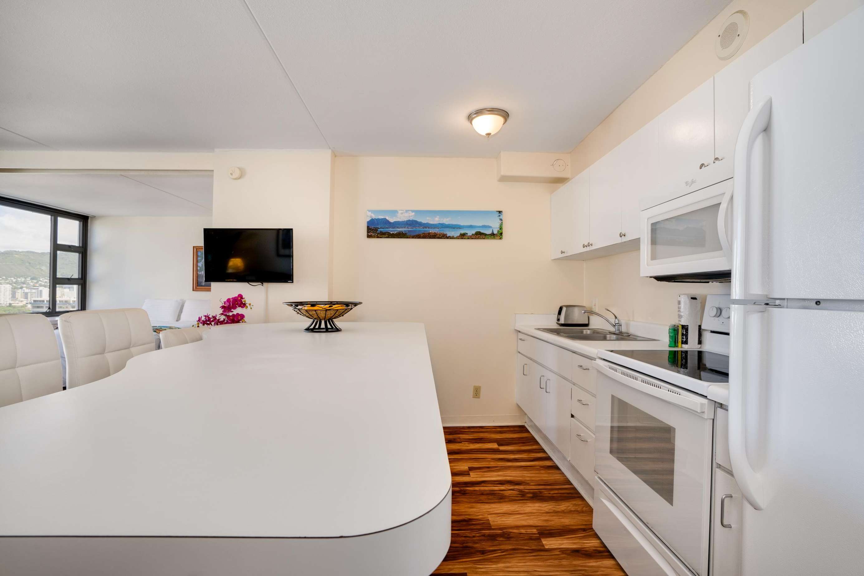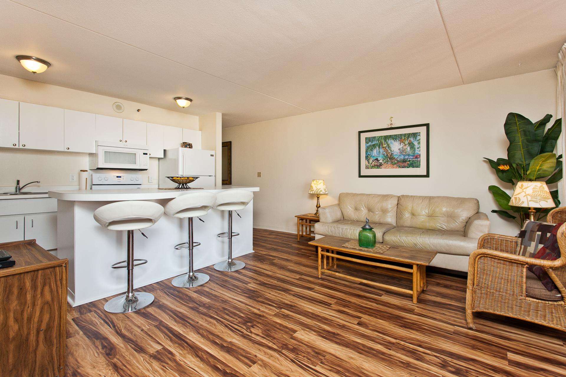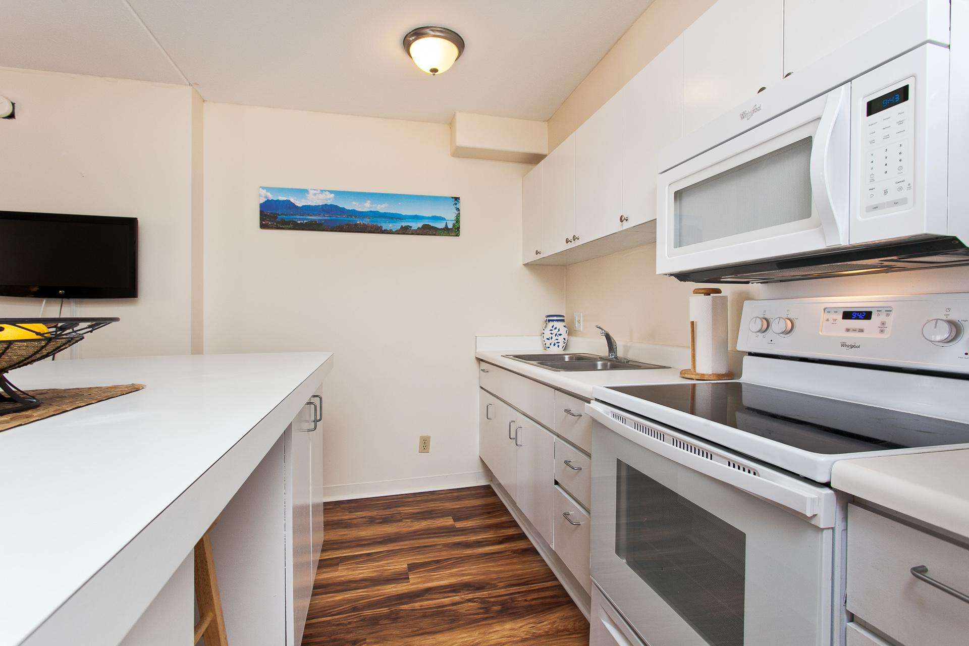 Classic Waikiki Banyan unit with ocean view over the church with clean kitchen and bathroom and all the conveniences of home while on your vacation. Remodel includes new ceiling, new appliances, new laminate wood floors,new paint job throughout. New clean, brighter look.