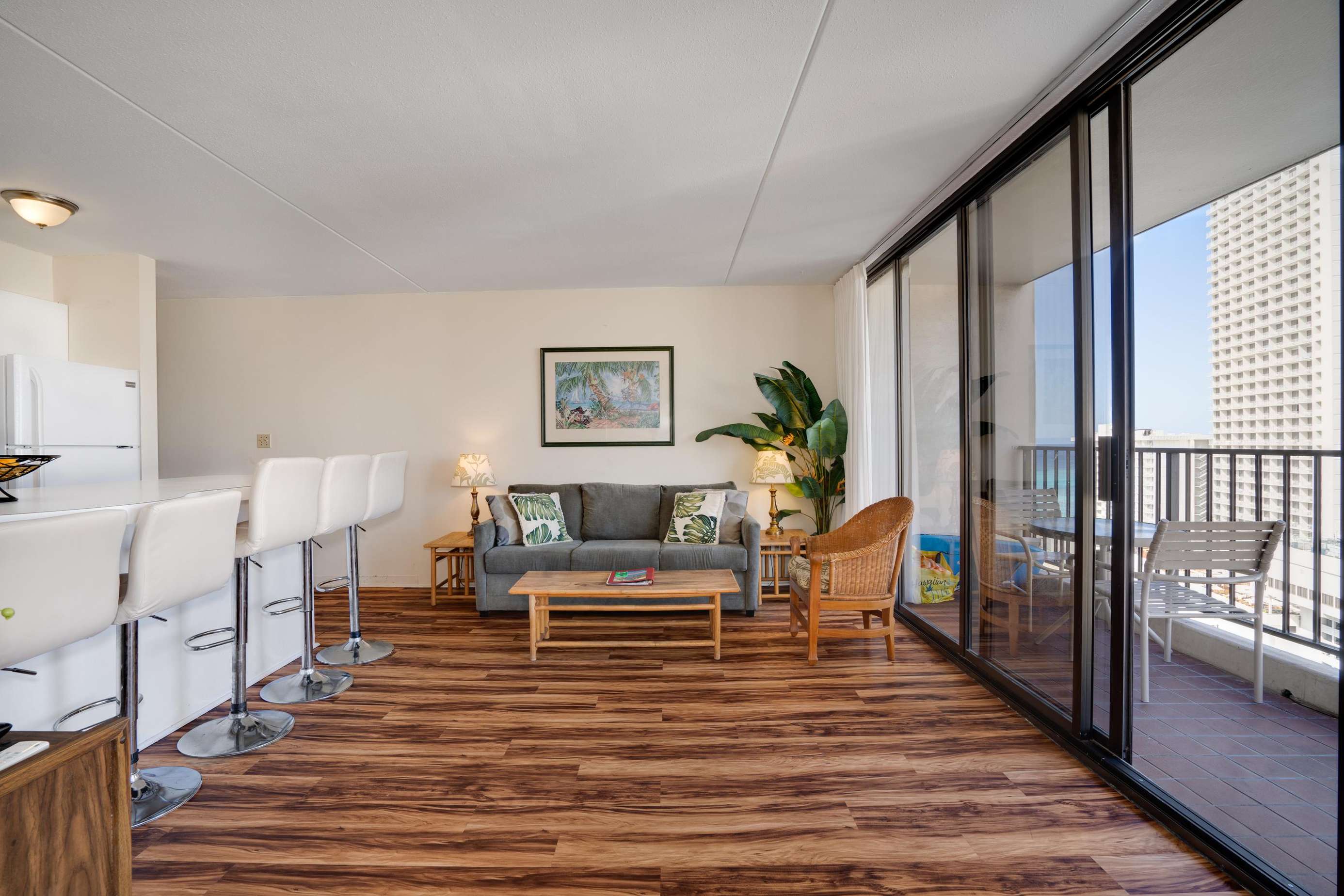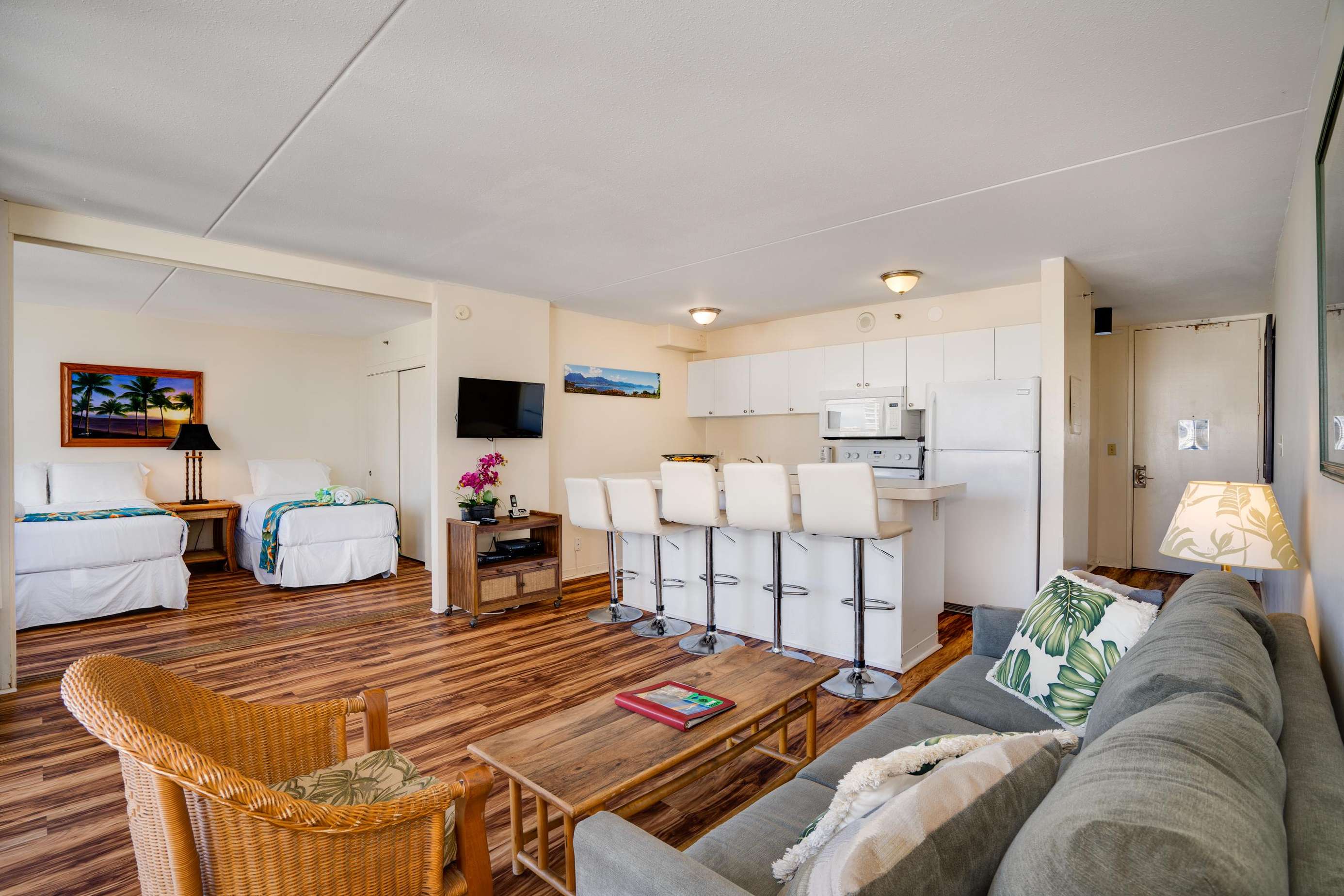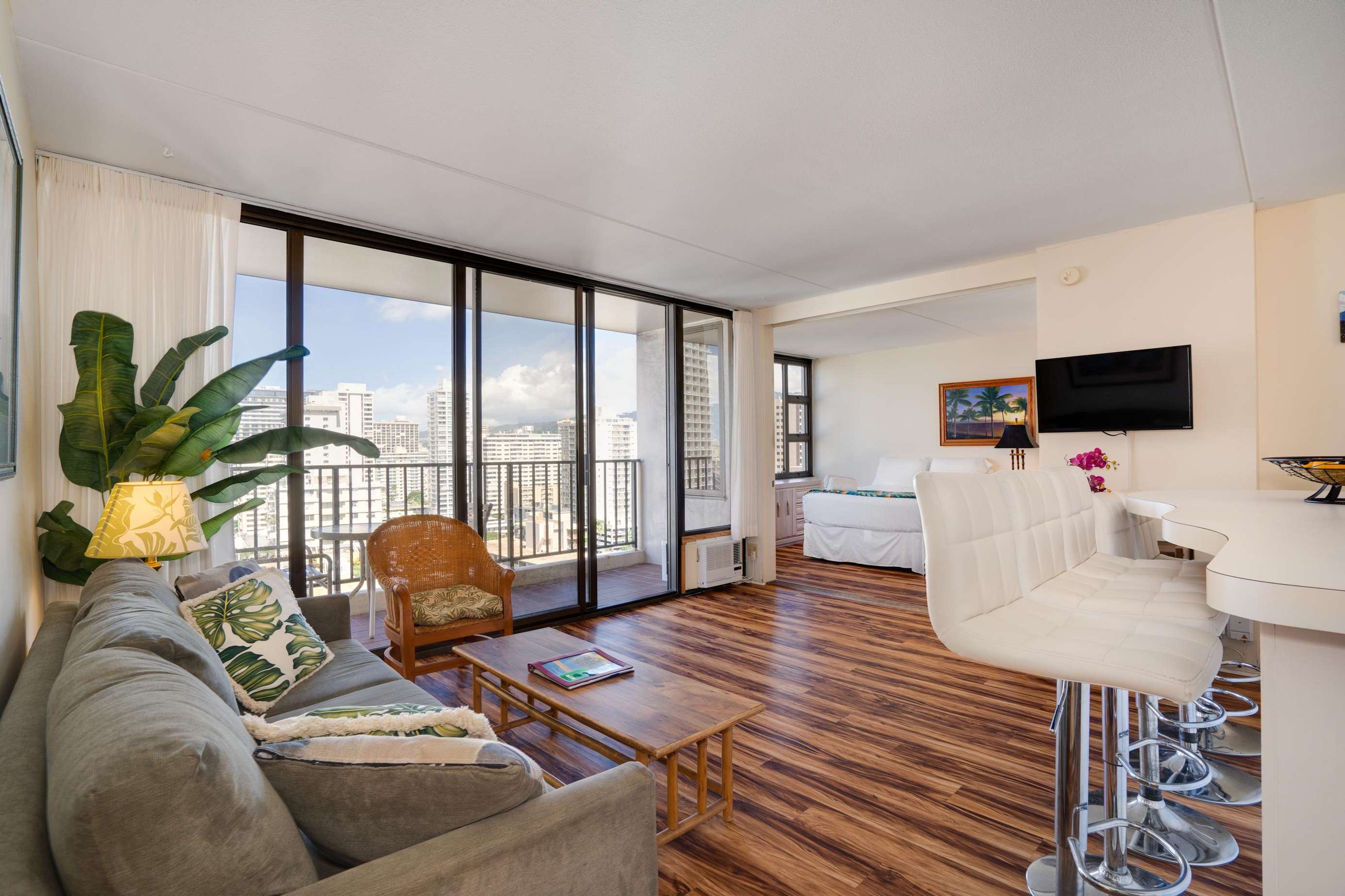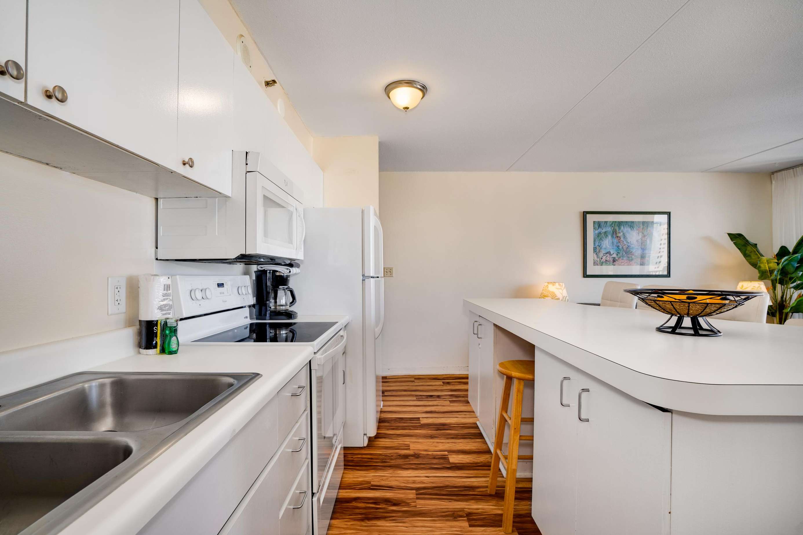 Classic Waikiki Banyan unit with ocean view over the church with clean kitchen and bathroom and all the conveniences of home while on your vacation. Remodel includes new ceiling, new appliances, new laminate wood floors,new paint job throughout. New clean, brighter look.