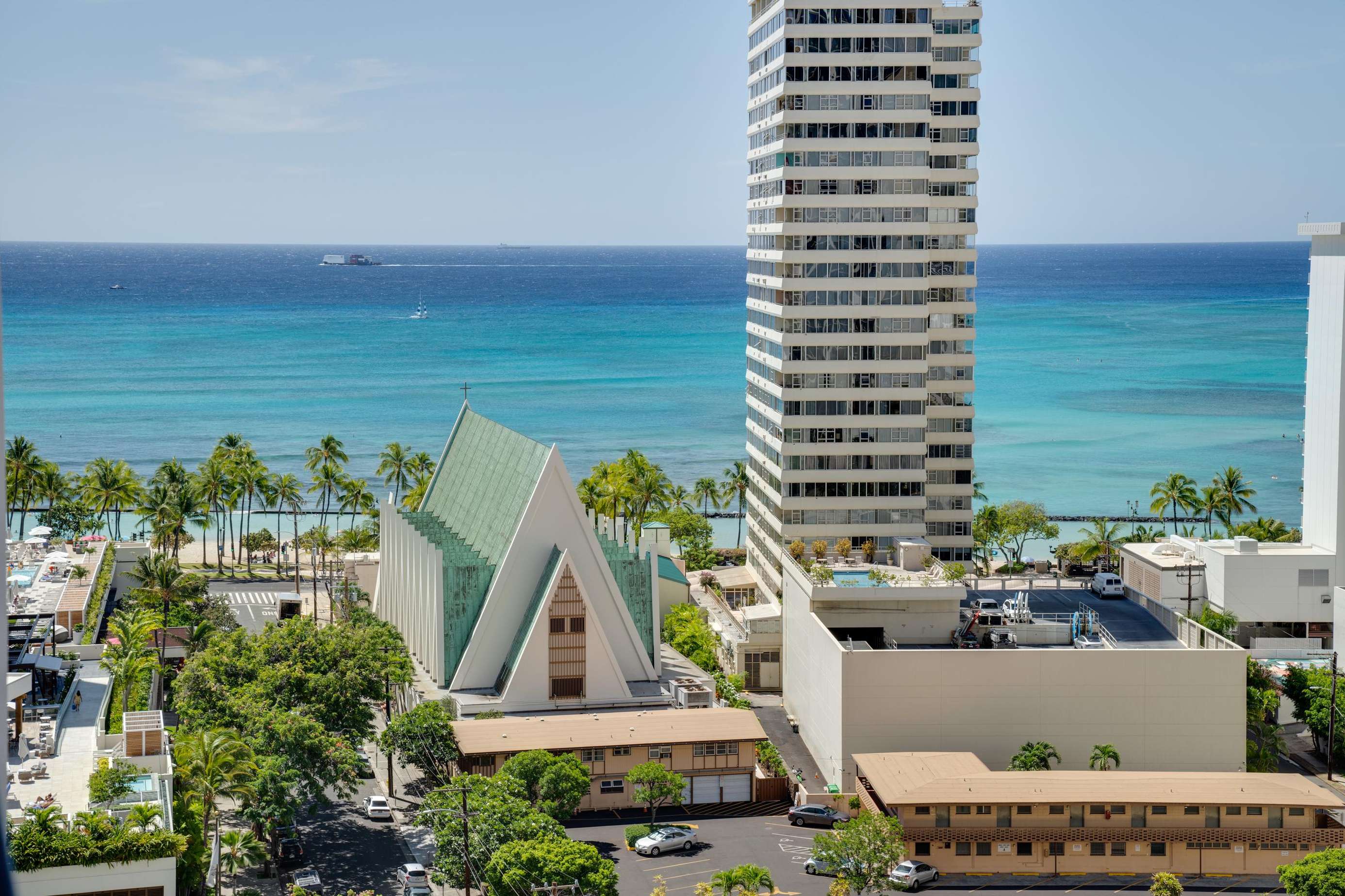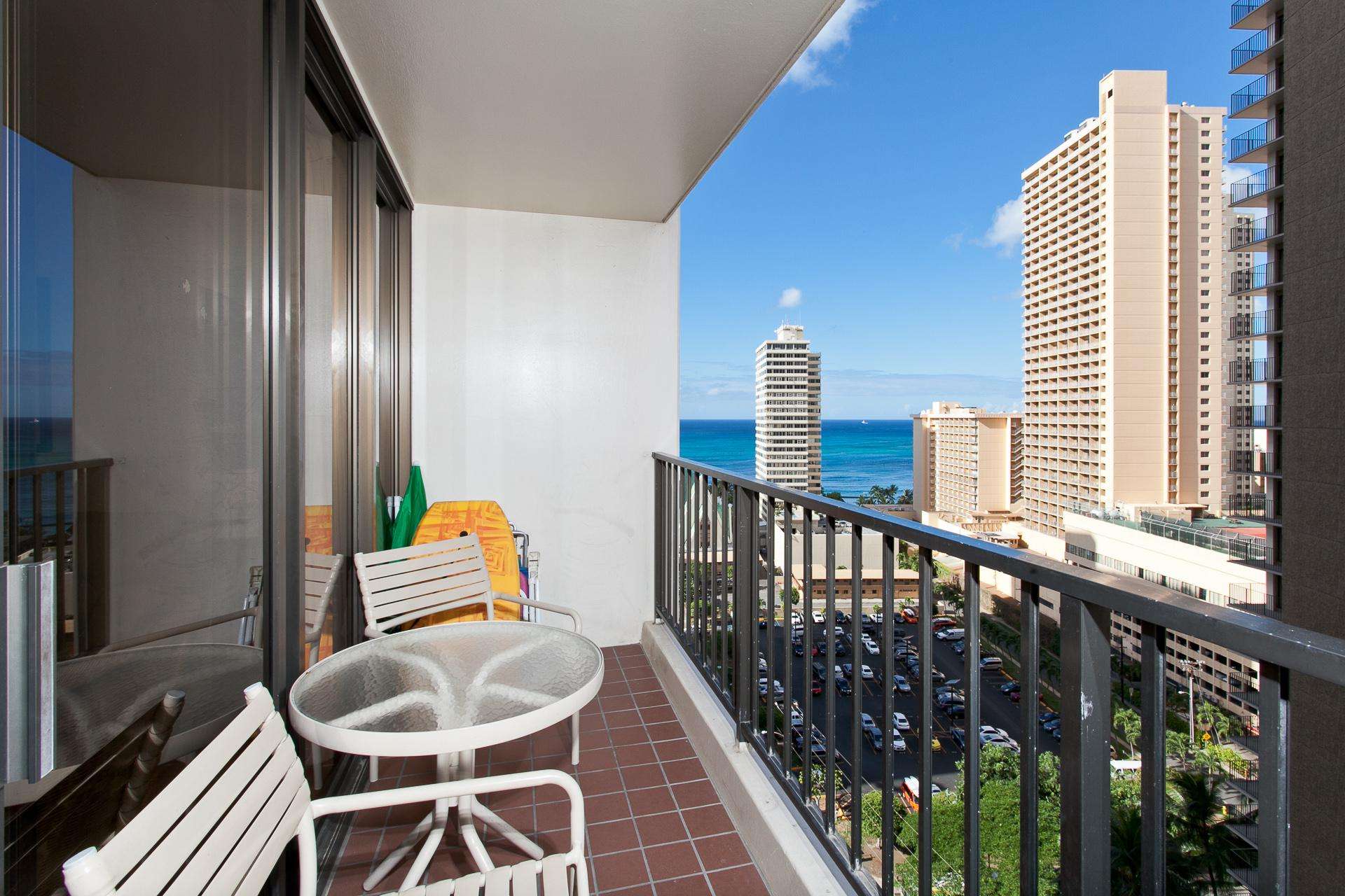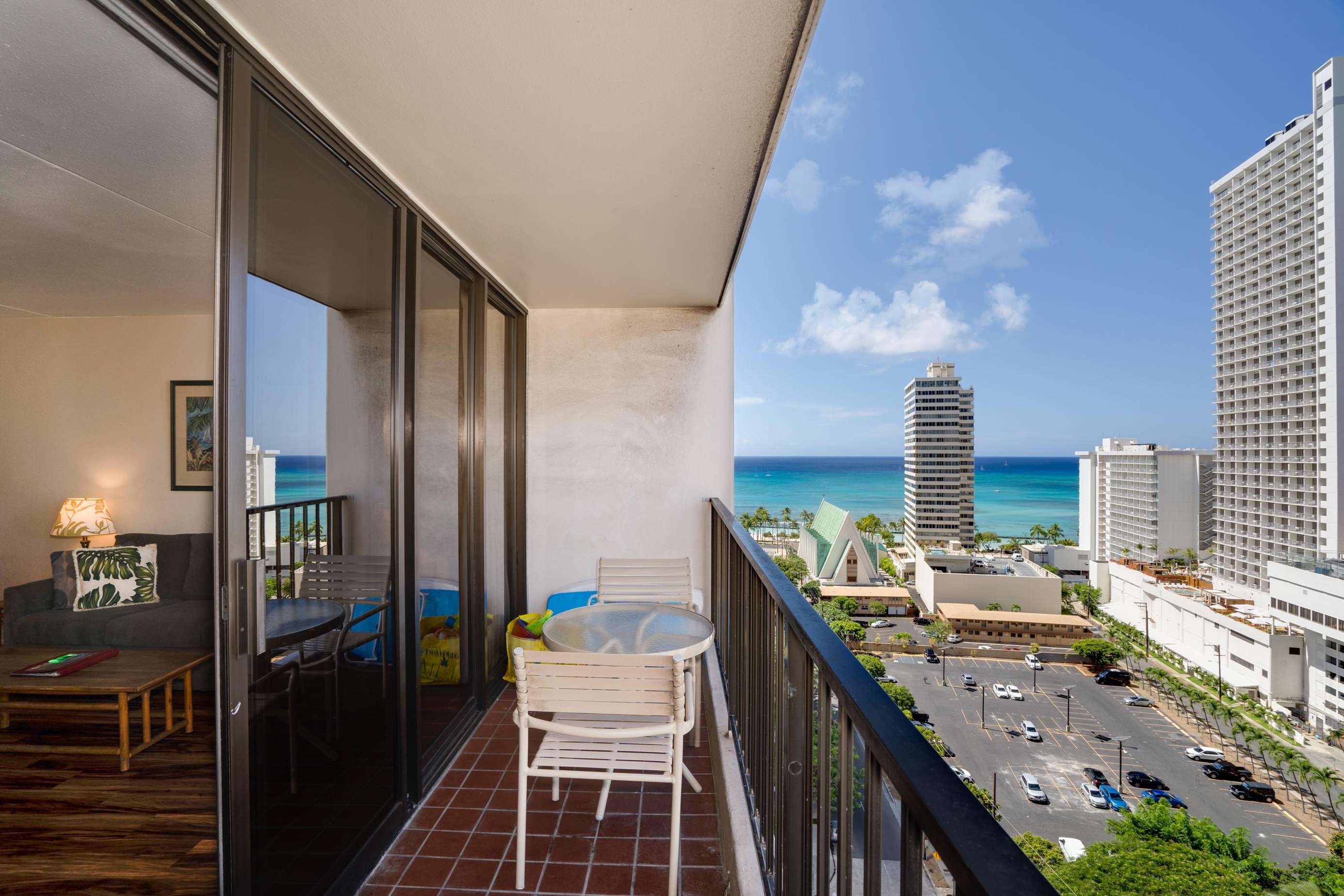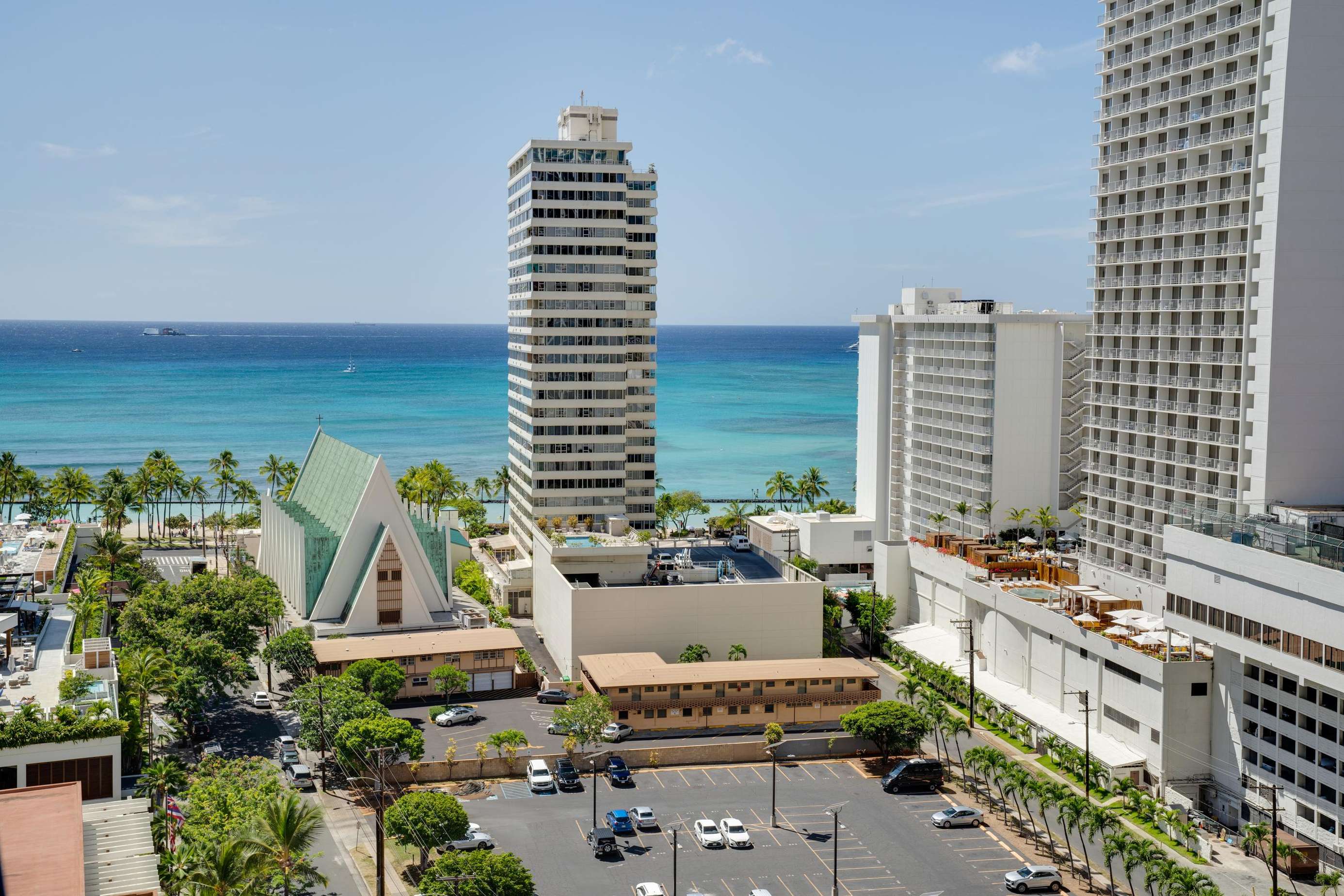 Classic Waikiki Banyan unit with ocean view over the church with clean kitchen and bathroom and all the conveniences of home while on your vacation.