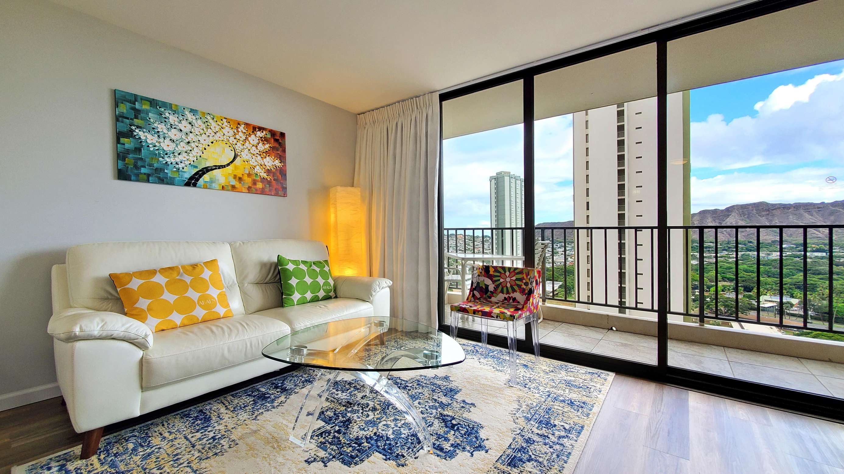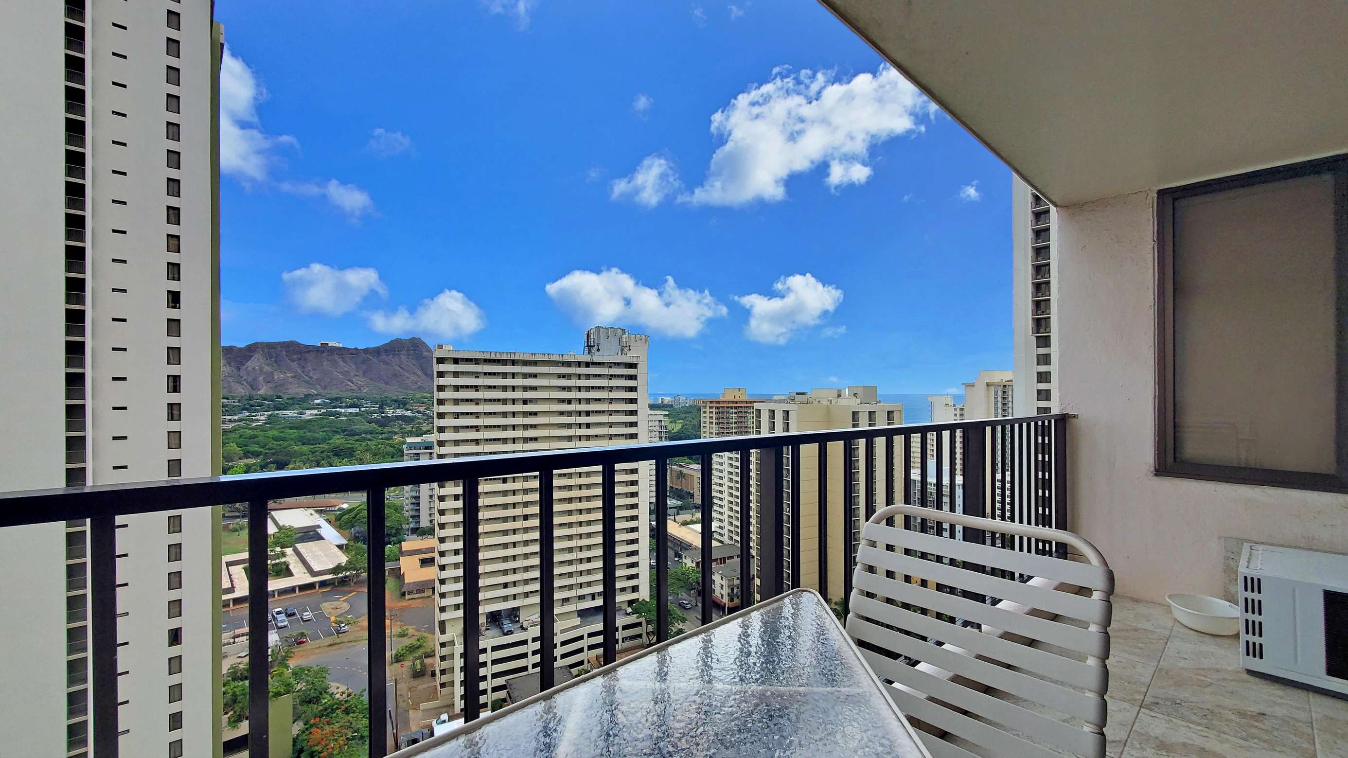 Modern Waikiki Banyan condo with Diamond Head views great kitchen and bathroom and all the conveniences of home while on your vacation.