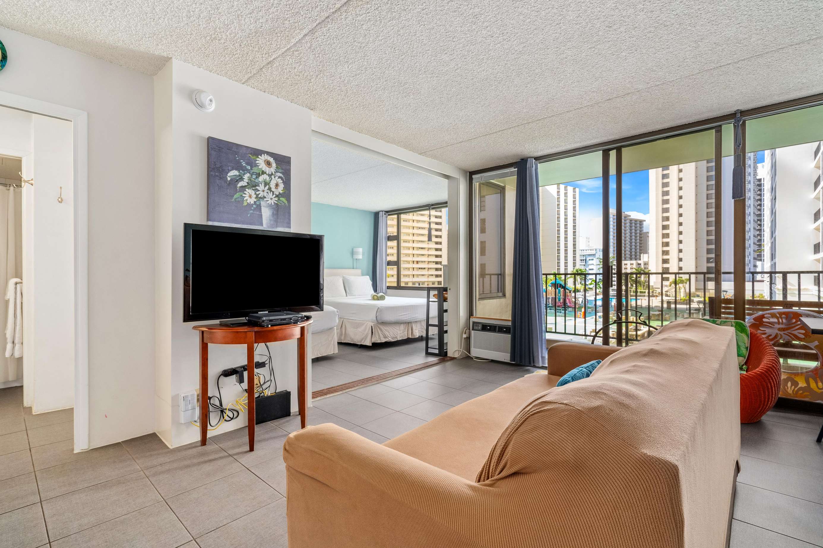 This unit at the Waikiki Banyan is the perfect location for your family getaway, honeymoon, anniversary, or to just relax and enjoy paradise! Located only one block from world famous Waikiki Beach, The Waikiki Banyan is conveniently located near a wide selection of restaurants, specialty shops, and other tourist attractions. The kids will love the Waikiki Zoo and Aquarium which are located only a few blocks away.