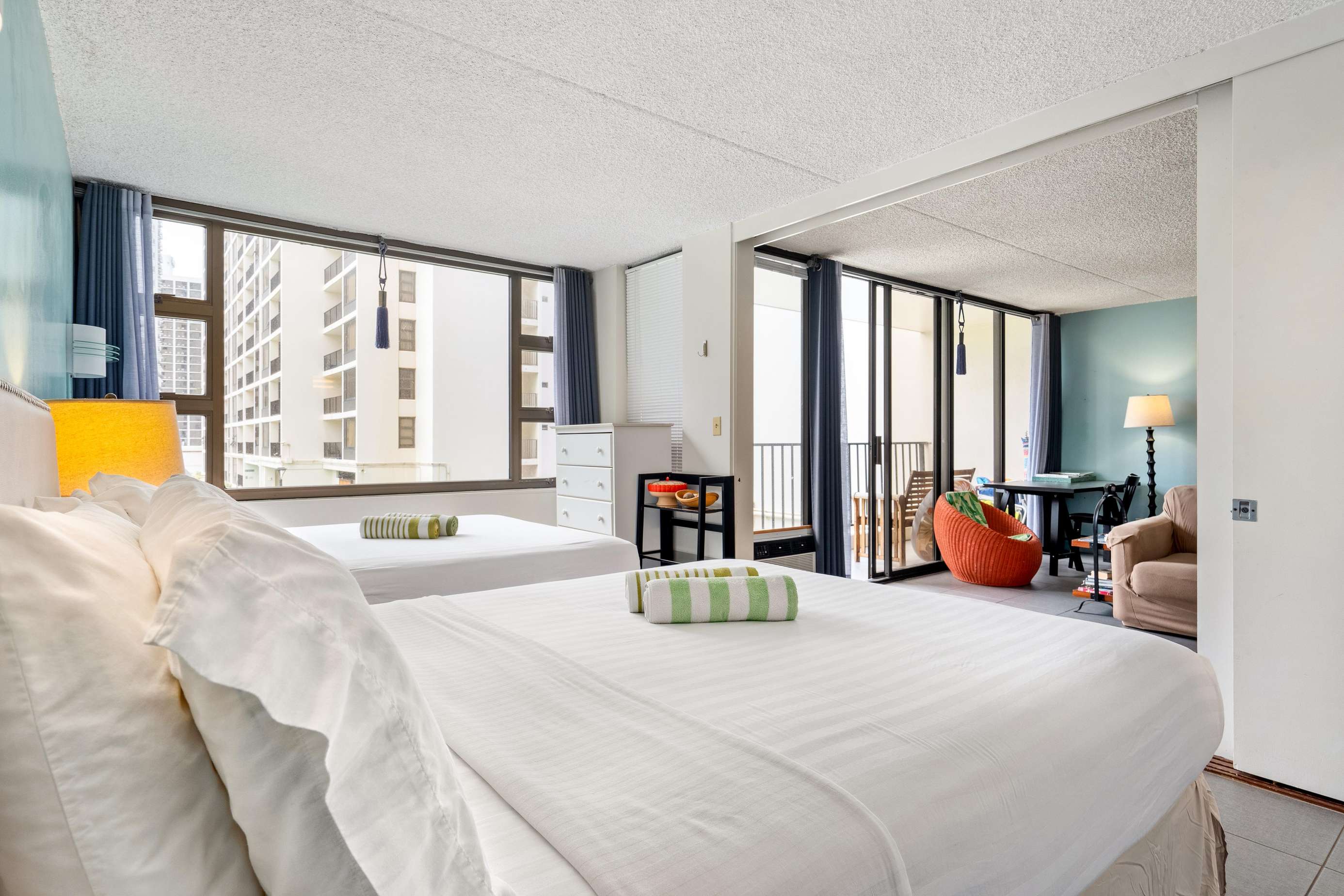 Just 3-4 mins walk from Waikiki Beach, The condo itself features two comfortable Queen beds in the bedroom, along with a fully equipped kitchen, living/dining area. Our private lanai is the perfect place to relax with a morning coffee or evening cocktail +1 FREE Parking Spot!