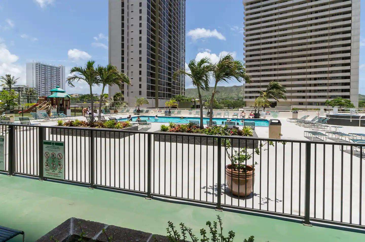 The Waikiki Banyan is the perfect family friendly central location in Waikiki. A large swimming pool and several safe outdoor areas to relax and have fun (or just bathe in the sun) are fully accessible to our condo guests.