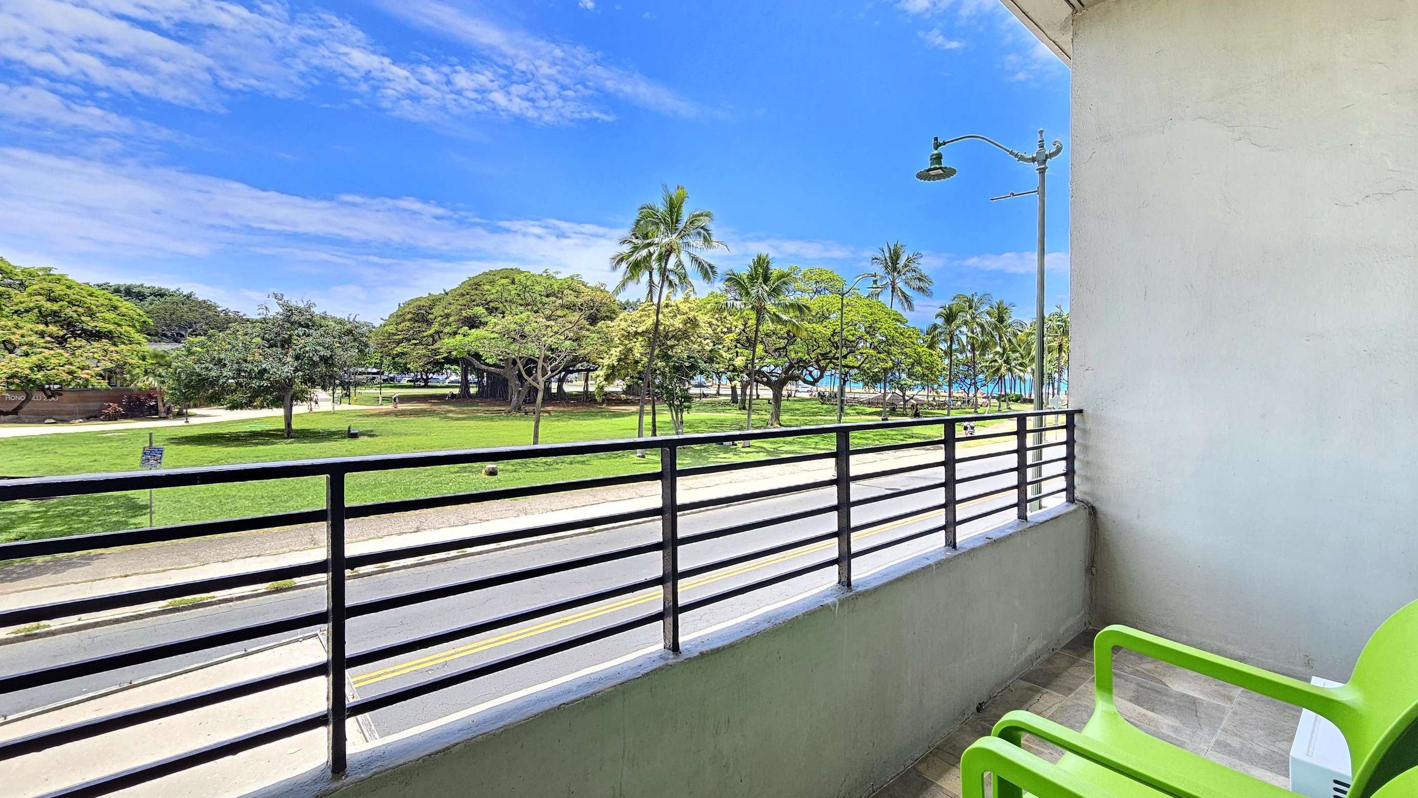 This remodeled and updated unit features a Queen size bed, lanai and French doors out to an Ocean & Park View a great Studio suite at the Waikiki Grand Hotel
