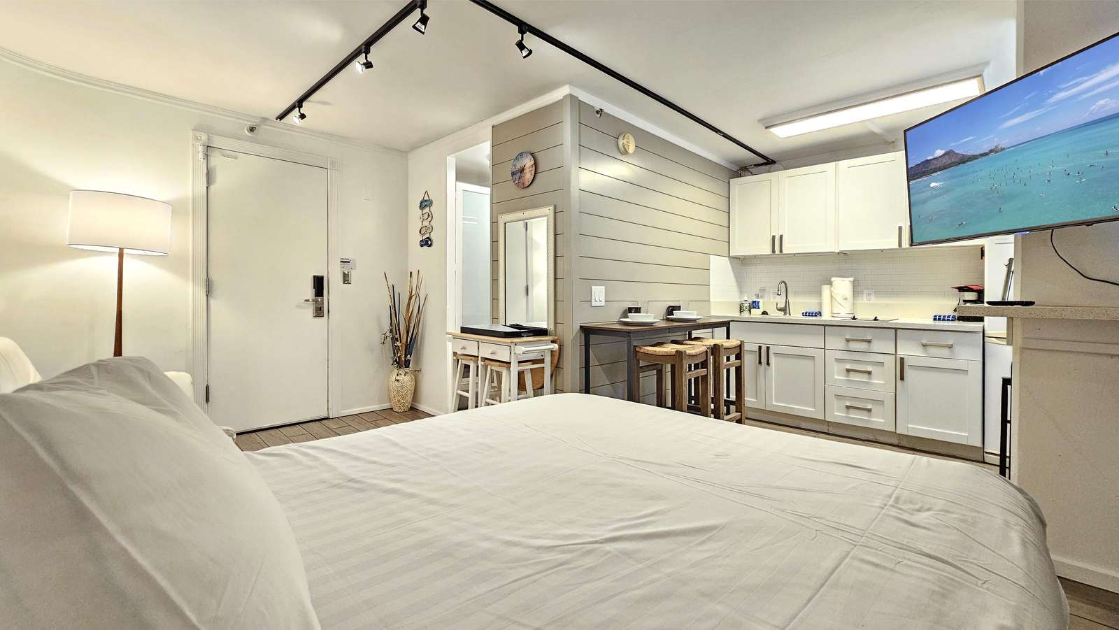 Located on the Diamond Head side of the Waikiki Grand Hotel, this 354 square foot corner unit is on the cooler, quieter, side of the Waikiki Grand Hotel, with city-view. Kapiolani Park is situated across the street making walking, jogging, the Honolulu Zoo, Waikiki Aquarium, tennis courts, biking, and attending festivals convenient and at your discretion.